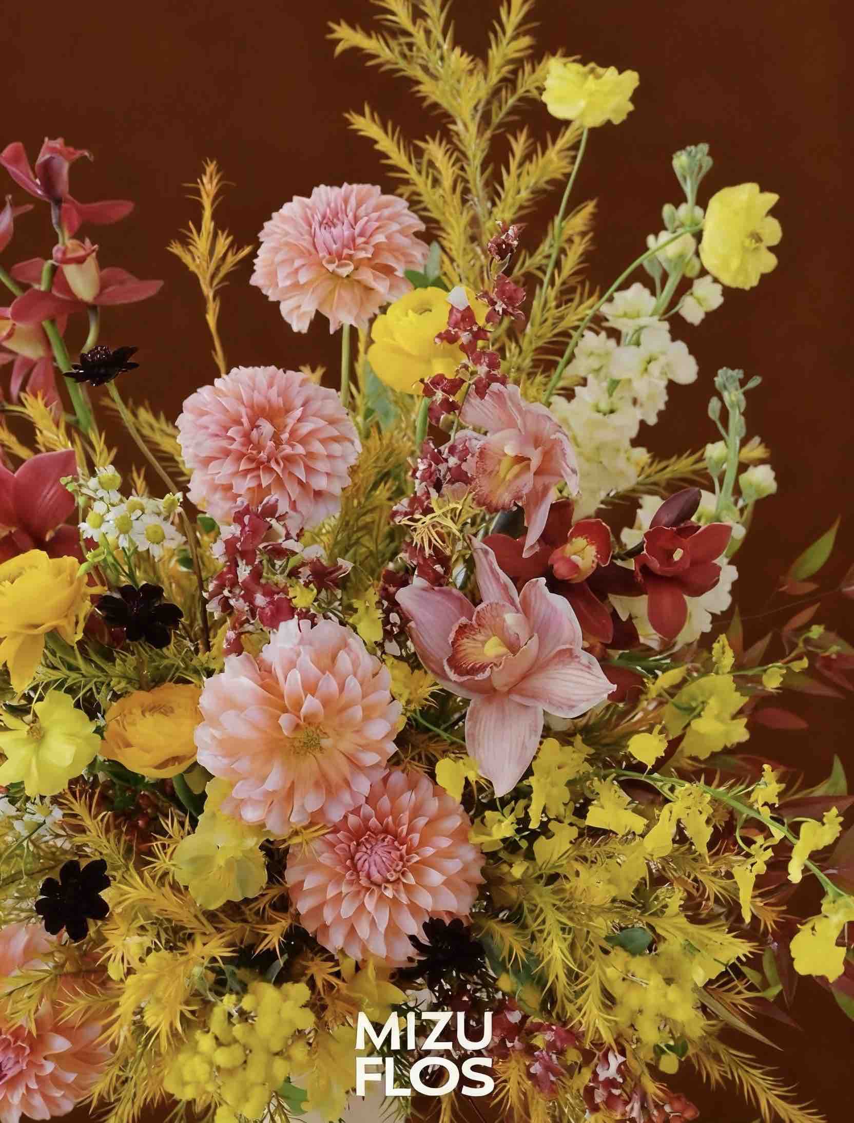 大花惠兰、奶油桃子大丽花、跳舞兰