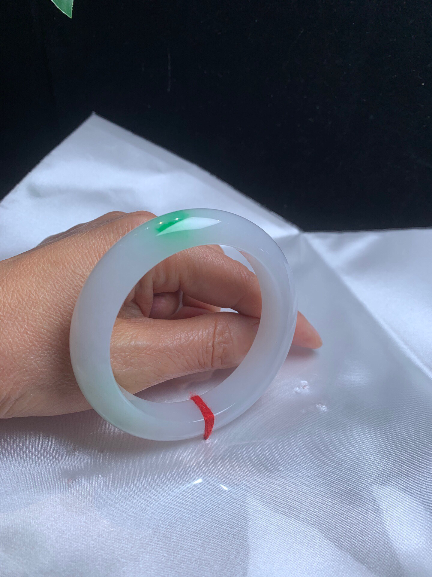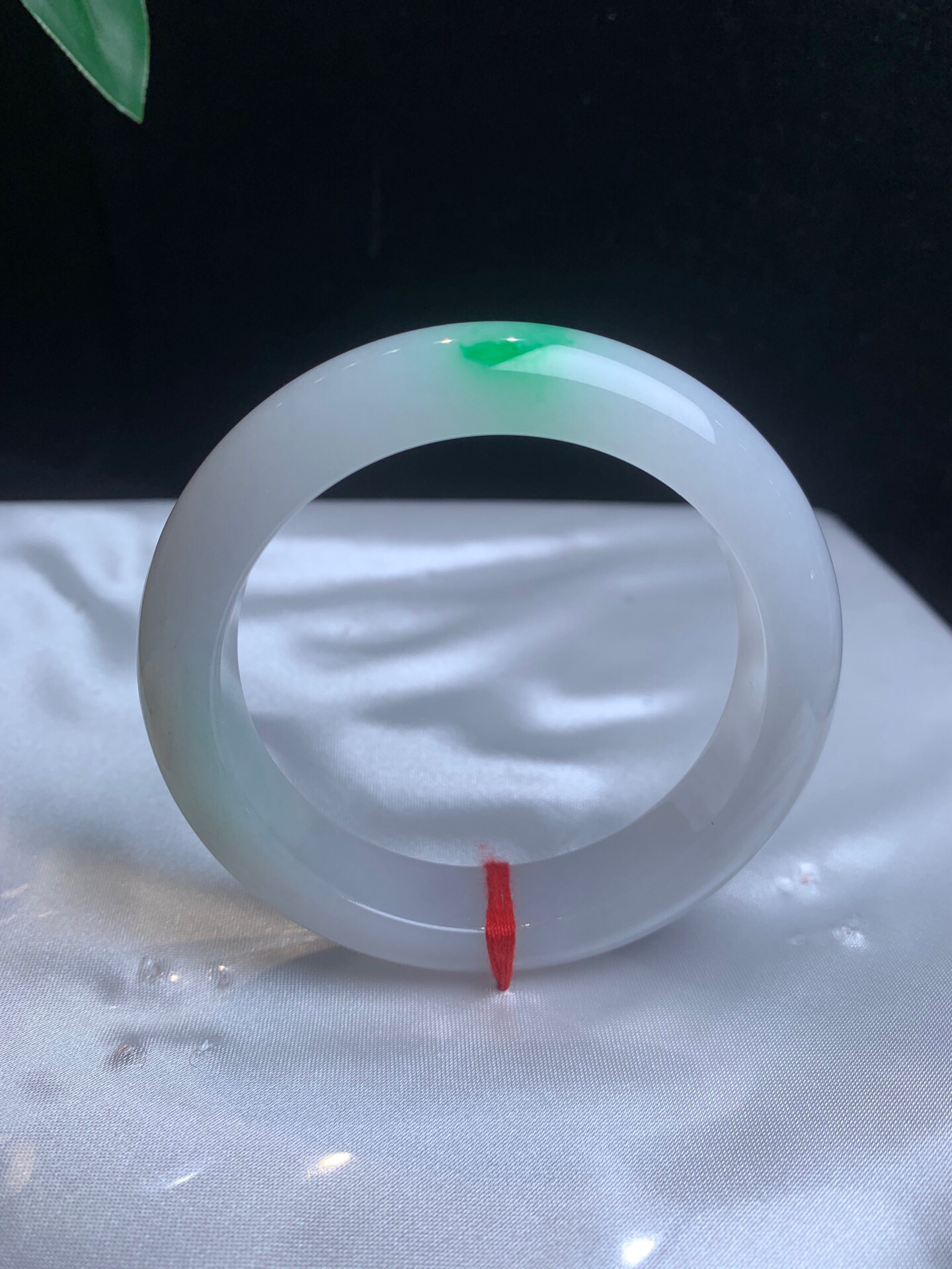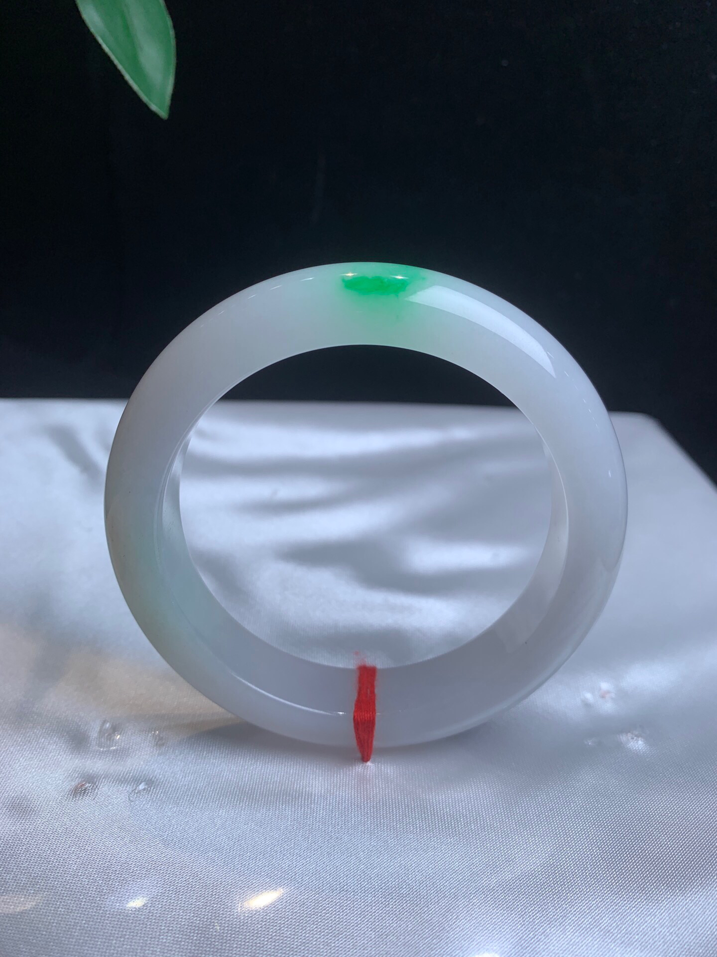 612584,55.2飘阳绿手镯,13.2-9.2mm,清新干净的白底,飘一抹阳绿色,清爽秀美,非常养眼,完美,超值价💰75400 #优石客珠宝#香玉荟萃