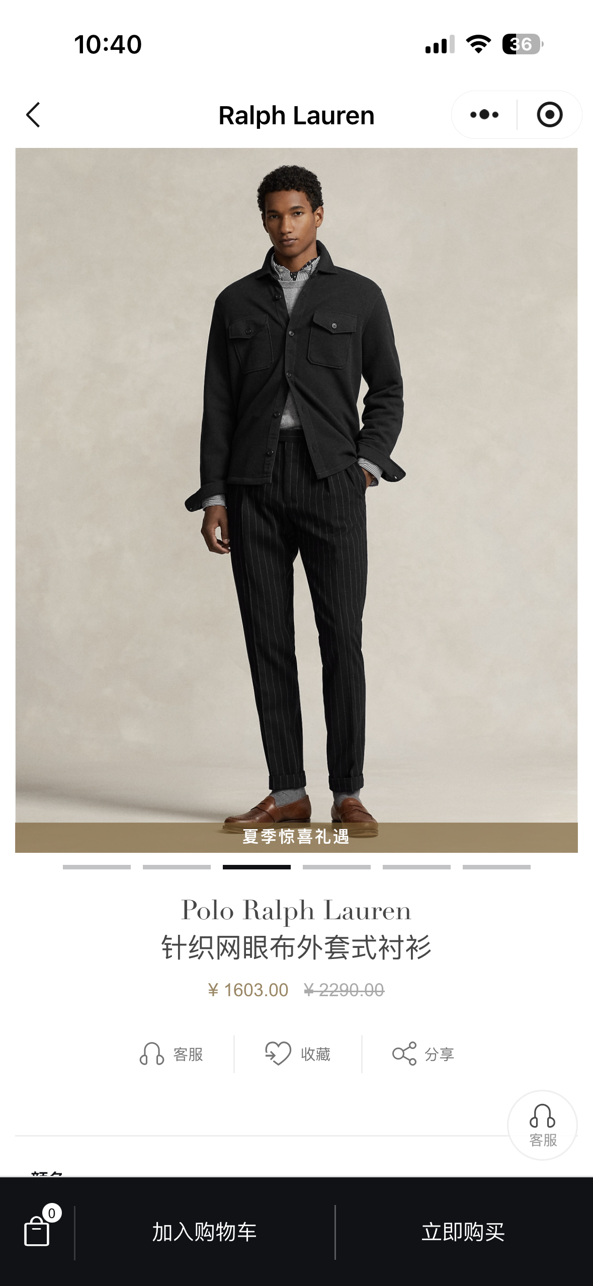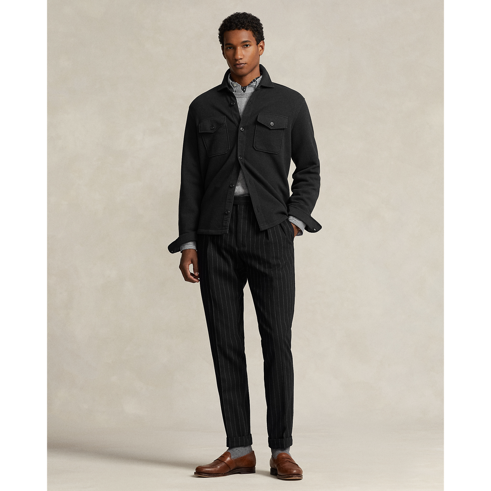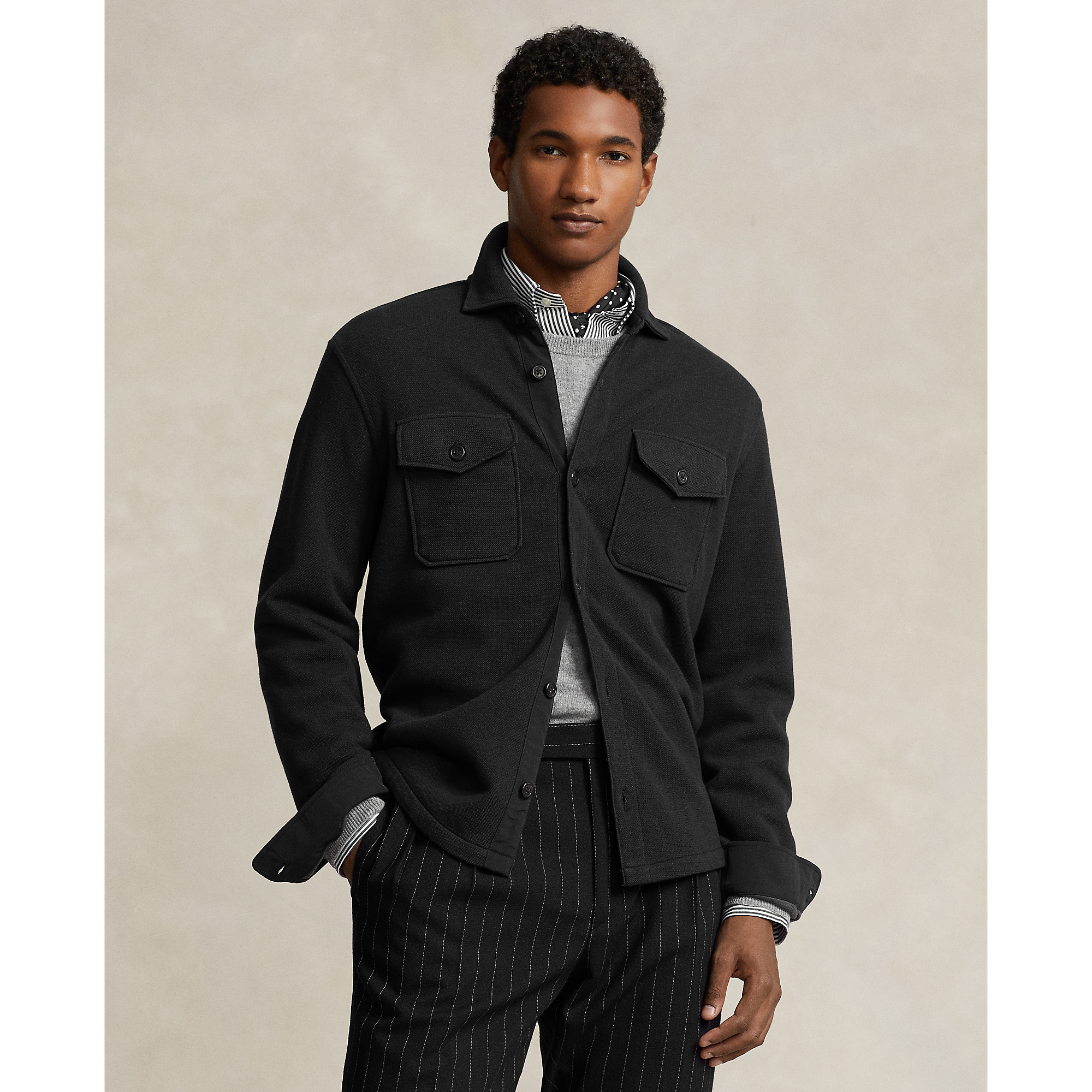 R.L Polo针织珠地网眼双面衬衫式外套