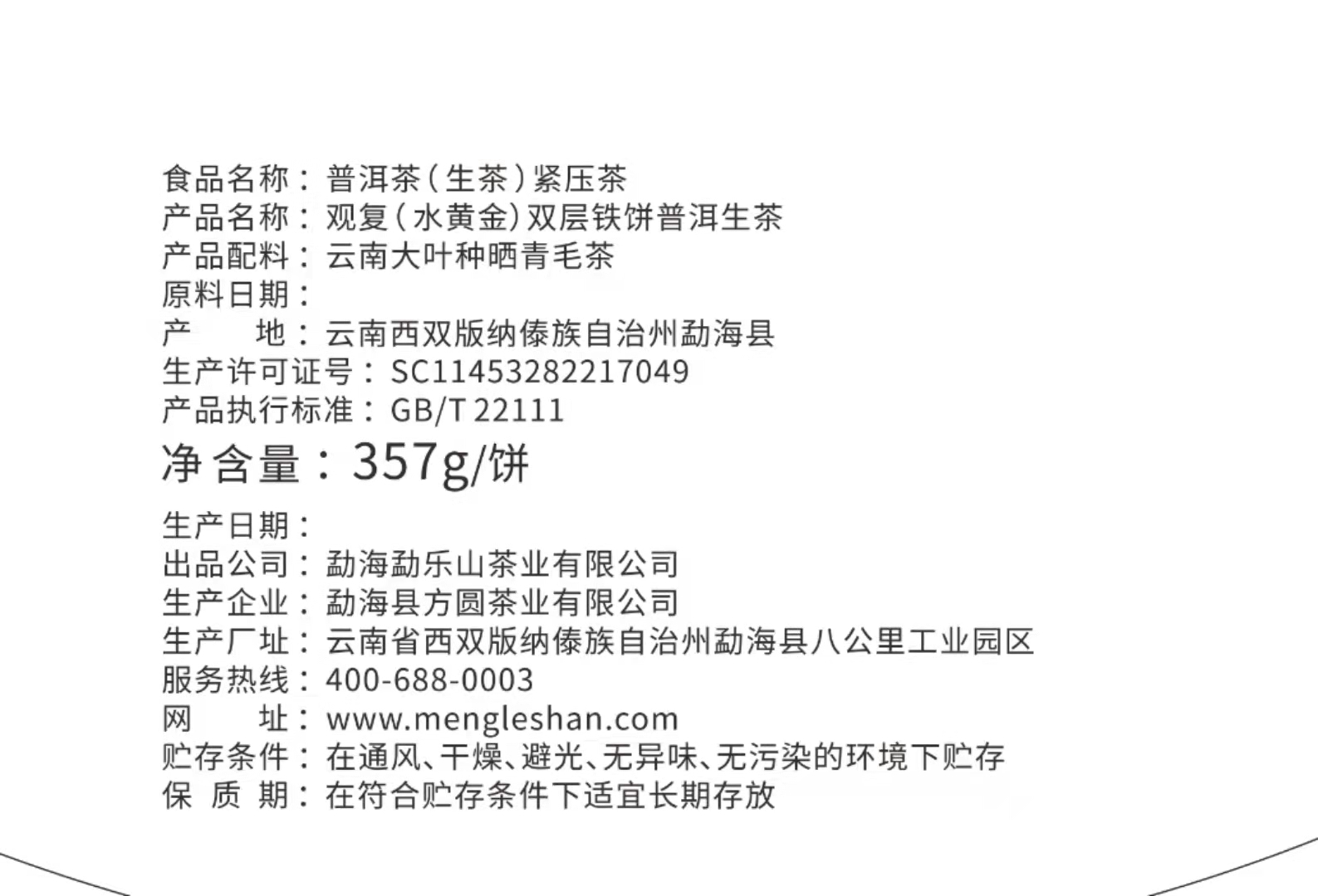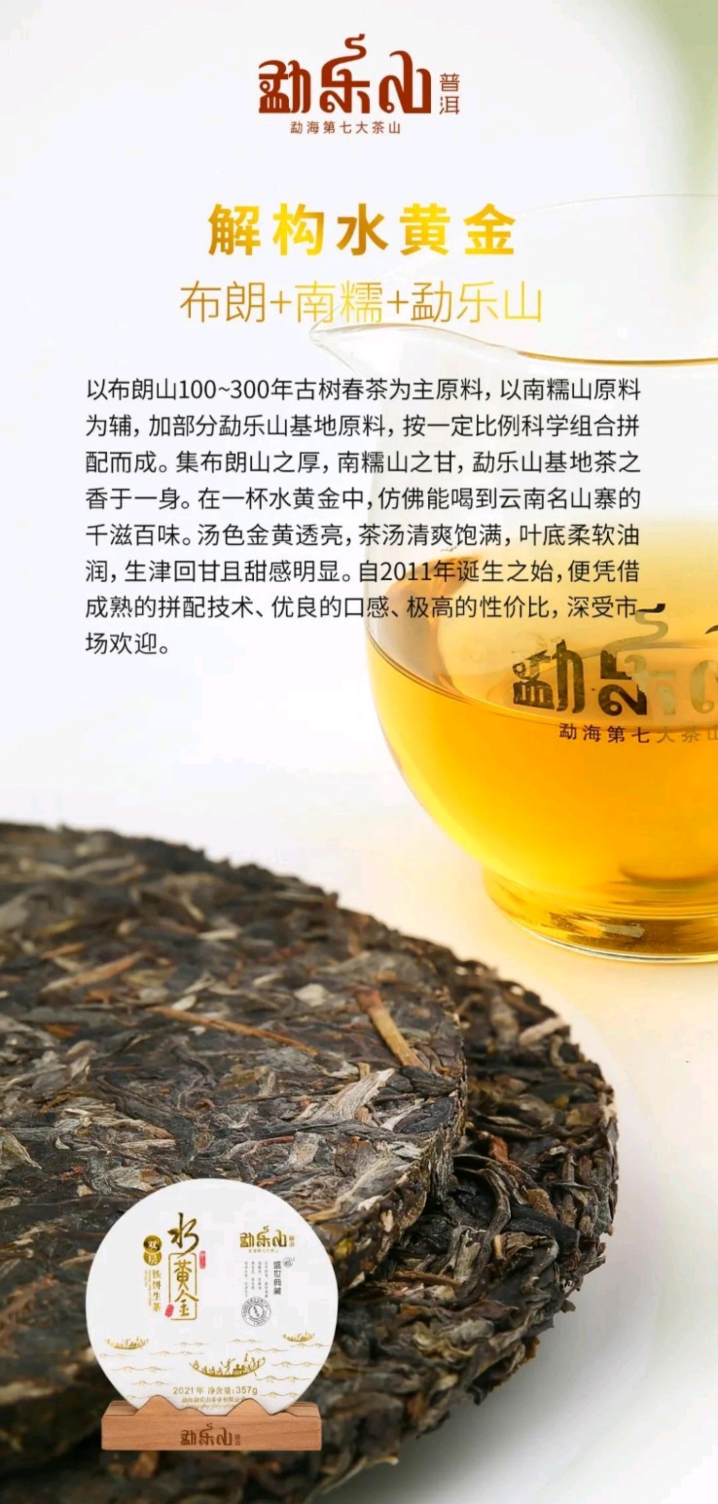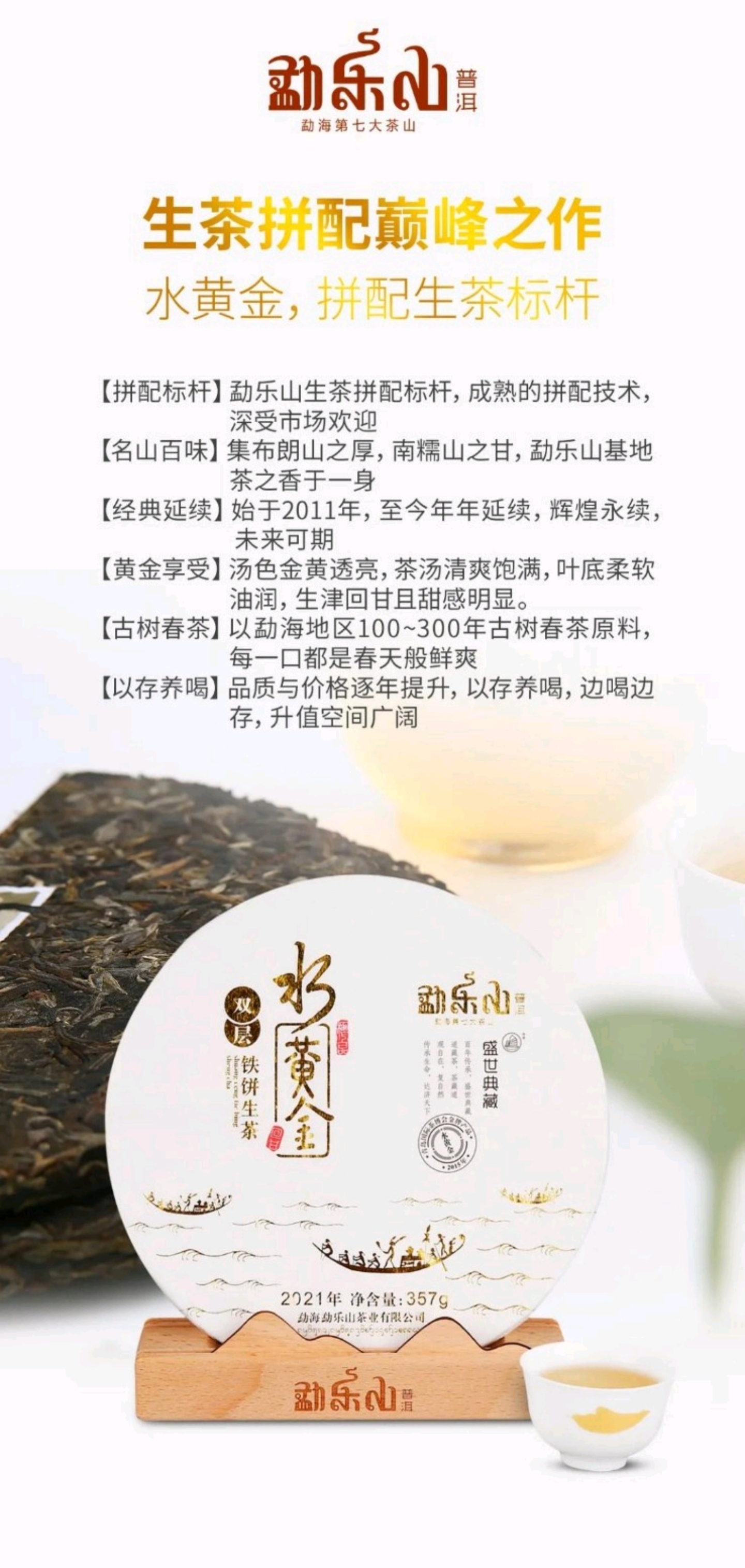 勐乐山盛世典藏普洱茶(水黄金)生饼357g