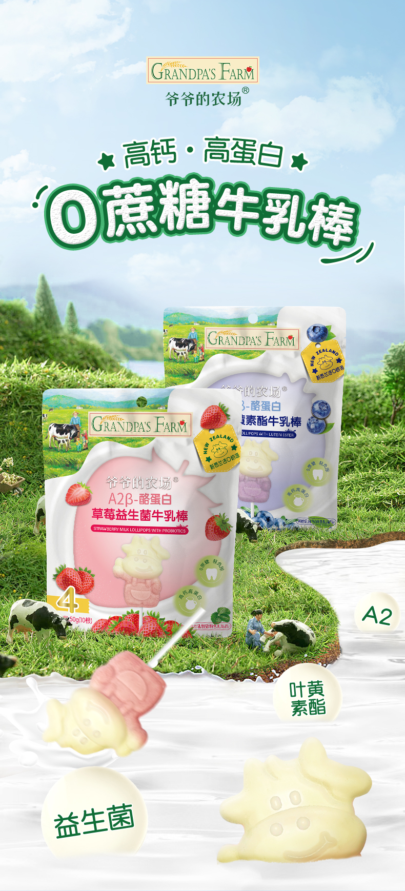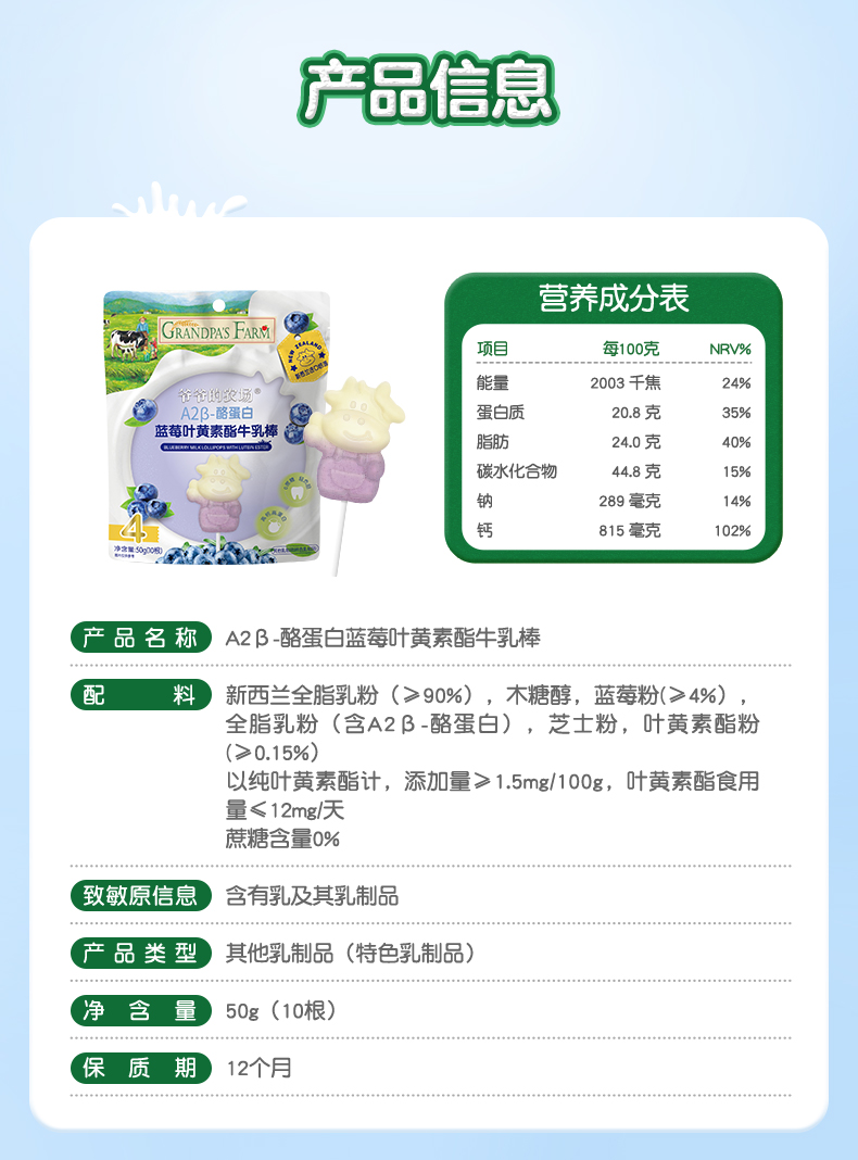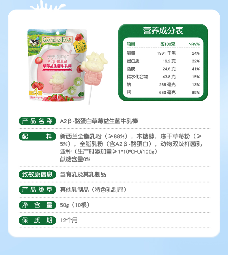爷爷的农场A2β-酪蛋白草莓益生菌牛乳棒50g