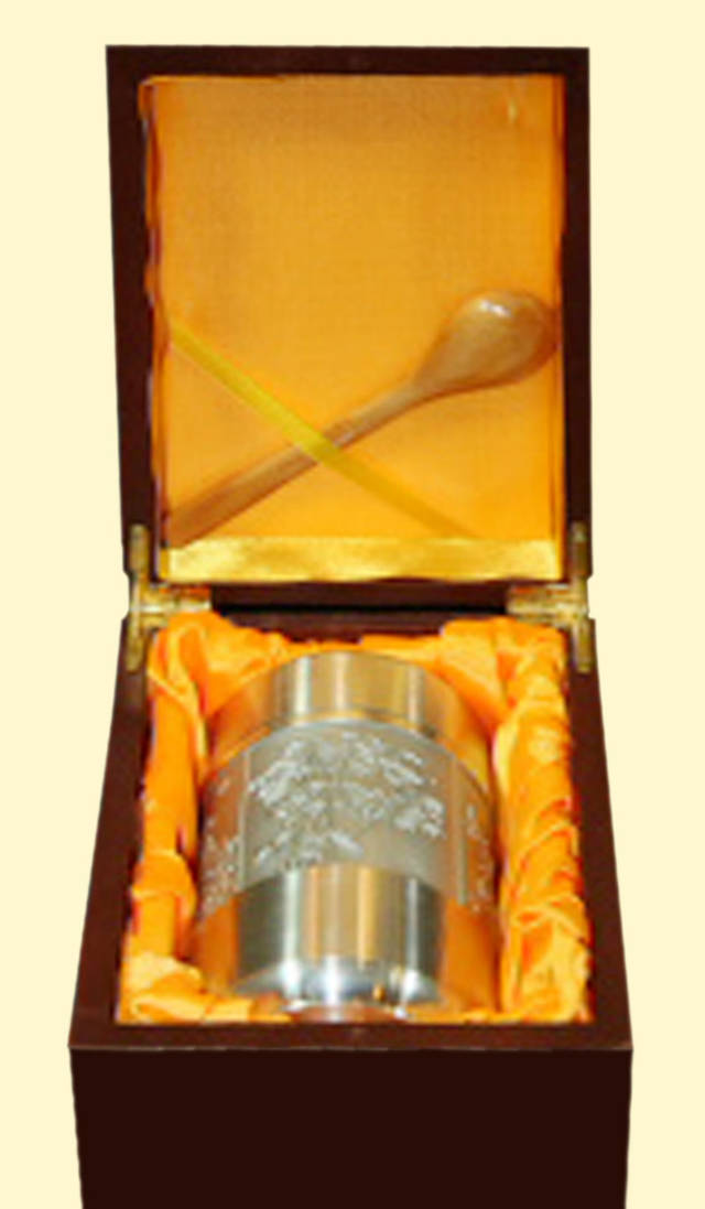 【基本信息】 材 质:纯锡 产品规格:高度120mm 直径70mm (适合放绿茶、铁观音、乌龙茶等) 罐身图案:“梅兰竹菊"雕效果图象 盖子图案:“茶”图案 用 途:可贮藏茶叶或冬虫夏草等名贵中药材等 锡是一种古老贵重金属,早在公元前1200年,古代中国就已熟练掌握了炼锡及使用技术,特具中华悠久博大的文化底蕴,与茶文化、酒文化和佛教文化长期融汇,制成了大量的茶具、酒具、佛具工艺品。古代早期由于对锡和铅两种金属认识不足,往往铅锡不辨,混为一谈,锡与铅并不作为矿物形态共生,锡是无毒金属。纯锡属白金、黄金、白银之后的贵金属。由于锡的理化性能稳定,经历代祖先使用观察,纯锡工艺品具有耐碱、防紫外线、除湿、无毒无味,不生锈等特点,用高纯度锡制造器皿,常温下不氧化变色,具有很好的杀菌、净化保湿、保鲜特效,历来为贮器上品。 早在古代的中国,一些水质不好的地方常在井底放上锡板,进行水质净化,锡器自古以来都有“盛酒酒香醇、盛水水清甜,贮茶色不变,插花花长久”之称。所以长久以来全世界80﹪锡产量都用于食品包装。高纯锡茶叶罐贮茶,一抗氧化,二拒高温、三阻潮气、四避光线、五挡异味。具有“更燥、更密”的特点,轻轻松松长期保持茶叶的色、香、味。鲁迅说有好茶喝,会喝好茶,是一种清福。 本产品采用99.95﹪的贵金属精锡,经合理化配方含锡达97﹪,其余为铜锑合金(不含铅,敬请放心使用)经过压力铸造成形、机械刮光打磨、装接等复杂工序制成。产品具有造型典雅、图案精美、密封精度高等特点。纯锡工艺茶叶罐,能保存茶叶多年而色泽、香味均不变质,深受品茶者钟爱。纯锡工艺茶叶罐还是保存咖啡、珍贵药材的理想容器。用锡制酒具斟酒,夏天清凉爽口,冬天温酒导热快。是时尚的健康礼品。企业依托雄厚的专业技术实力、精良的数码设备、高纯度的原材料、经过规范培训的员工、完善的检测设备,实现多远化生产管理。为达到高层次发展的目标而不懈努力! 中国现代锡制工艺品长期供出口,远销欧、美、日、韩,有的成为工艺品收藏,更有的作为国家领导人赠送外国贵宾的高级礼品,神奇而精美,成为了你个人赠送好友新婚、生日、乔迁、出国礼品,也是企业开张、会务、庆典、公关的礼品。纯锡礼品,源远流长,产品畅销全国,深受上层社会用户的青睐! 锡罐保养: 1、保证、取放时注意避免强烈碰撞。 2、使用锡罐时,因本品密封精度高,开启时请慢慢向上拉,请勿旋转,封盖时,当盖子盖至封口的1/2处时松手,则会慢慢向下复位。 3、保养用清水或中性洗洁剂清洗,然后用质地柔软的布擦干即可;使用酒具后洗净拭干,表面有手迹,发暗,可以用拭眼睛软布顺时针擦拭,即刻光亮。 |