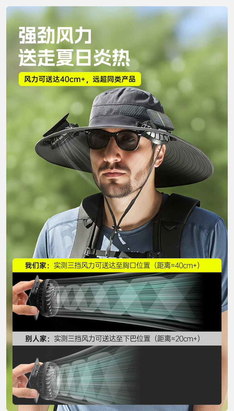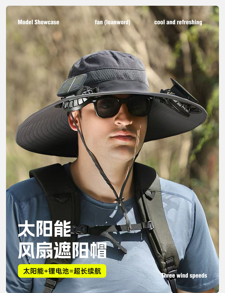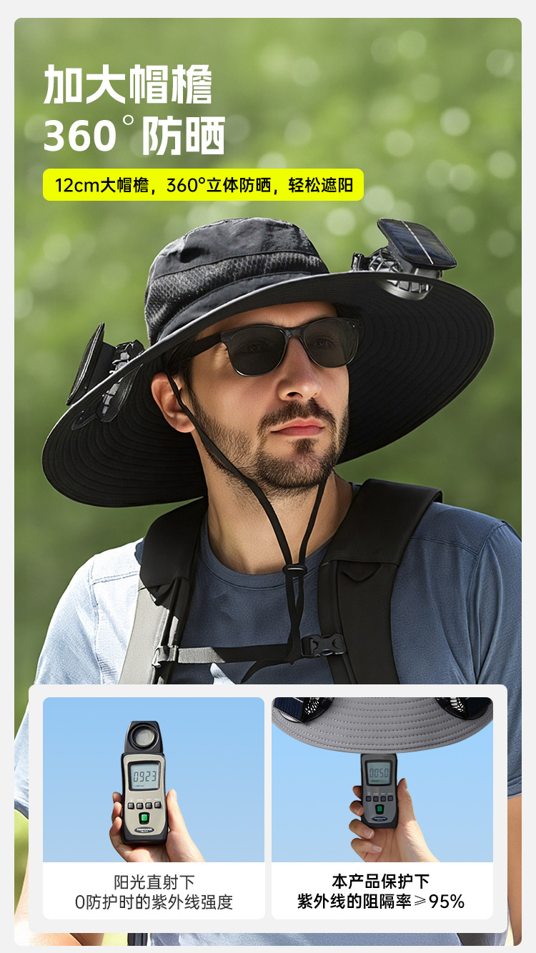 抢购中~【出口欧洲,太阳能锂电池风扇帽子】钓鱼,户外登山,露营,下地干活,帽带风扇的遮阳帽