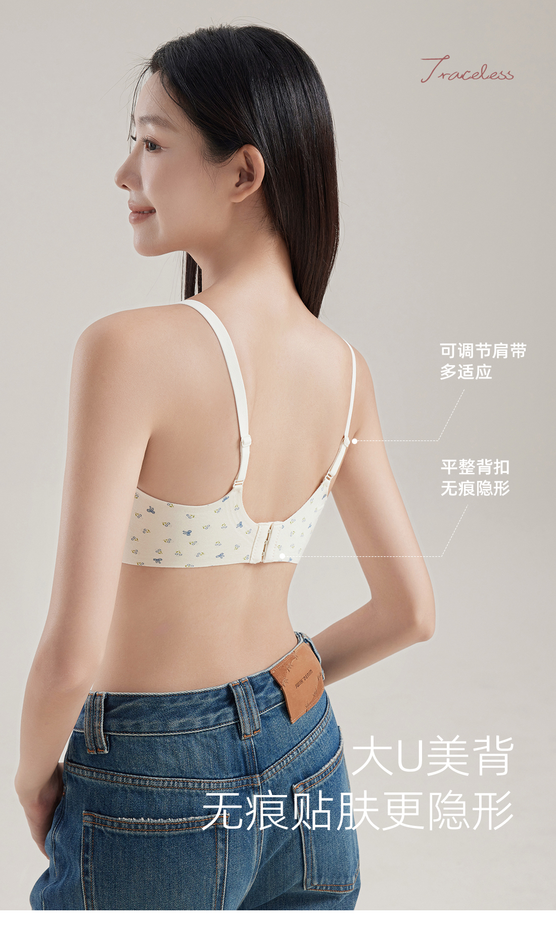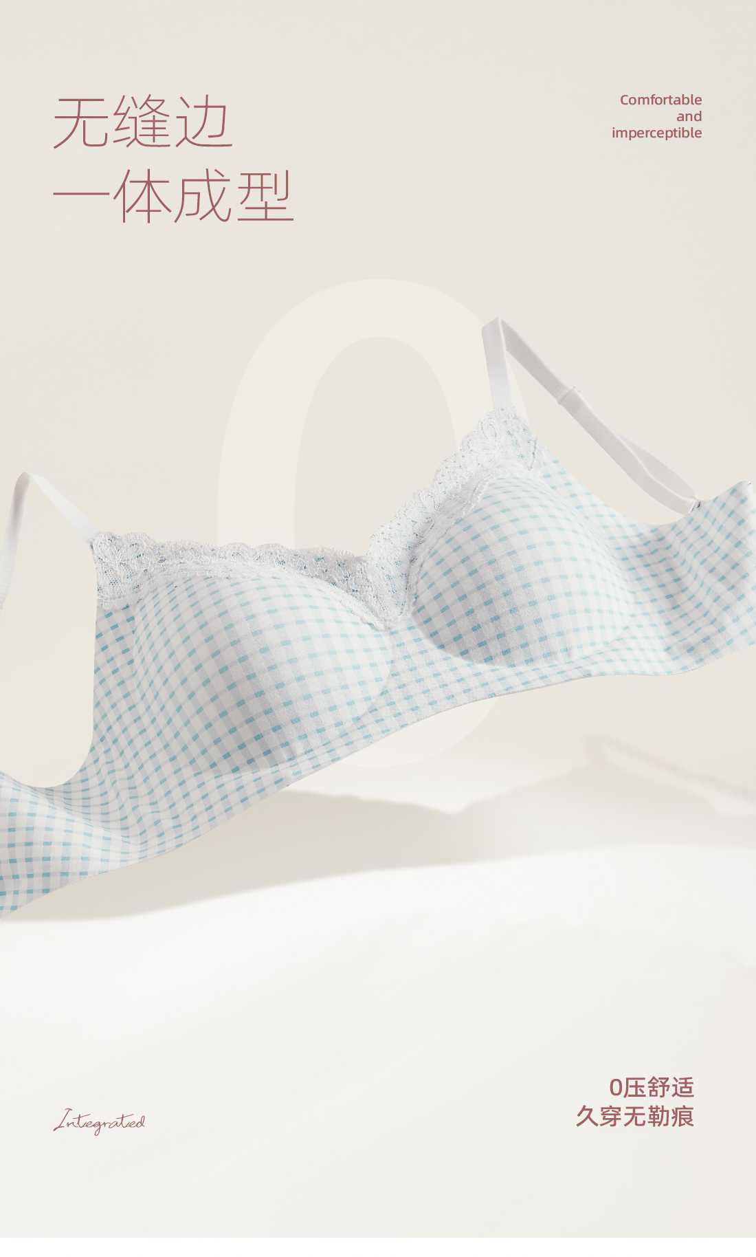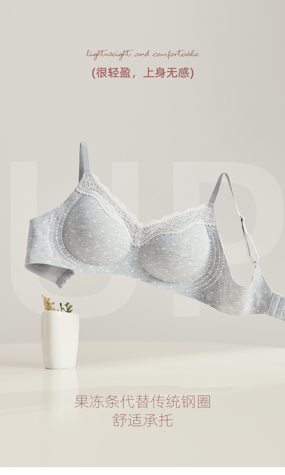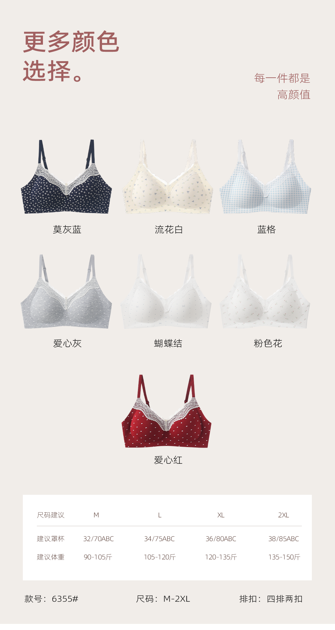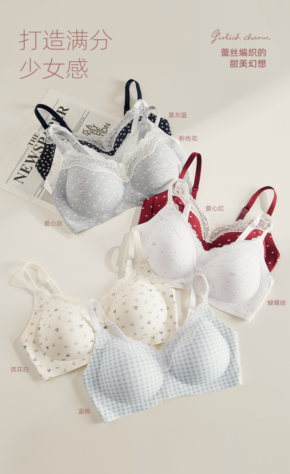 【棉质内衣】田园小碎花蕾丝内衣 纯棉材质 亲肤舒适 果冻胶承托 小胸聚拢 侧收提拉 3D立体模杯久穿不塌 无缝边一体成型 0压舒适久穿无勒痕 防滑弹力肩带不压肩
