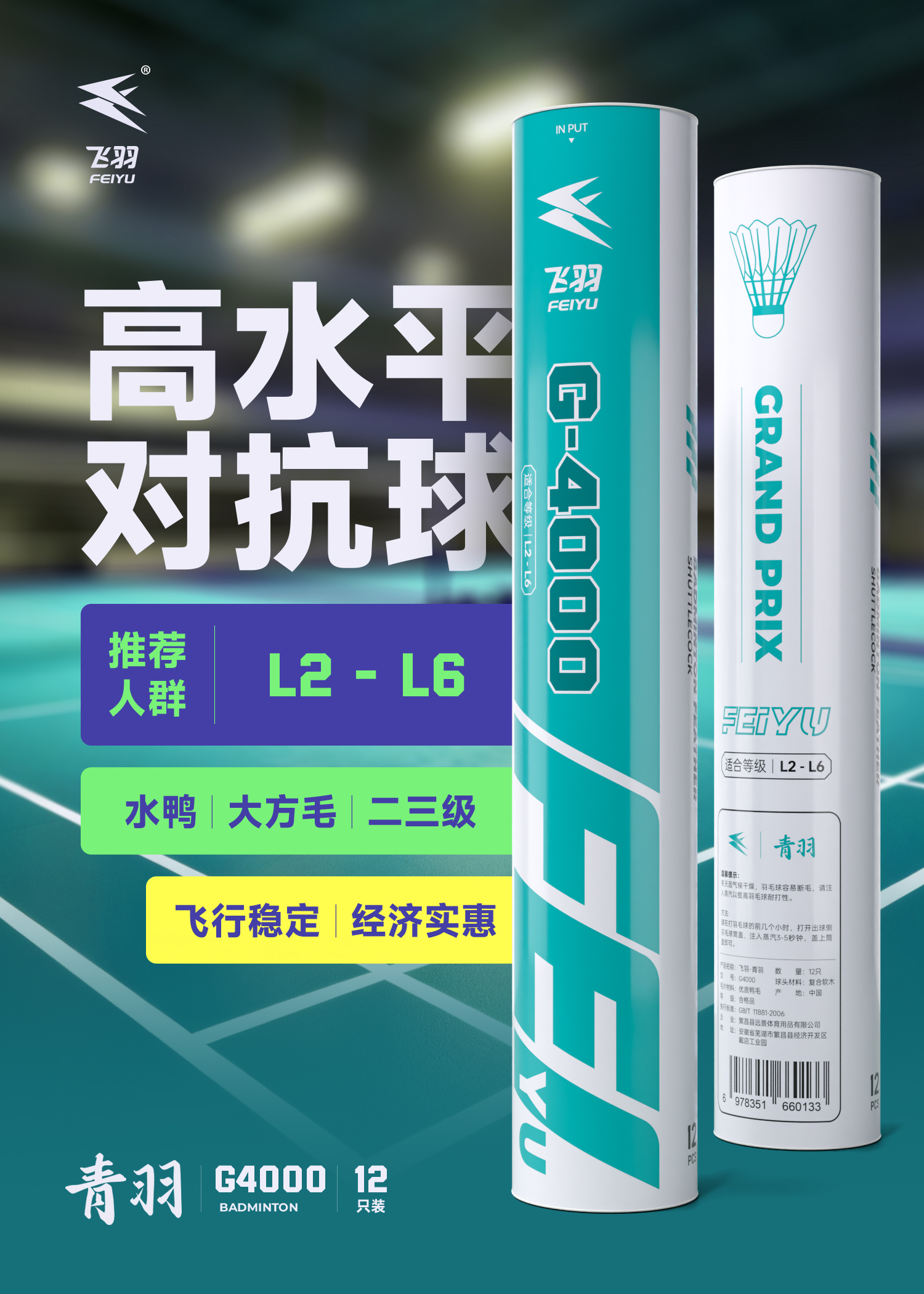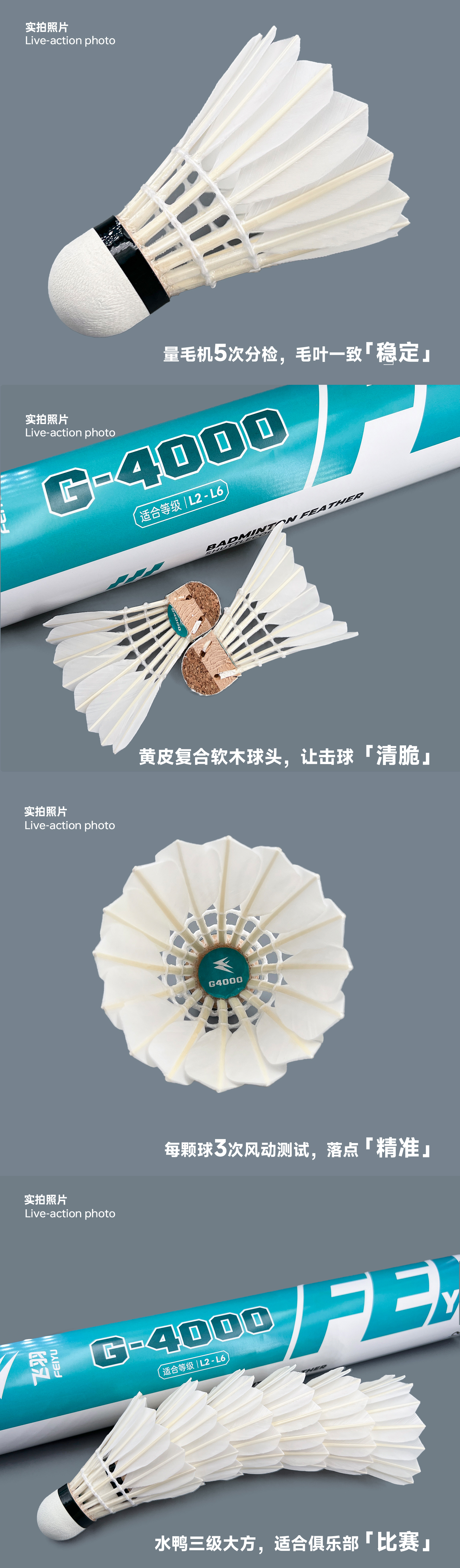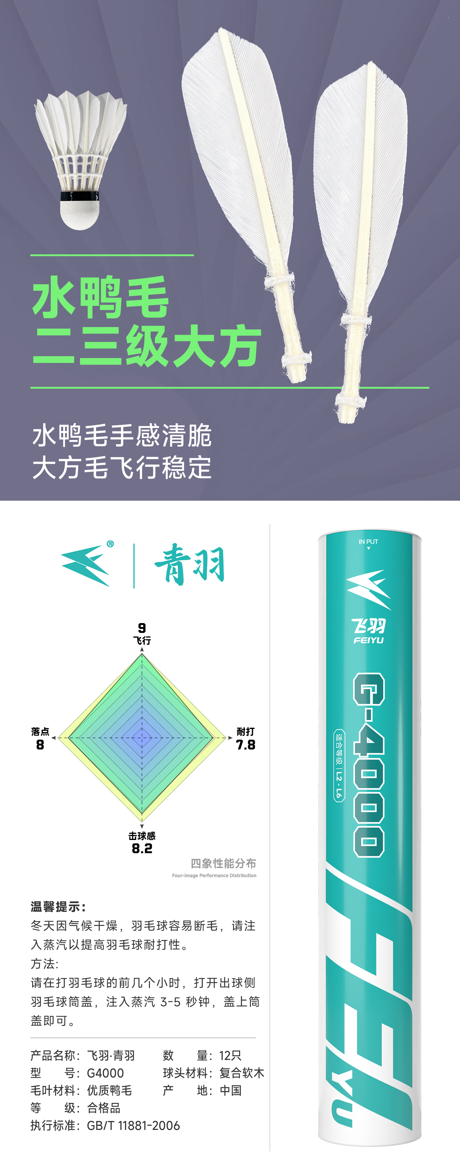 飞羽 羽毛球 训练级 优质鸭毛 青羽-G4000