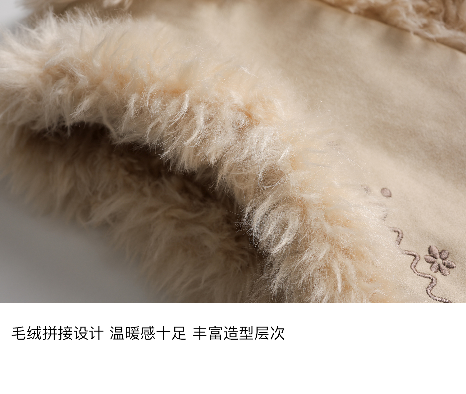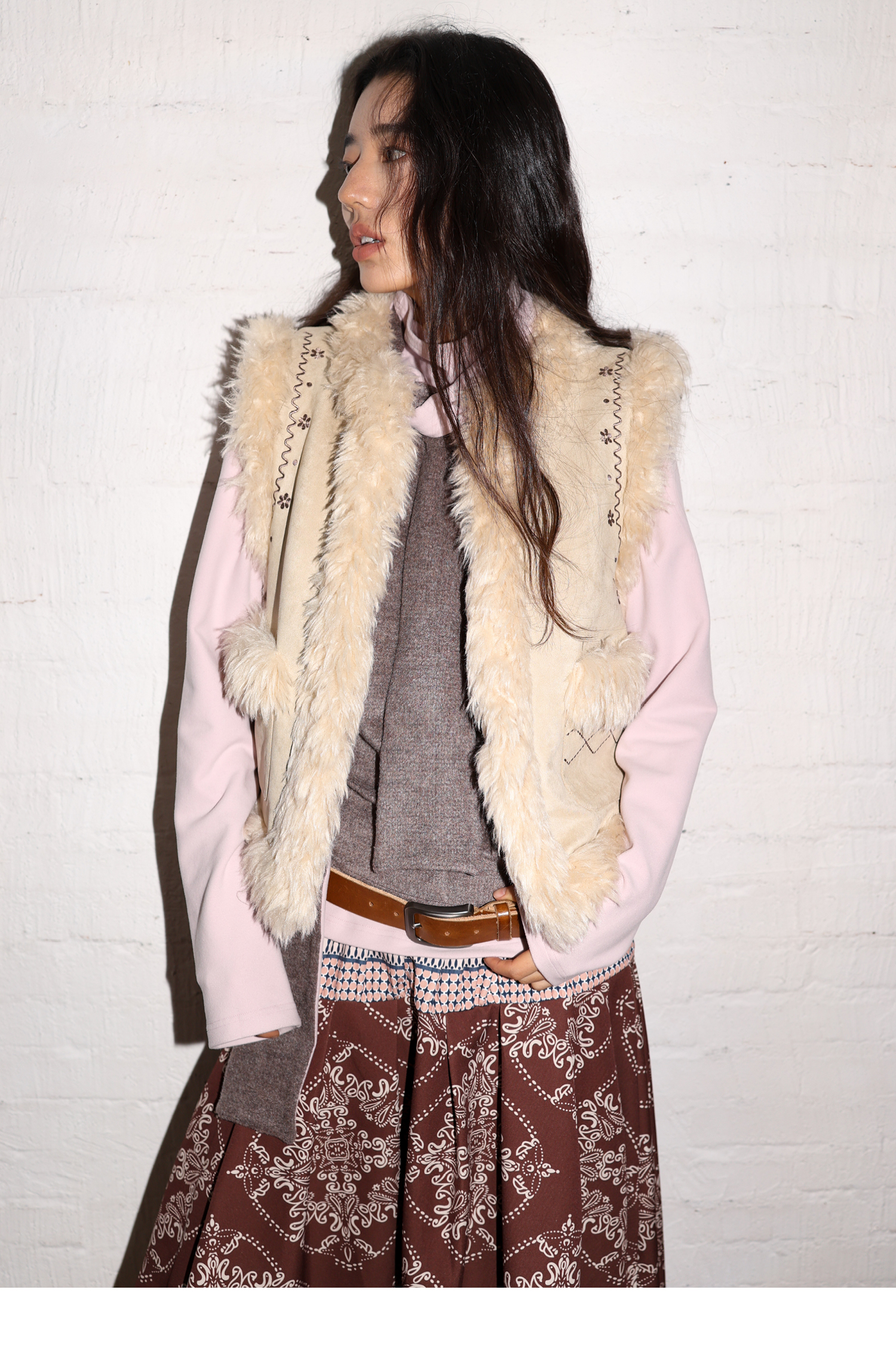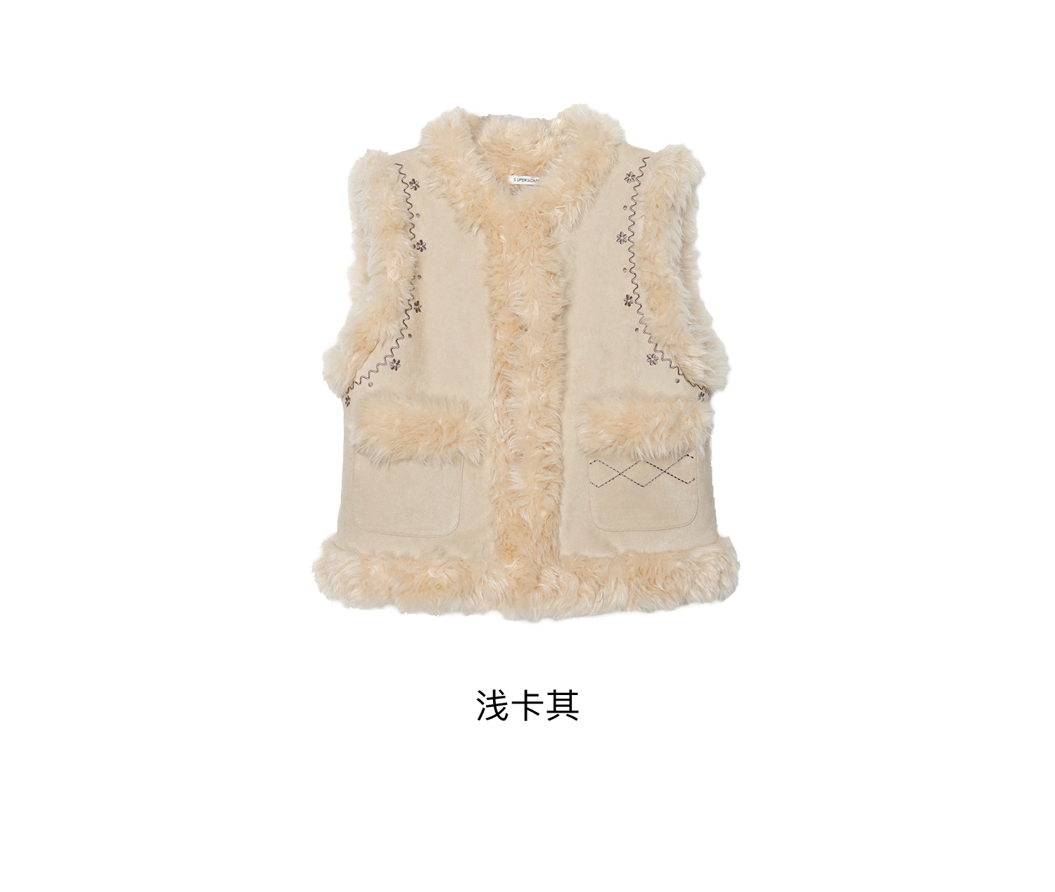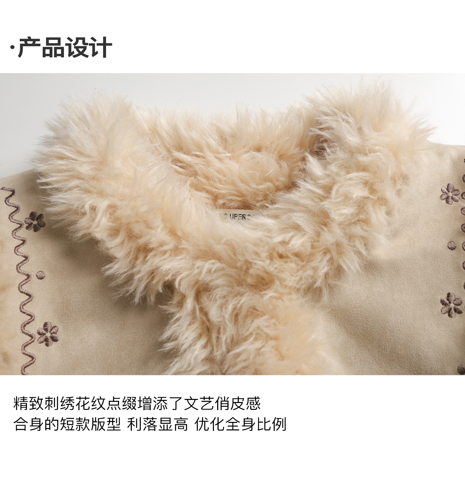 素舶 牧谣绒边 麂皮毛绒拼接民族风小花刺绣短款保暖马甲背心