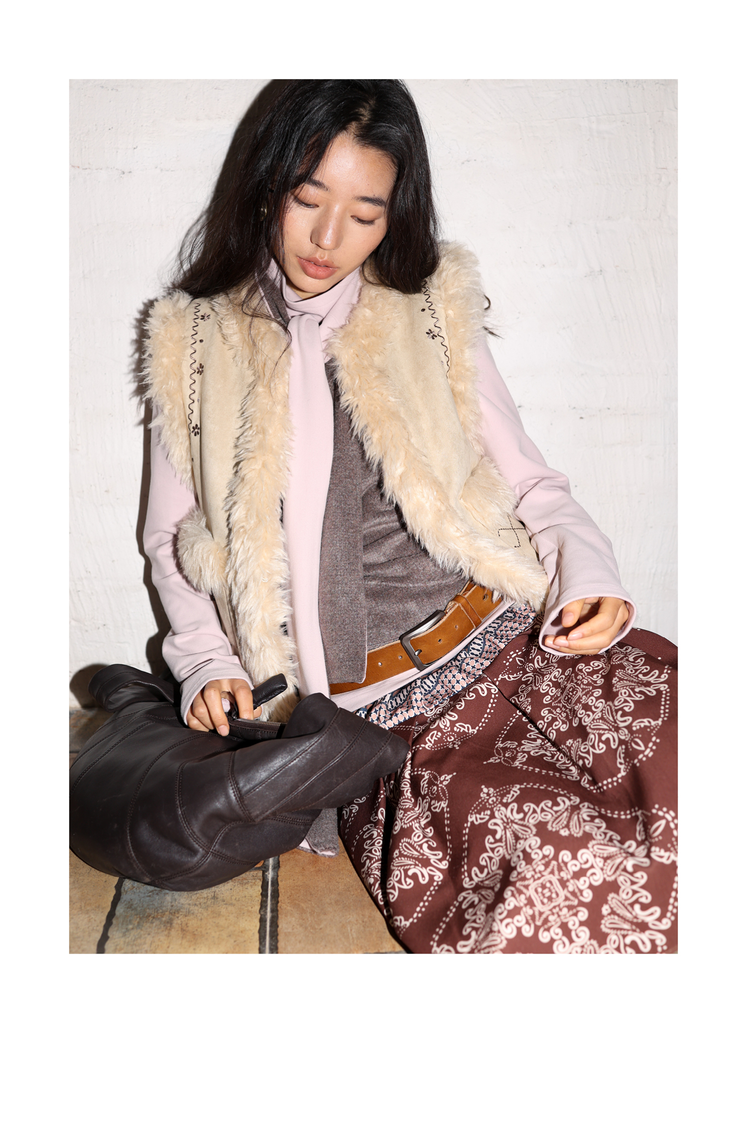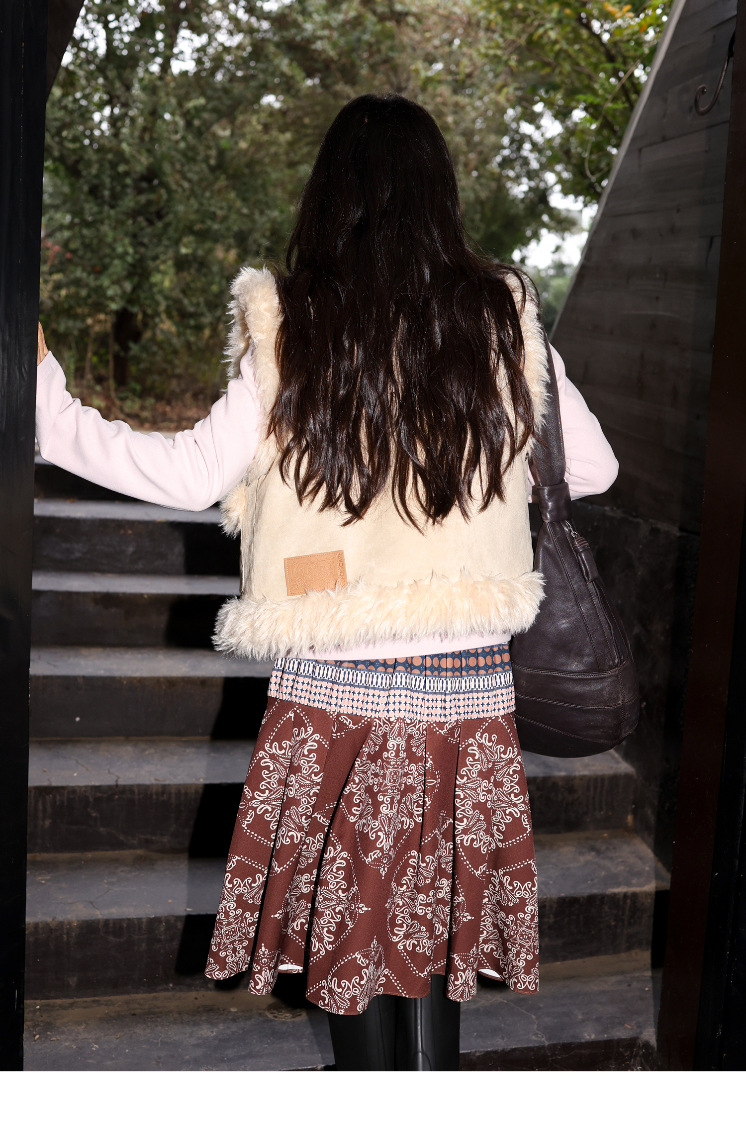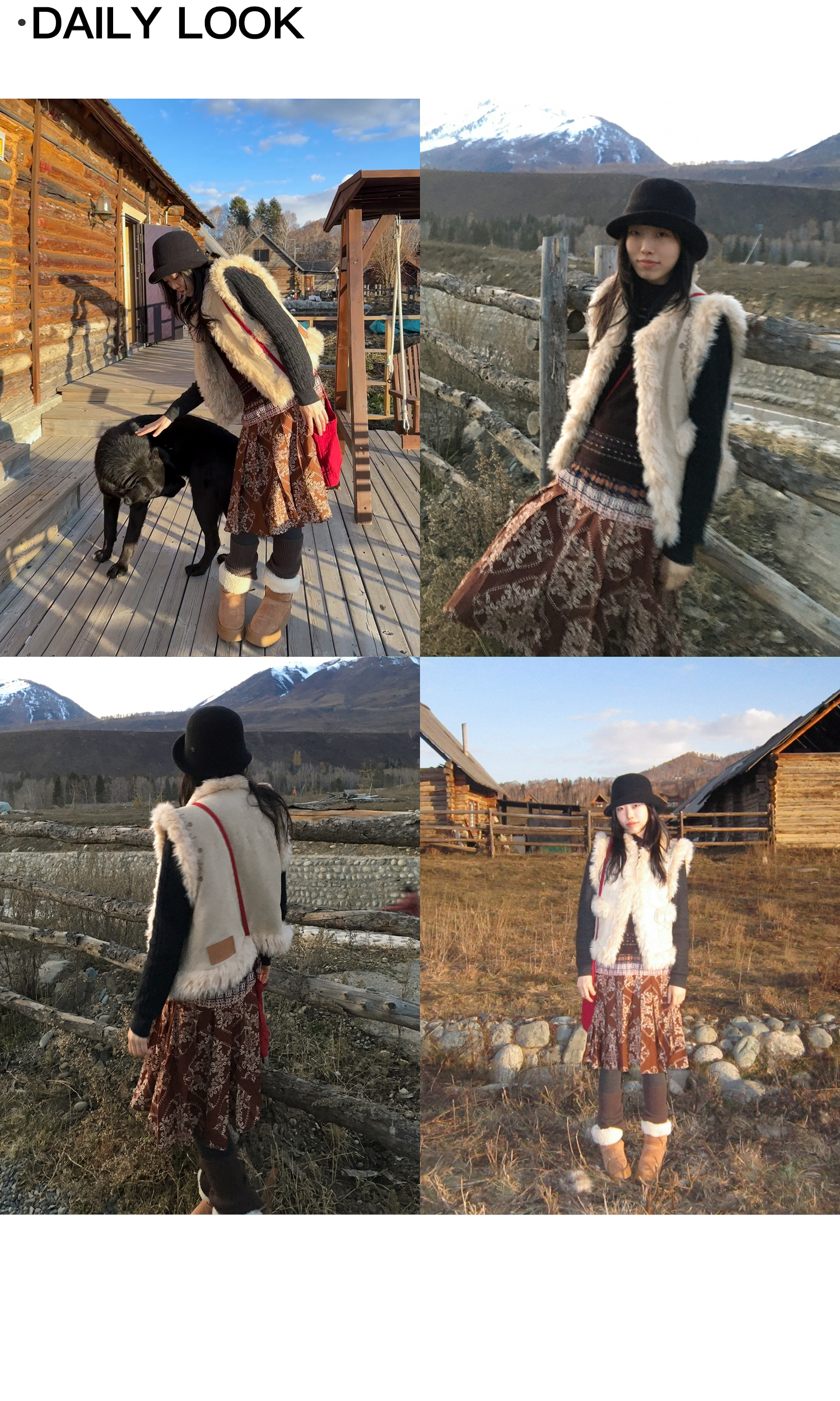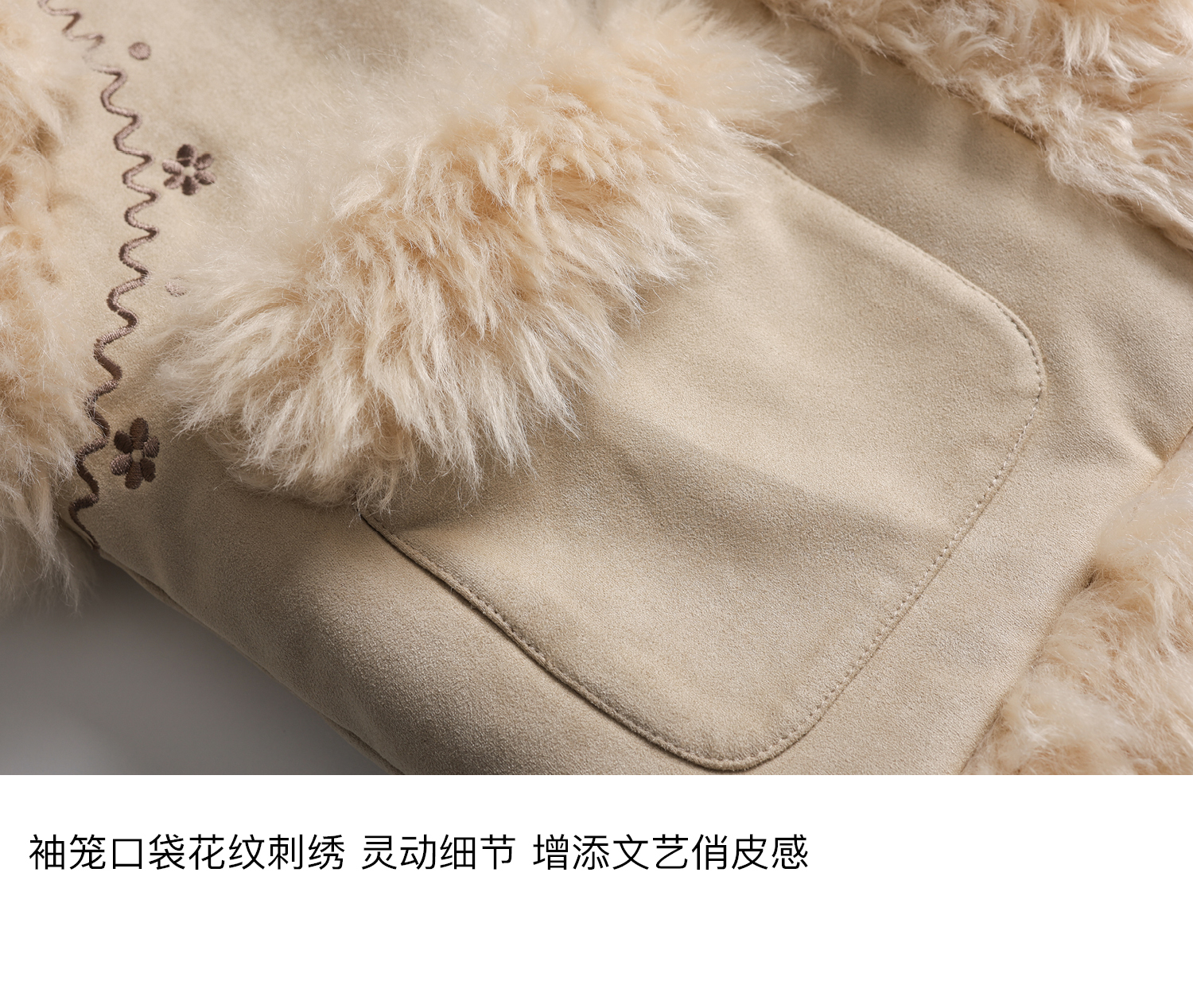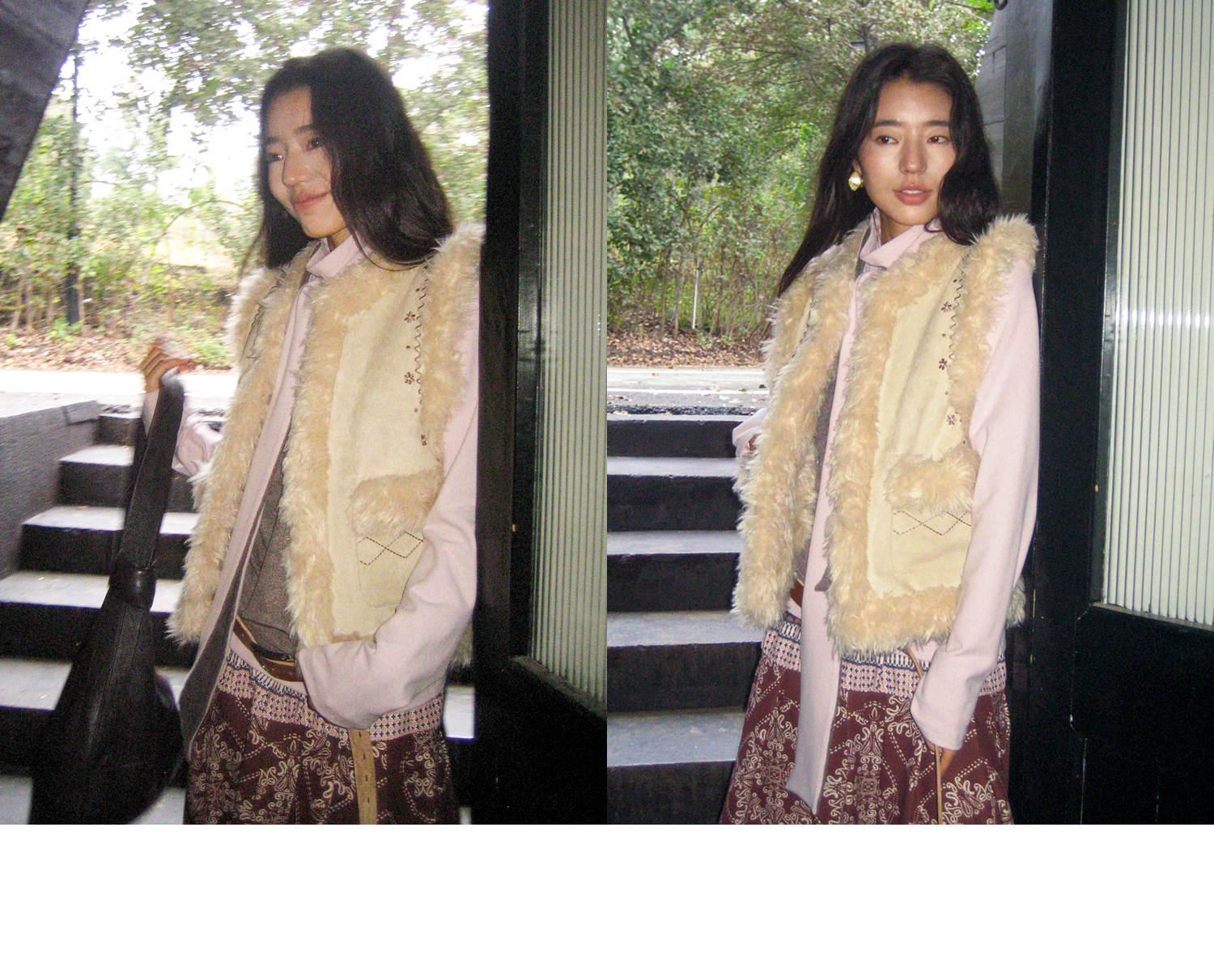 素舶 牧谣绒边 麂皮毛绒拼接民族风小花刺绣短款保暖马甲背心