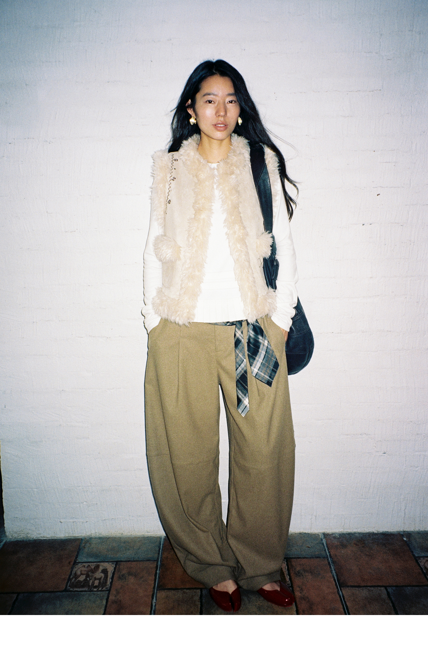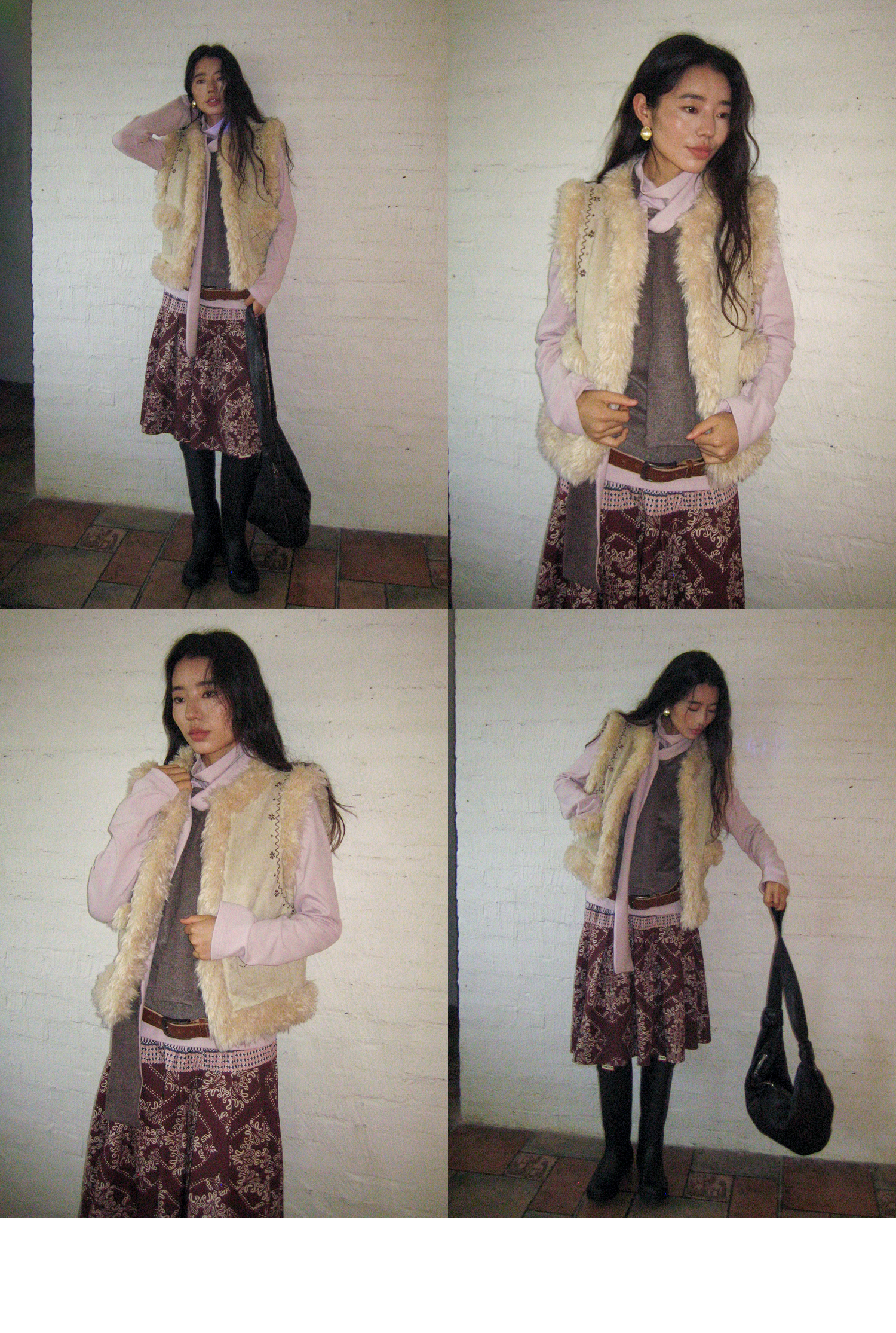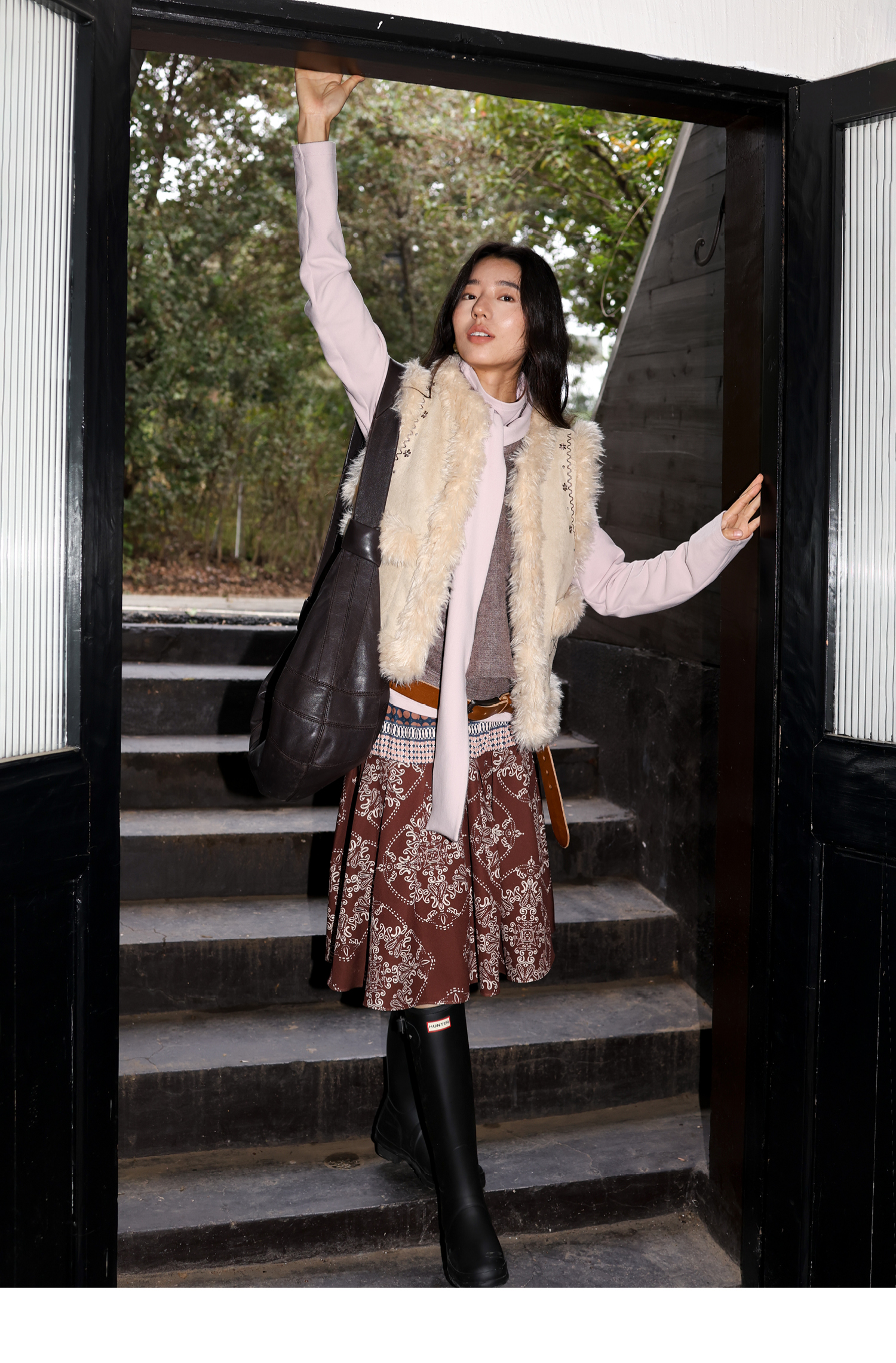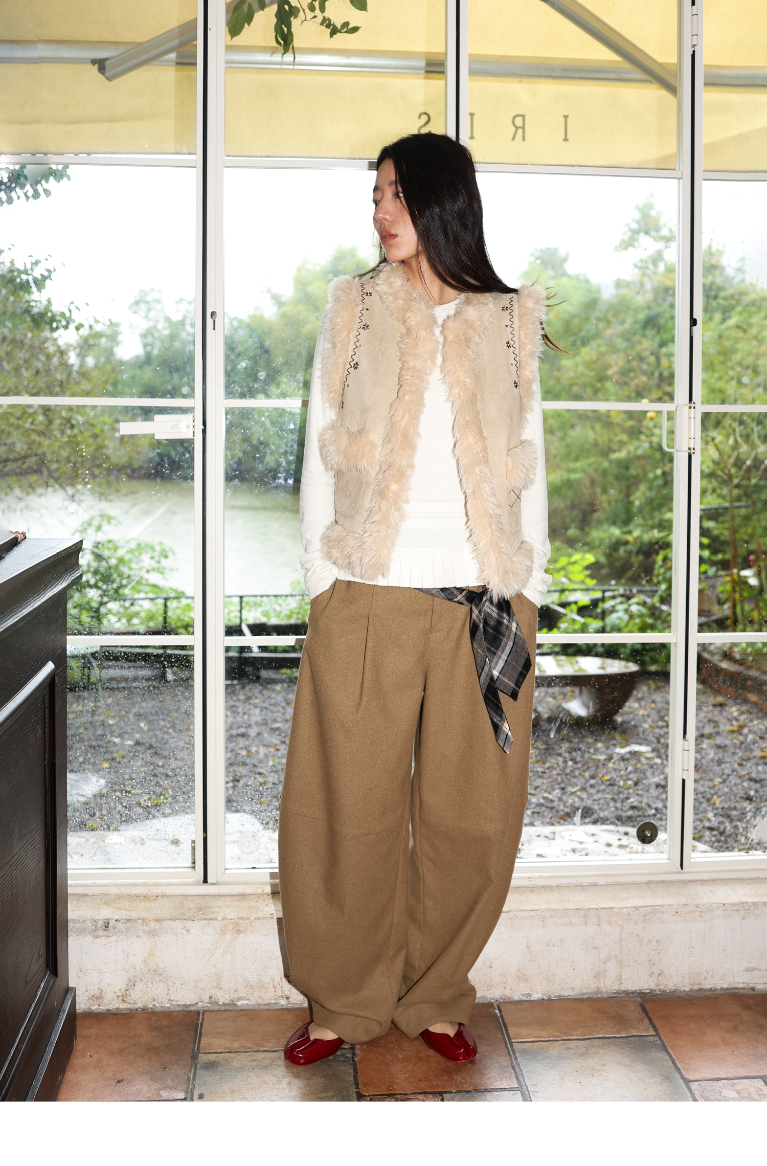 素舶 牧谣绒边 麂皮毛绒拼接民族风小花刺绣短款保暖马甲背心