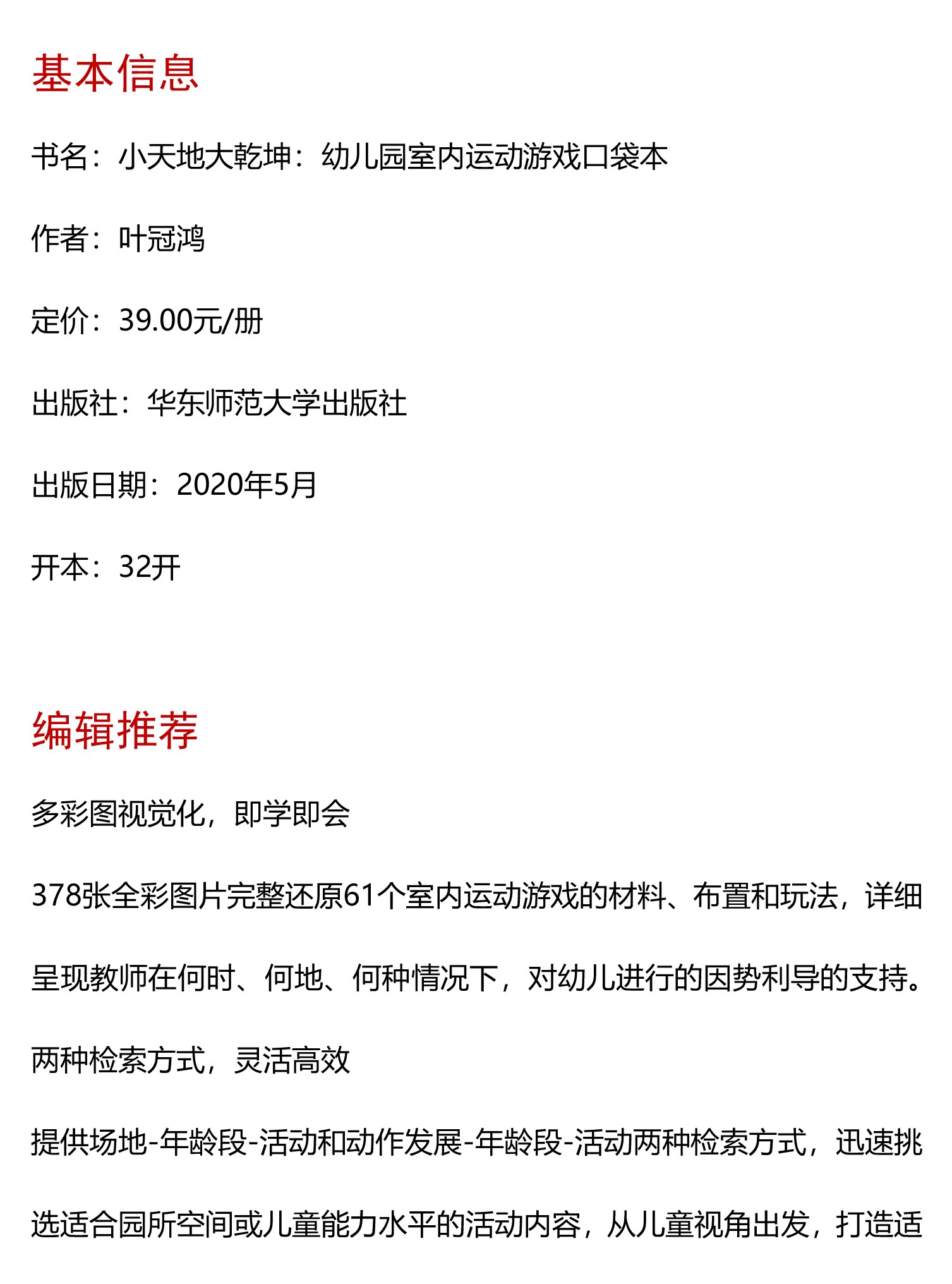 小天地大乾坤 幼儿园室内运动游戏口袋本 教育大纲设计 378张彩图 61个室内游戏