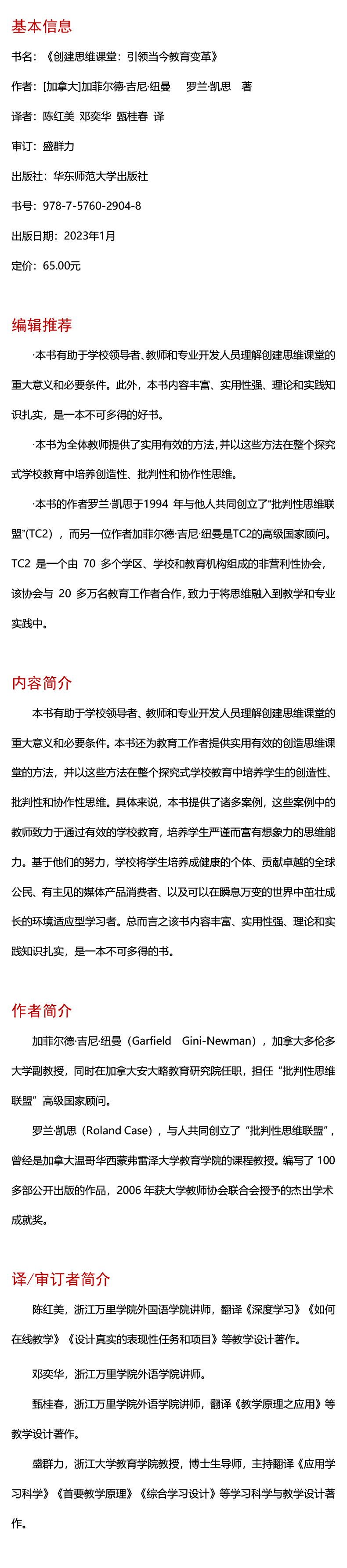 创建思维课堂 引领当今教育变革 大夏书系 培养学习力译丛