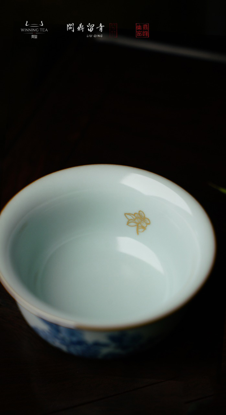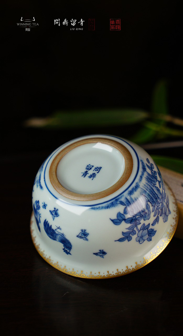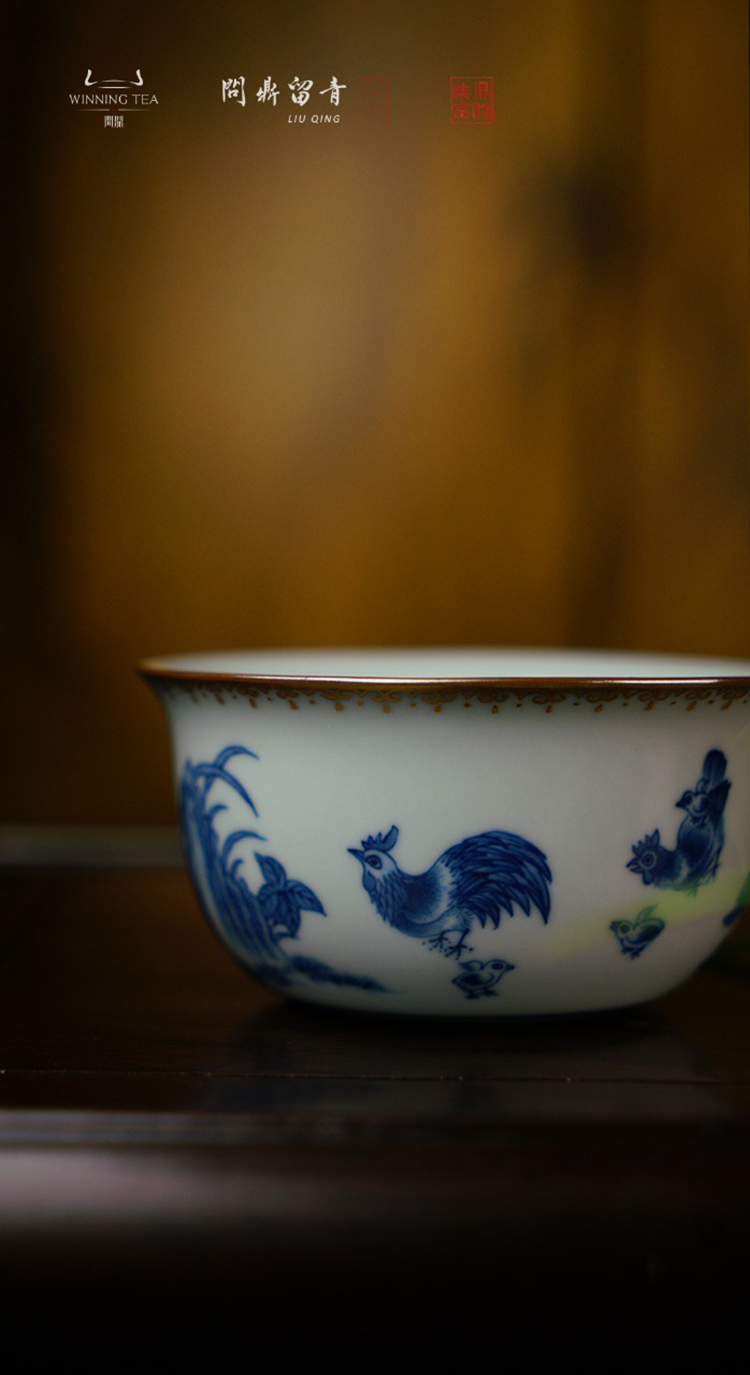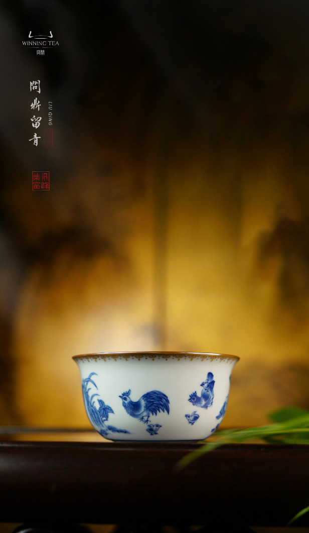 问鼎留青月白鸡缸杯(青花斗金鸡)