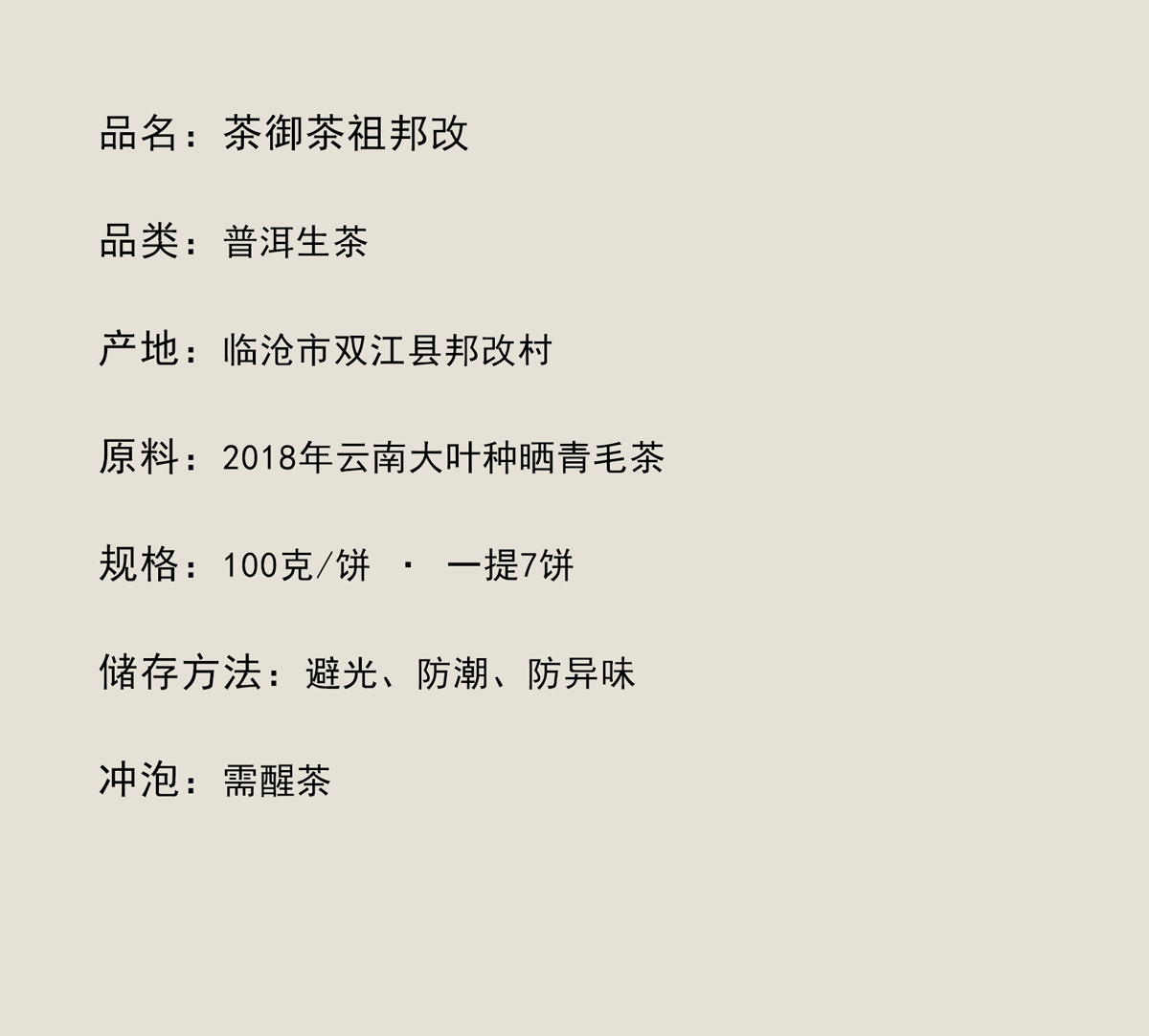 秒杀「茶御茶祖·邦改」2018年头春生普,山野之韵,茶中至味(100g)