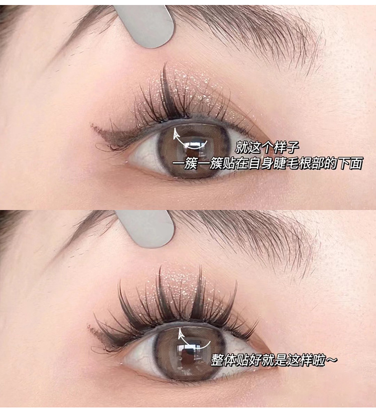 【妈生感上镜!纯欲猫眼睛睫毛】放大双眼,舒适零负重,有神又灵动!大容量猫系精灵漫画自然假睫毛单簇分段恶魔上镜睫毛