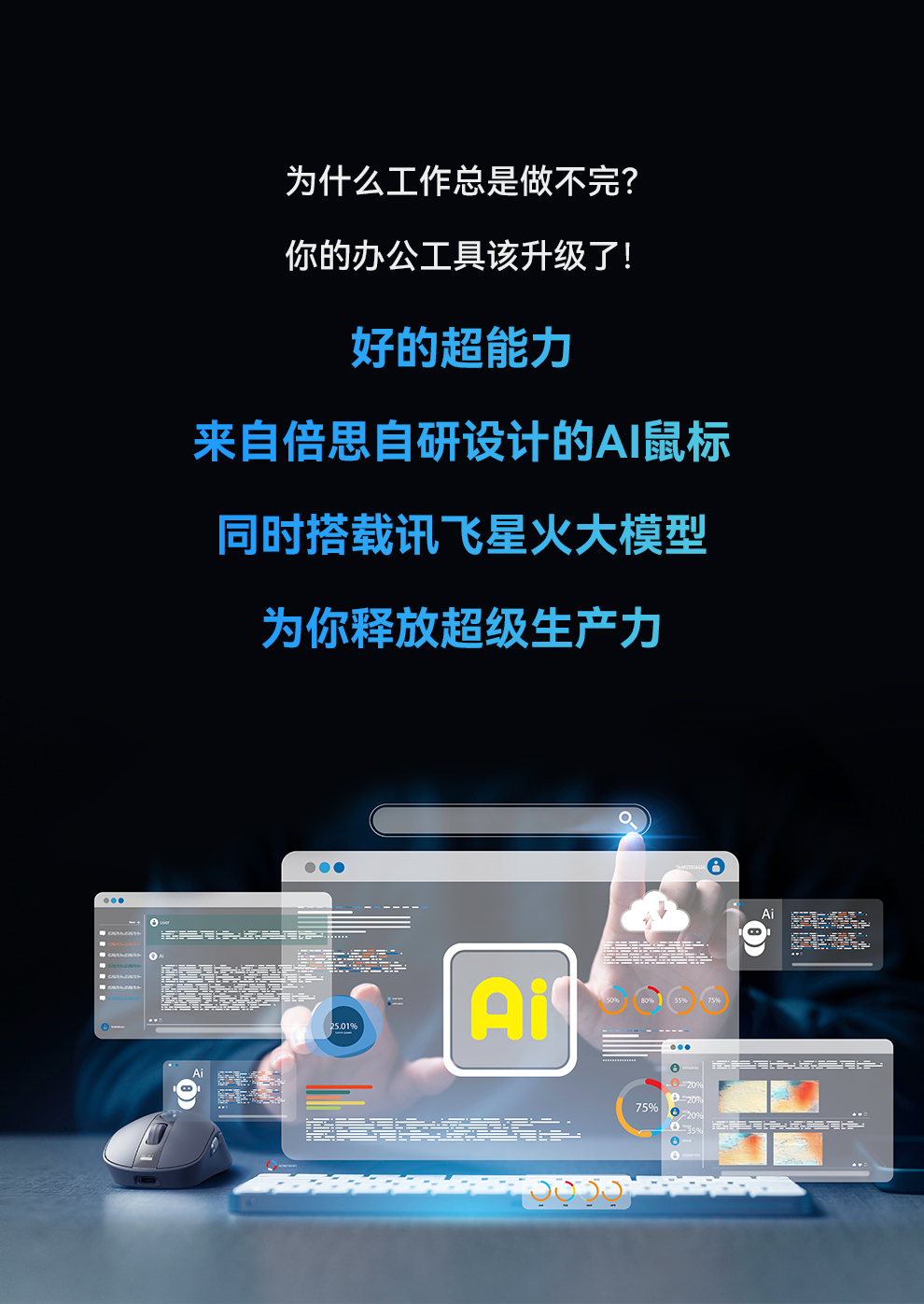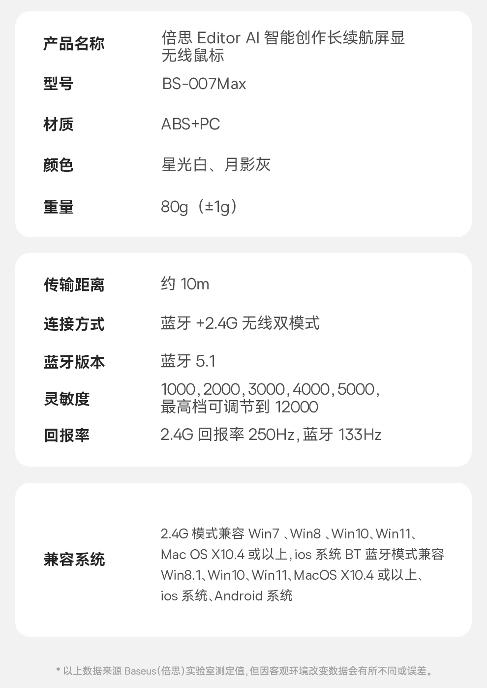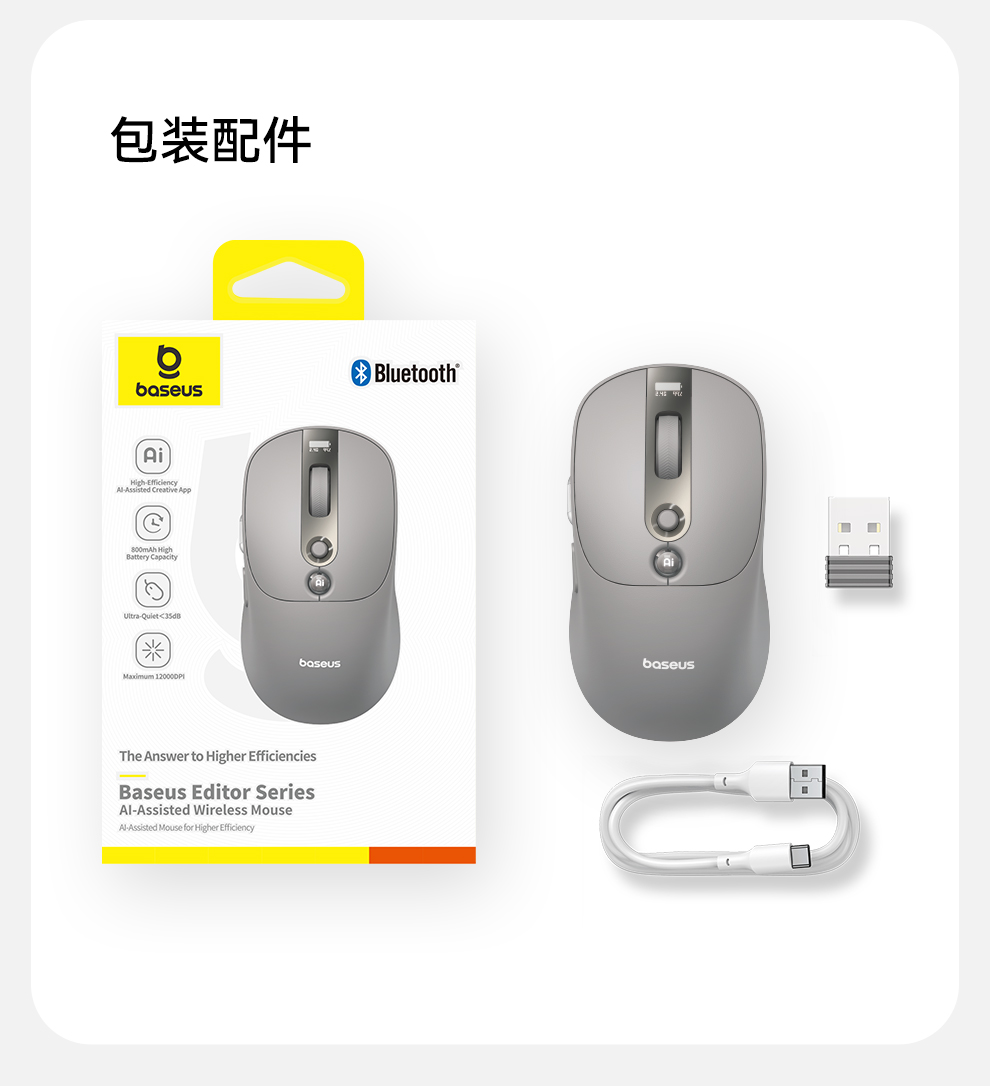【十一专享】倍思 Editor AI智能创作长续航屏显 无线鼠标
