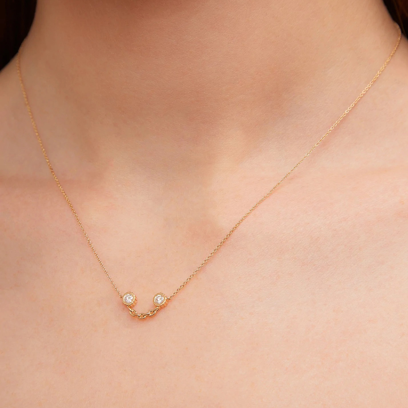 北京仓|Yvonne Leon-SOURIR OR JAUNE-独立之光 微笑 灰钻 项链[法国设计师]