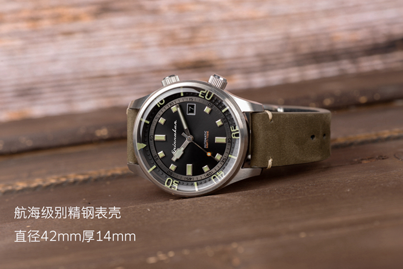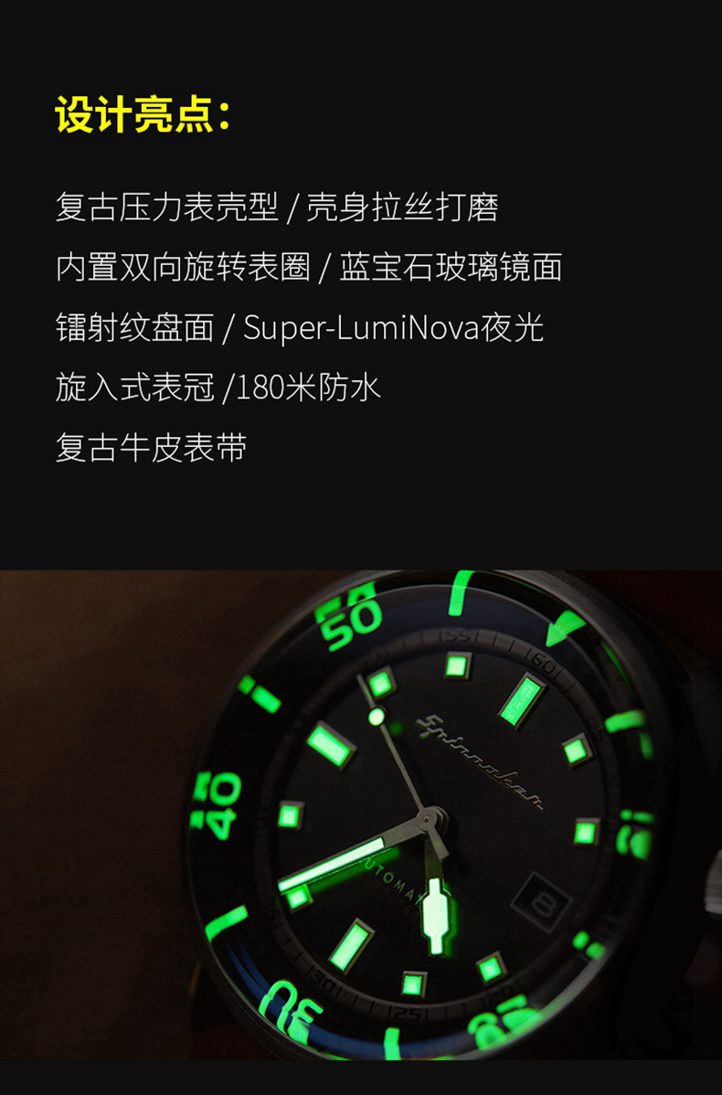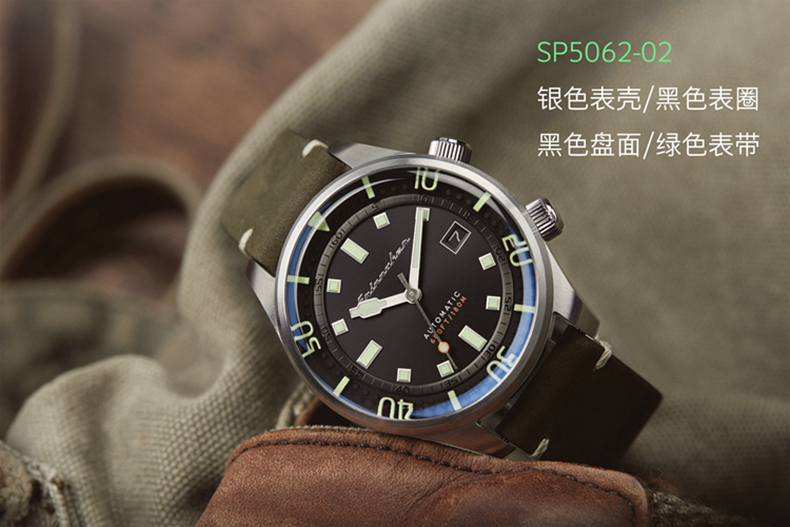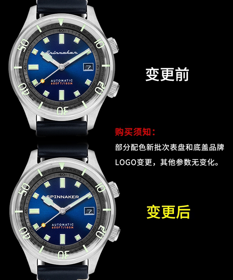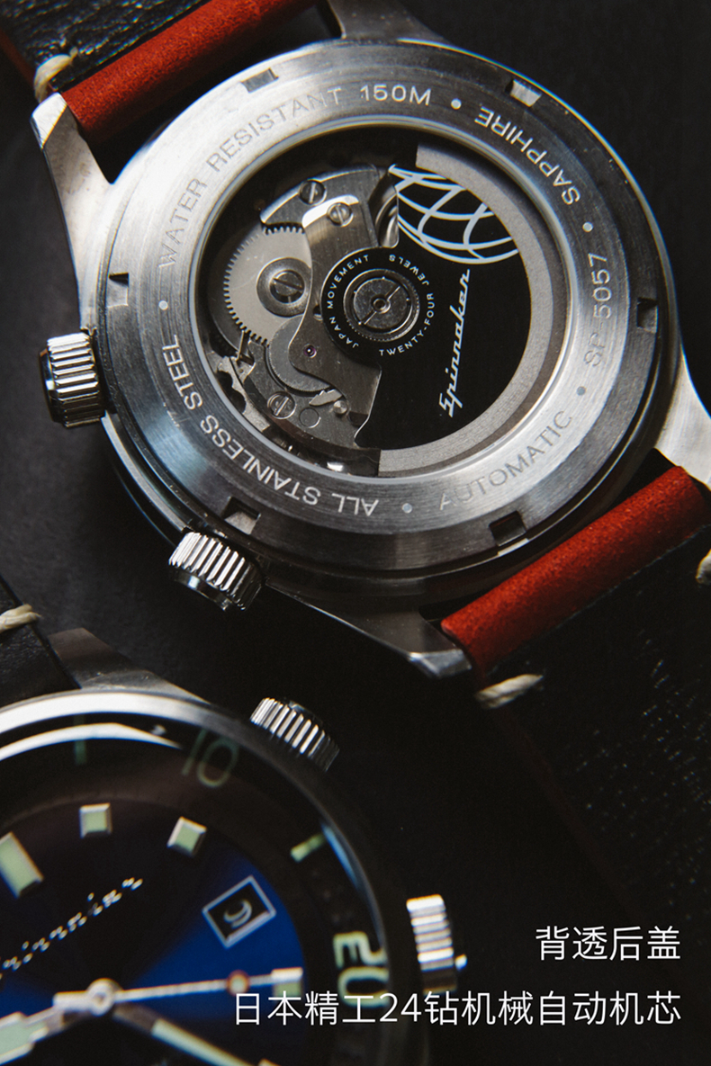 英国SPINNAKER三角帆复古潜水自动机械手表BRADNER夜光水鬼皮表带