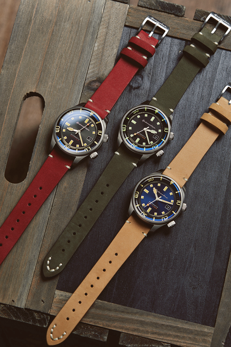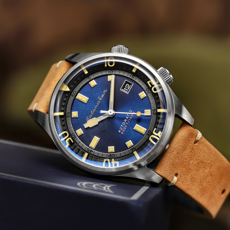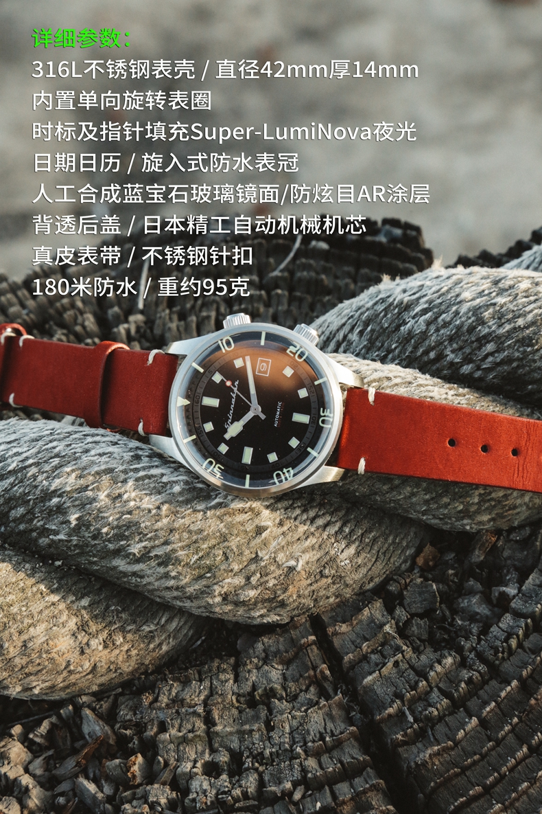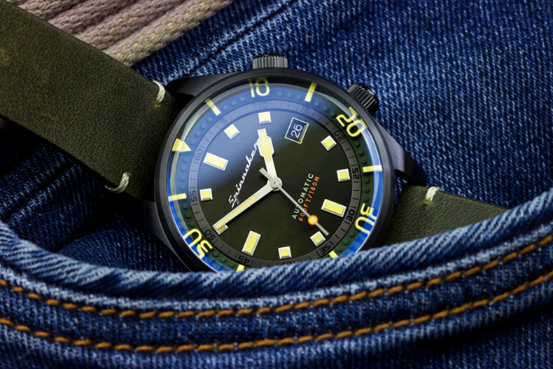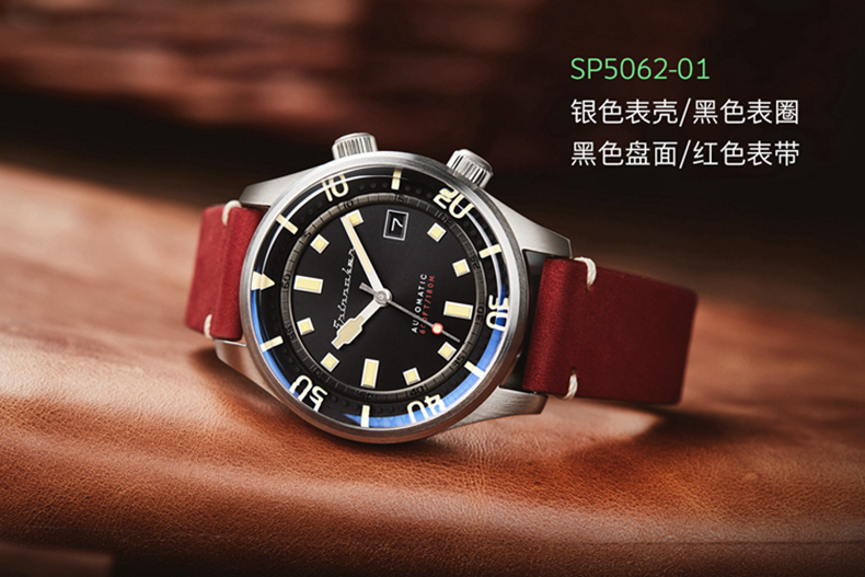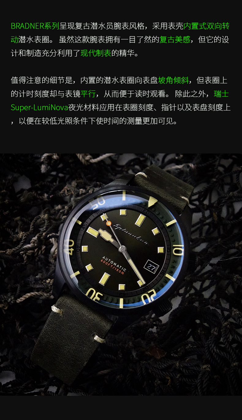 英国SPINNAKER三角帆复古潜水自动机械手表BRADNER夜光水鬼皮表带