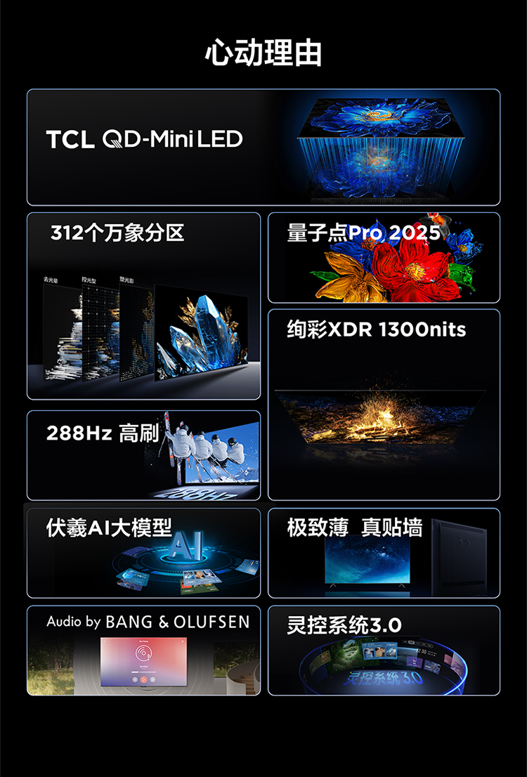 TCL电视 75P12K QD-Mini LED 312 个万象分区 绚彩XDR 1300nits Audio by Bang & Olufsen 75英寸