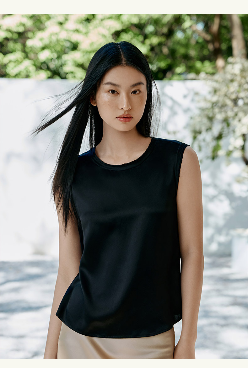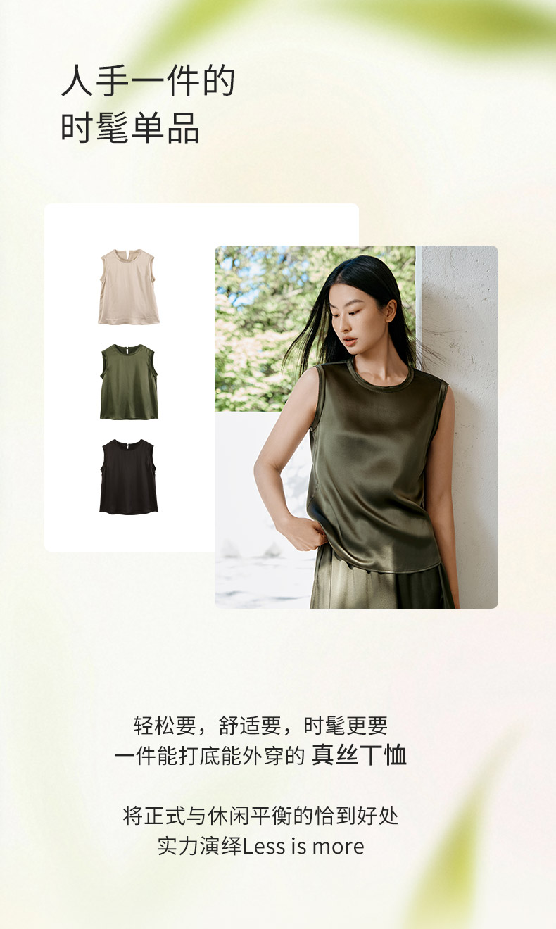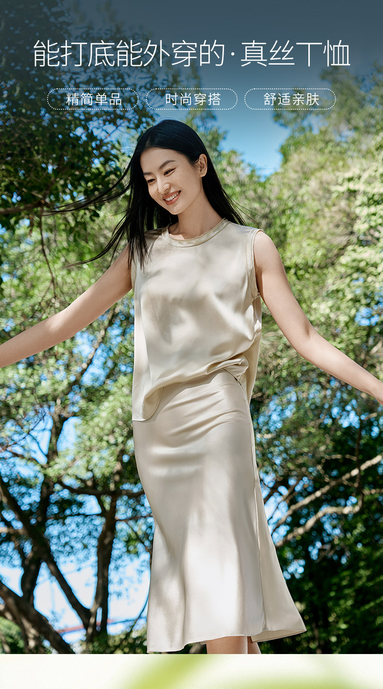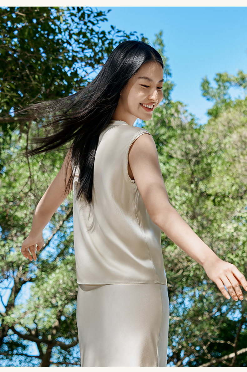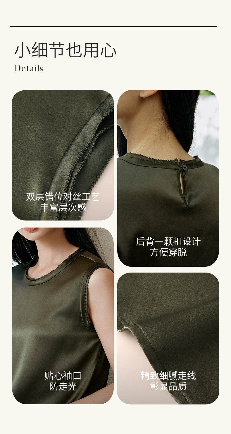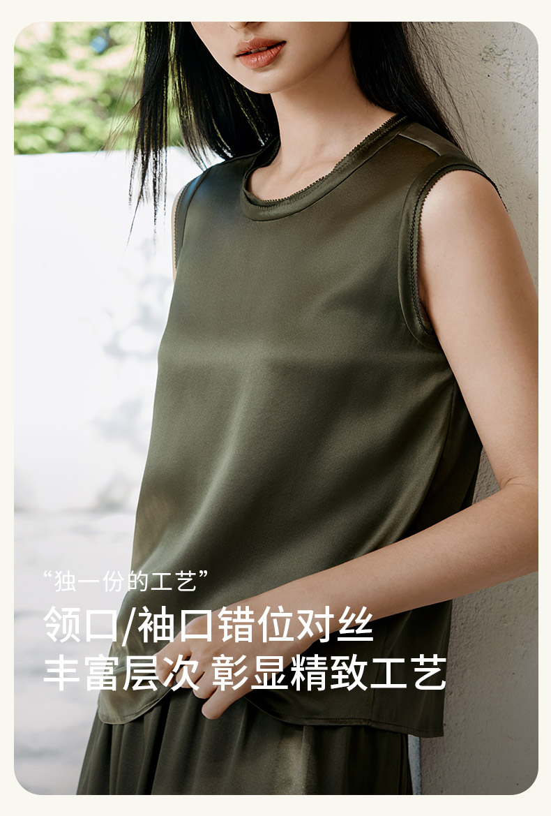 金三塔100%桑蚕丝背心女宽松透气圆领舒适打底衫可外穿小衫上衣 YSFFB501