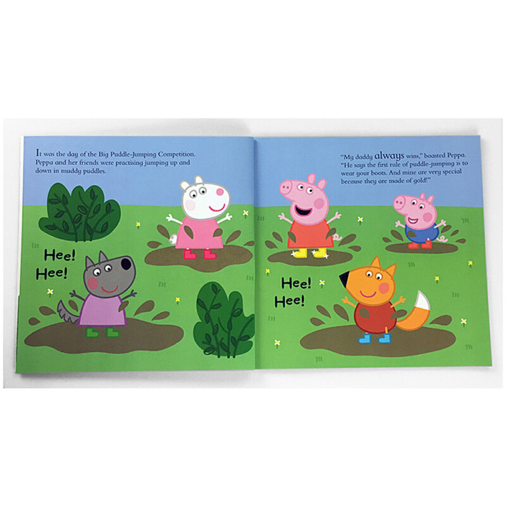 Poor Peppa! Mrs Duck has stolen Peppa Pig's special golden wellies and now she can't compete in the Puddle-Jumping Competition! Can Peppa and her friends get the golden wellies back in time?