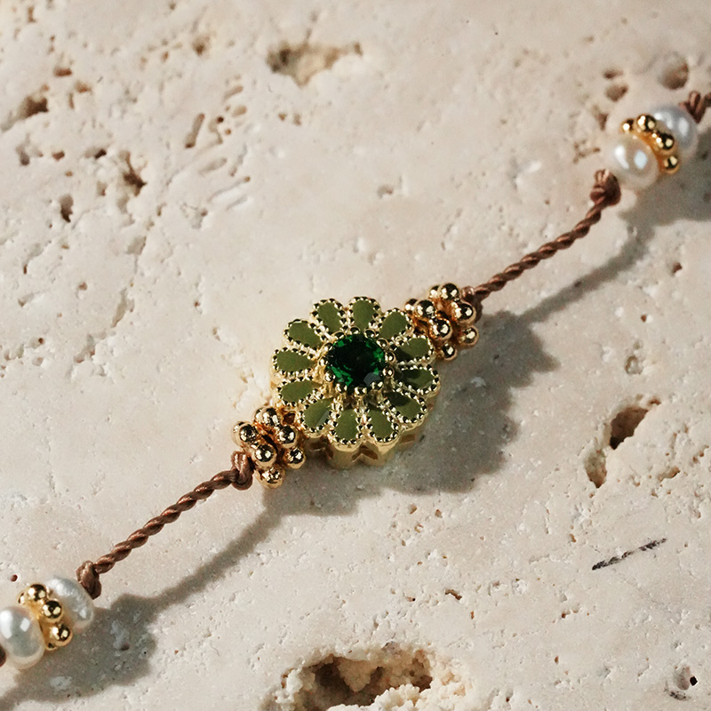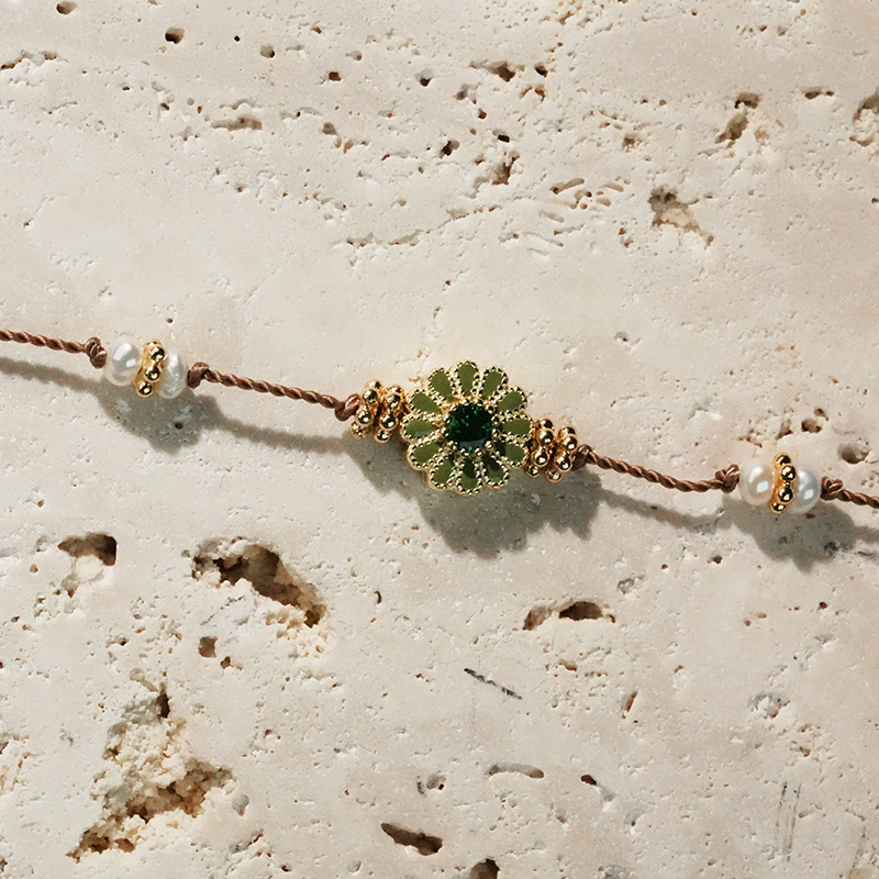 订购8周到|Tityaravy-MalaSai-花朵 珍珠 透辉石 珐琅 手链[法国设计师]