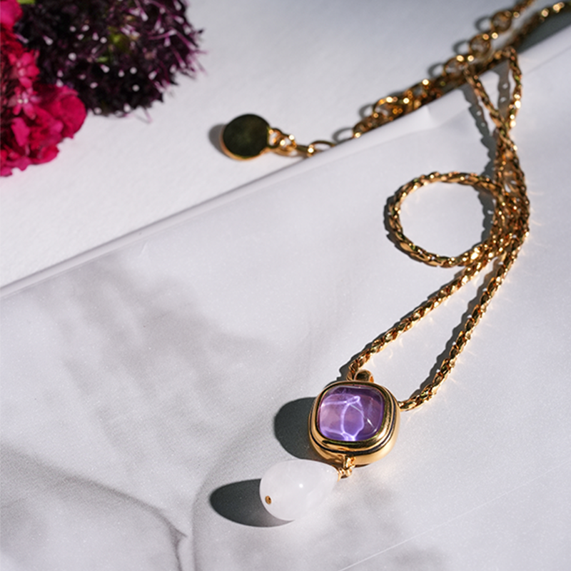 北京仓|Goossens Paris-RENAISSANCE-粉紫色 水滴 吊坠 项链[法国设计师]