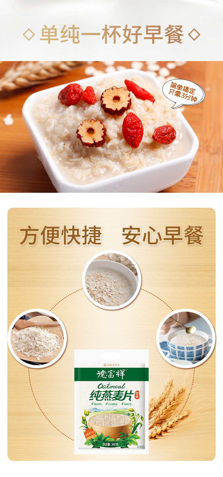【积分兑换】德富祥原味燕麦片380g即食冲饮营养早餐麦片