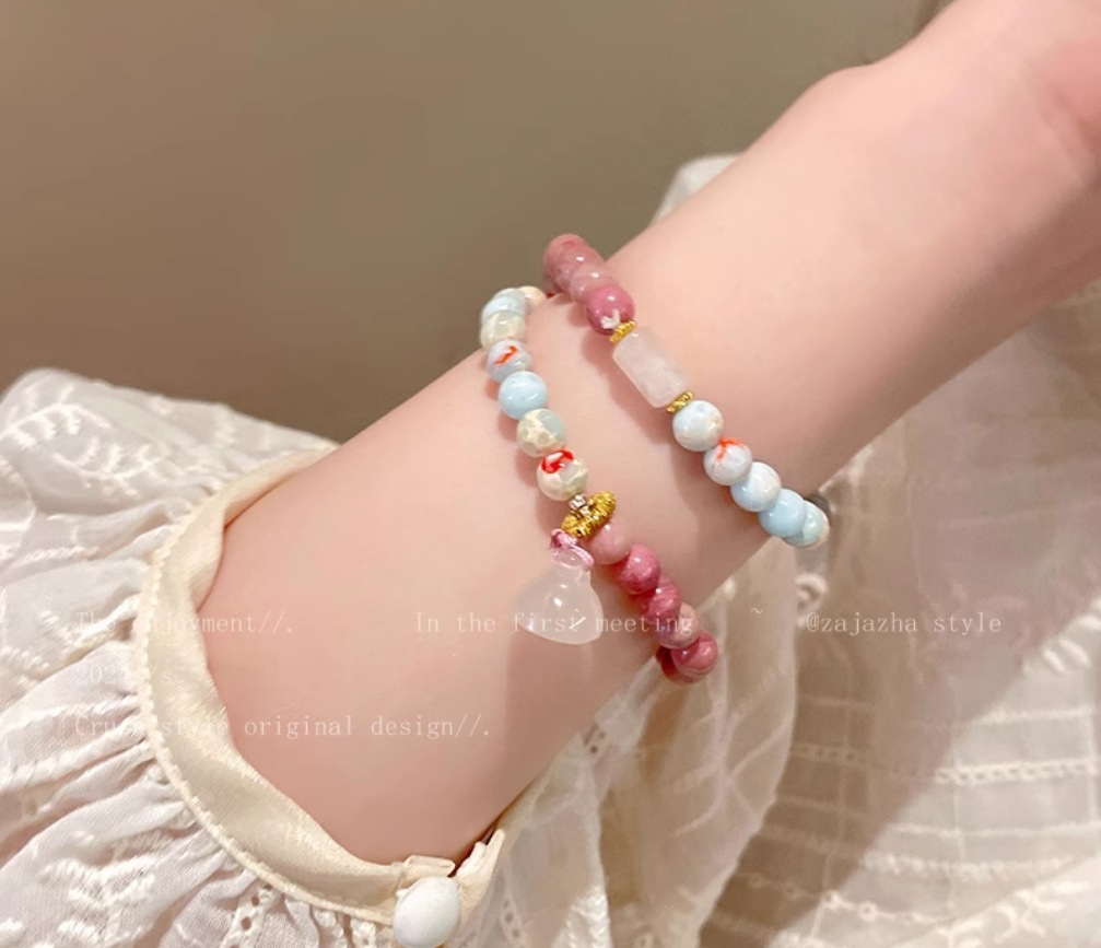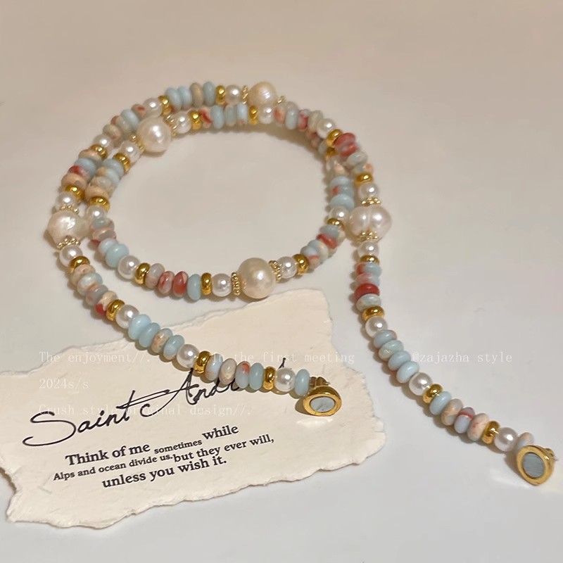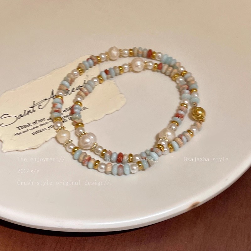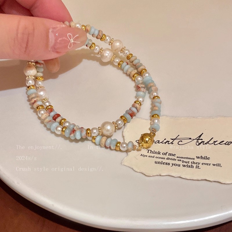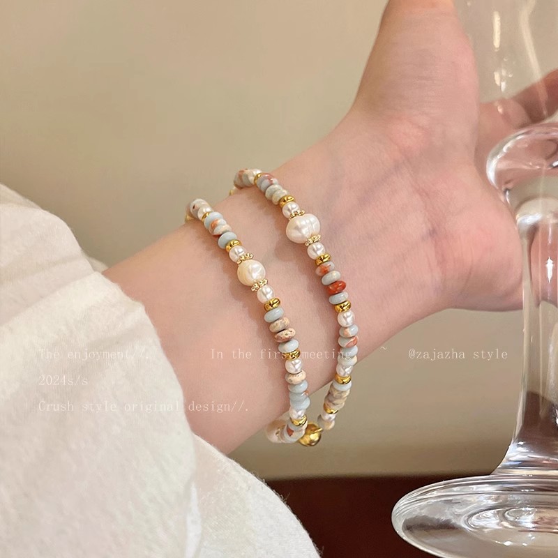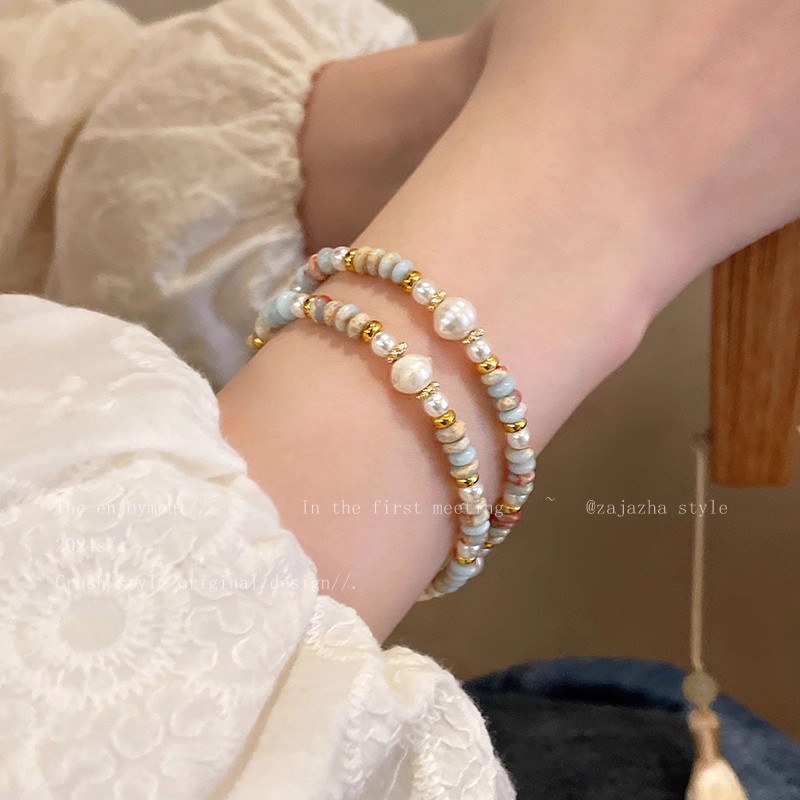 六鑫珠宝 寿山石淡水珍珠多巴胺叠戴串珠手串 轻奢小众精致