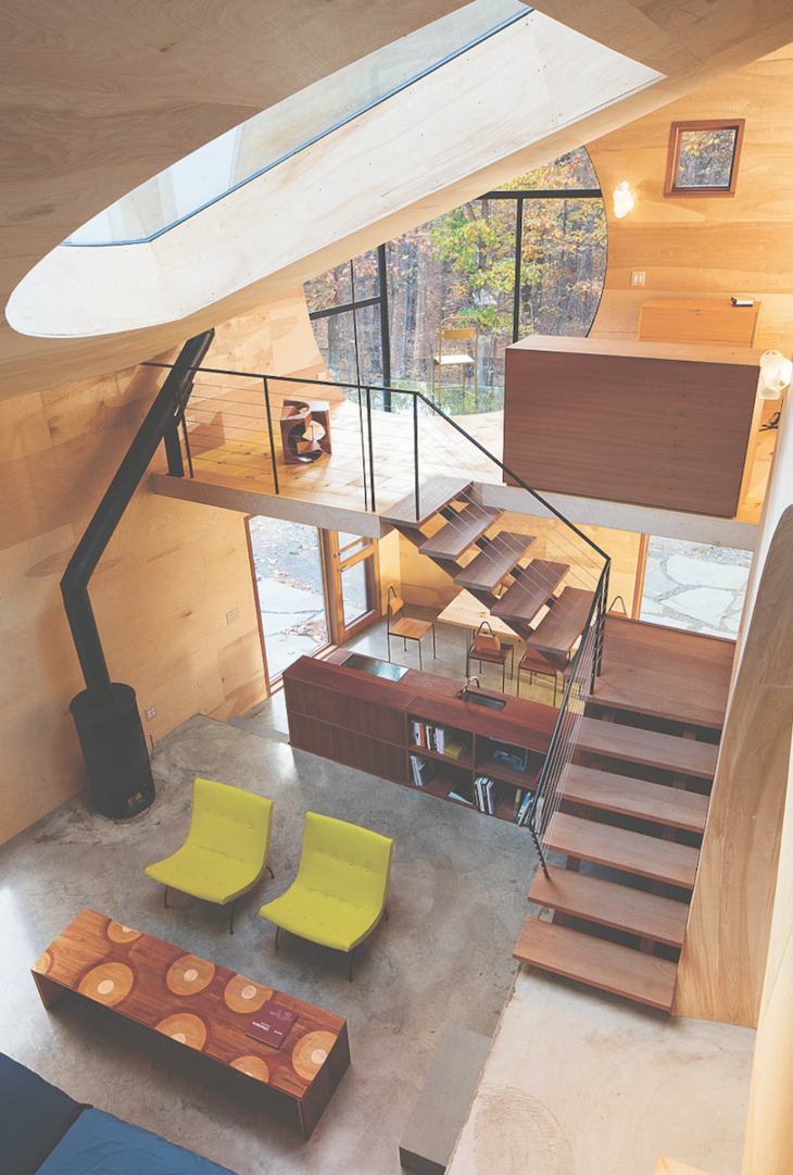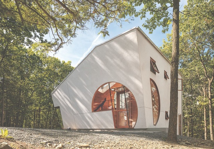 “EX OF IN”住宅位于纽约州北部莱茵贝克森林与哈德逊河交界处,是独栋住宅主题的设计实验之一,该实验由斯蒂文·霍尔于2014年发起,由 5 个独立项目组成,旨在超越现代主义和乡土建筑的陈旧设计。