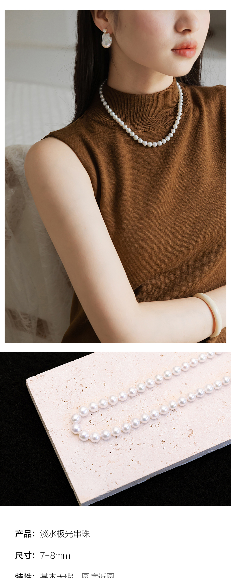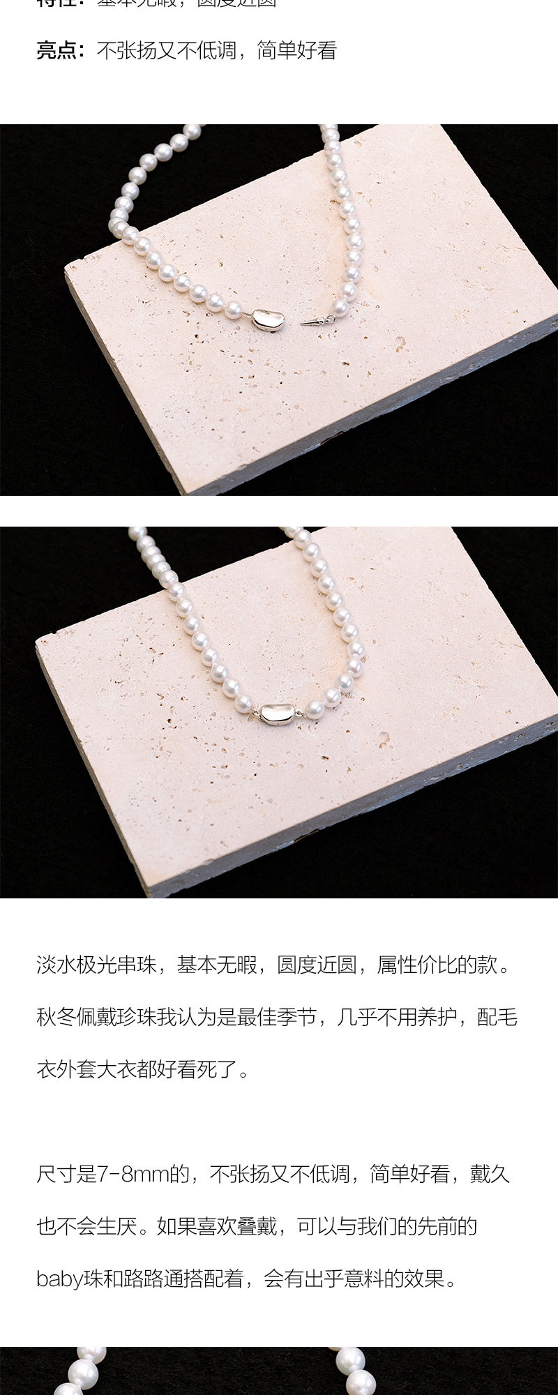 珍珠系列~~项链7-8mm 淡水极光基本无暇近圆,叠带更美~~项链长43cm--