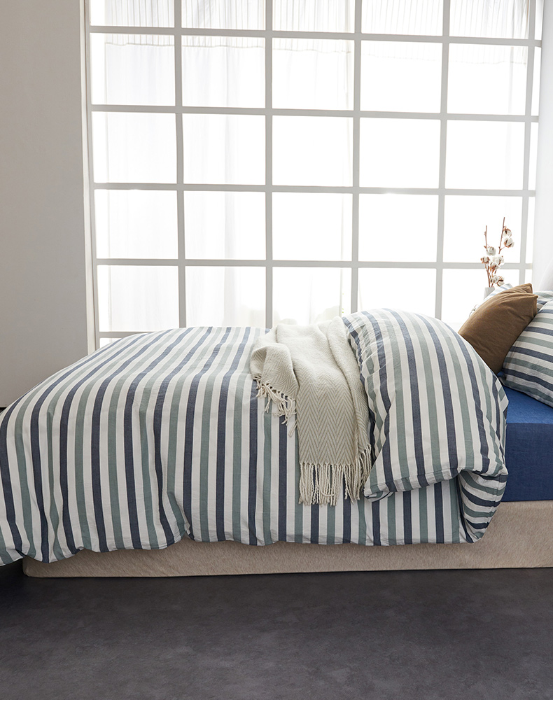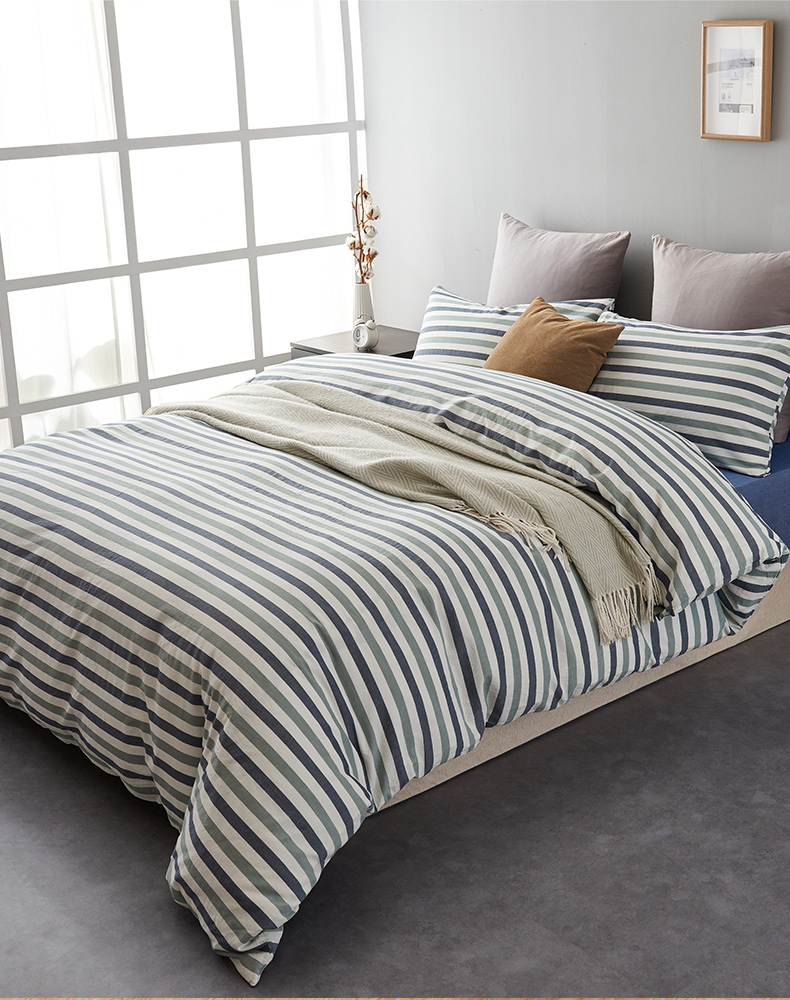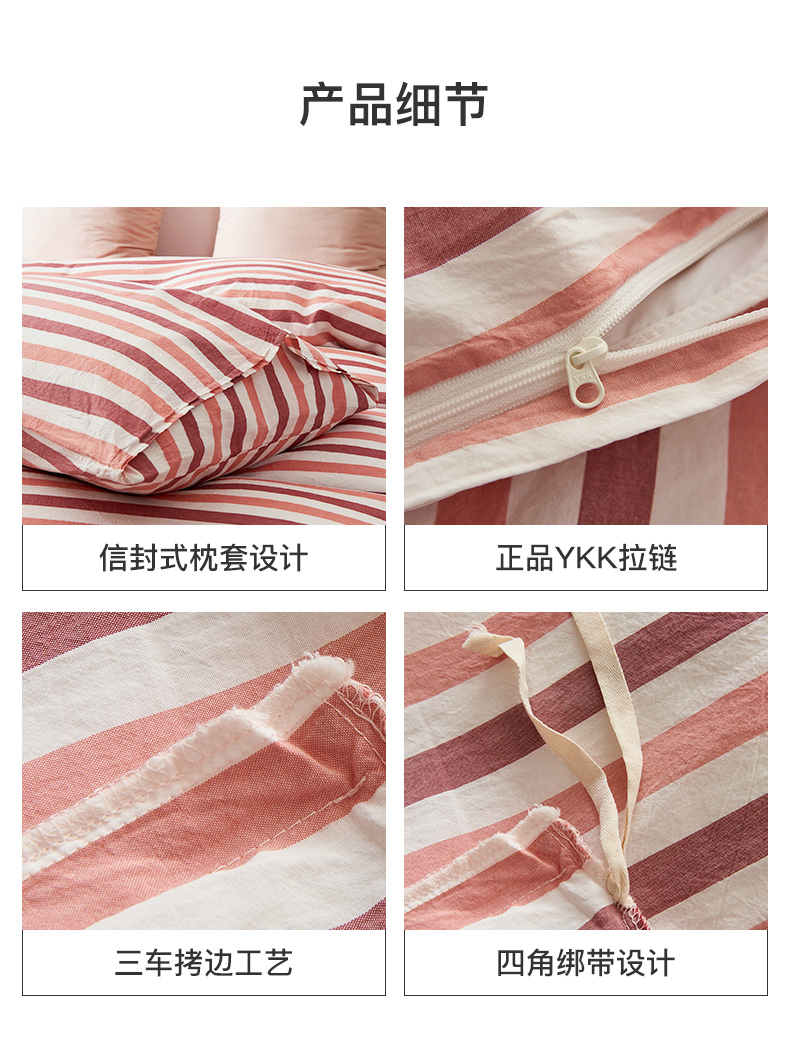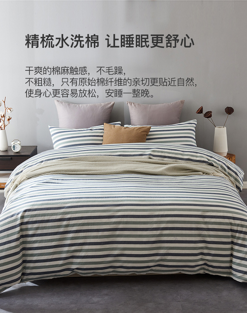 林溪纯棉四件套条纹全棉水洗棉简约北欧风被罩+床单+枕套 无印良品