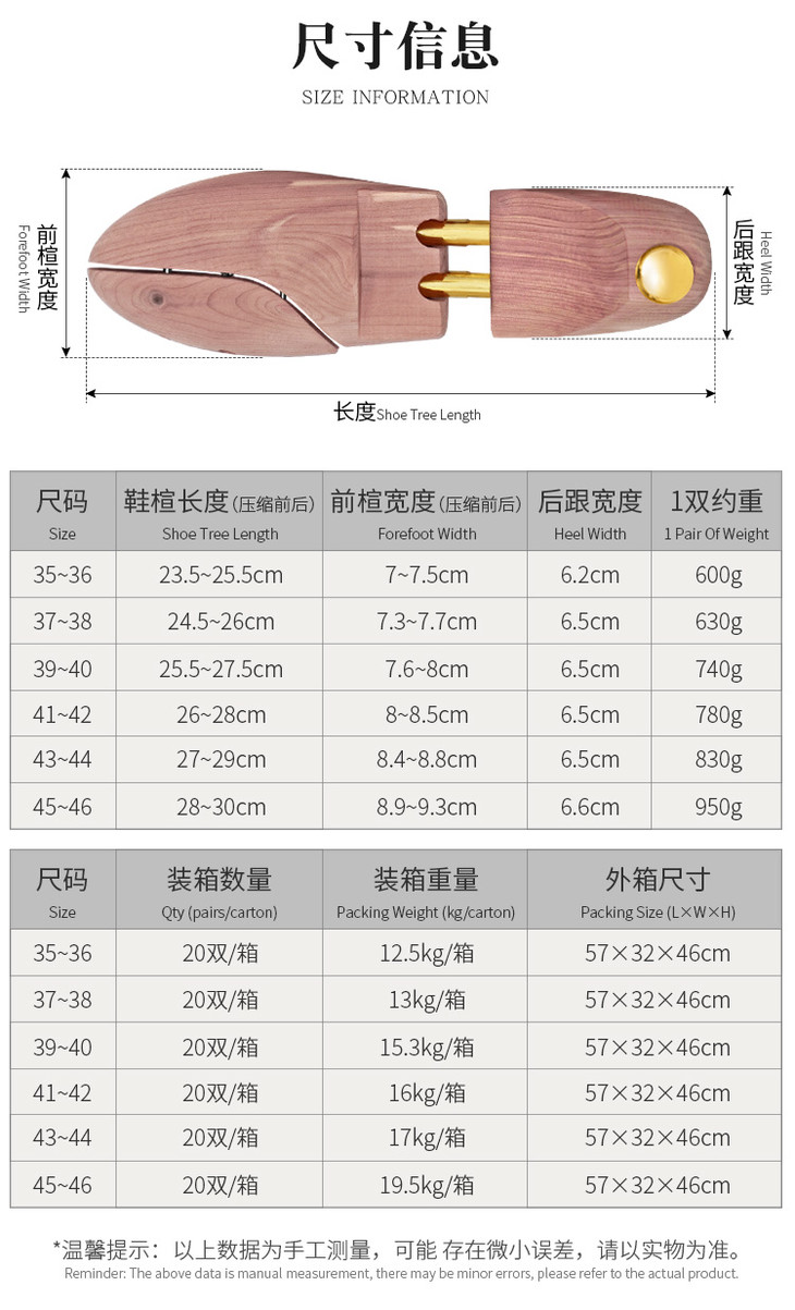 先知木整楦雪松木 鞋撑 扩鞋器实木扩鞋器木整鞋楦实木鞋撑鞋子扩大