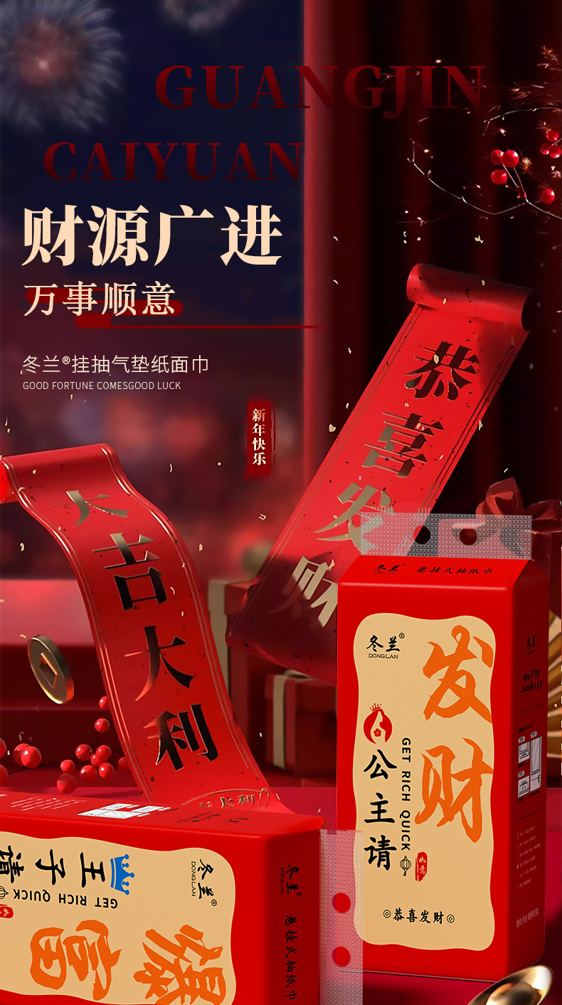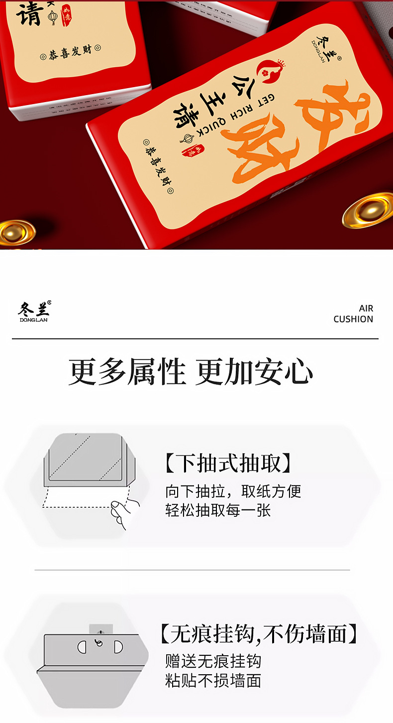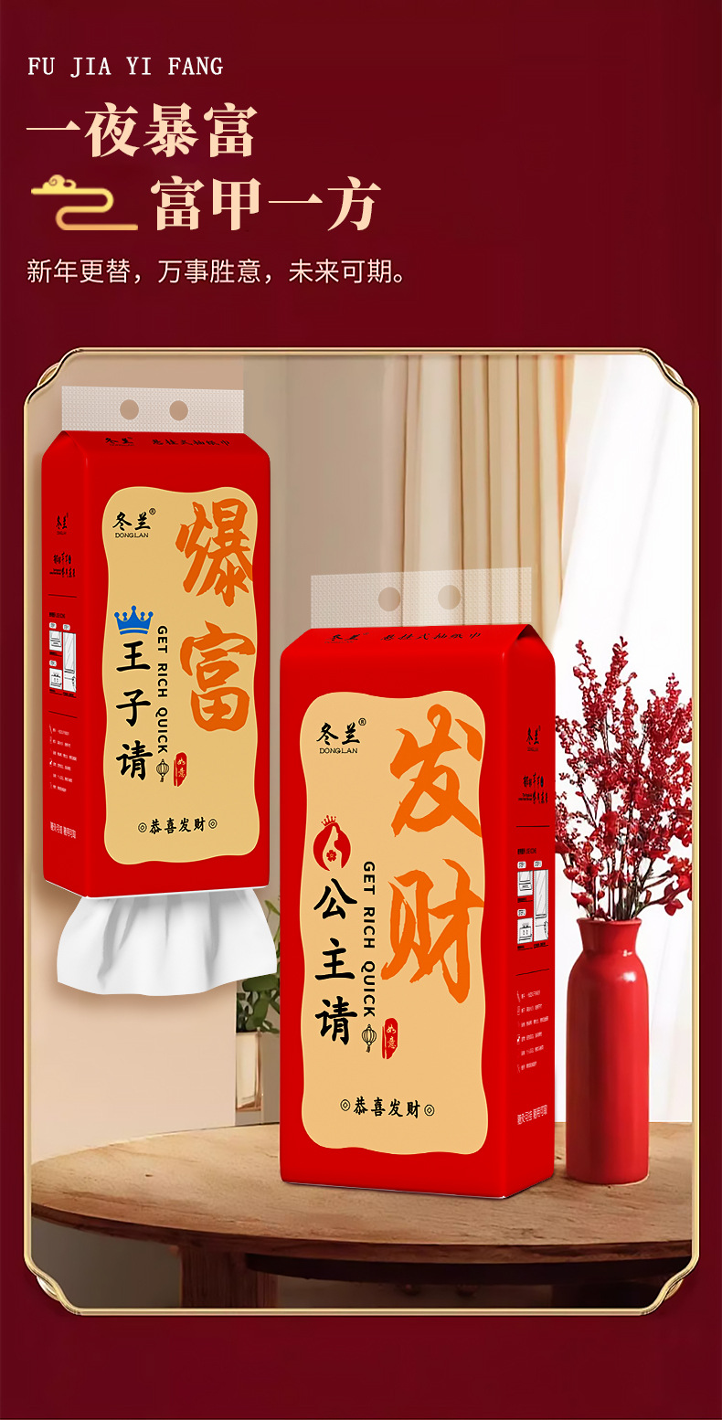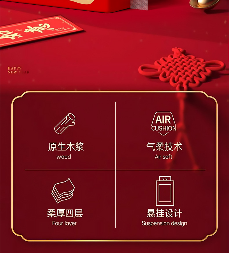 新年暴富悬挂式抽纸整箱批发家用卫生纸实惠装纸巾面巾纸餐巾纸
