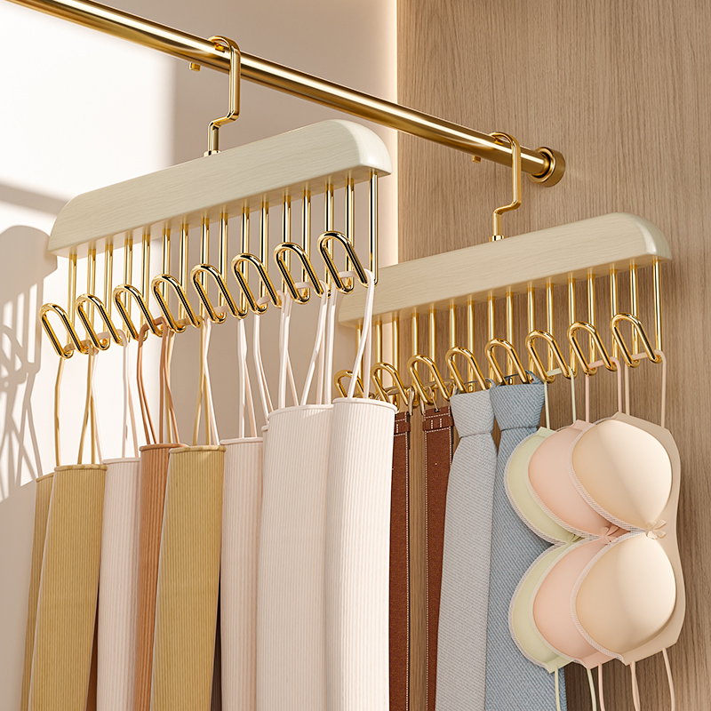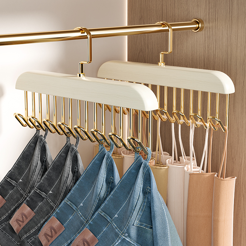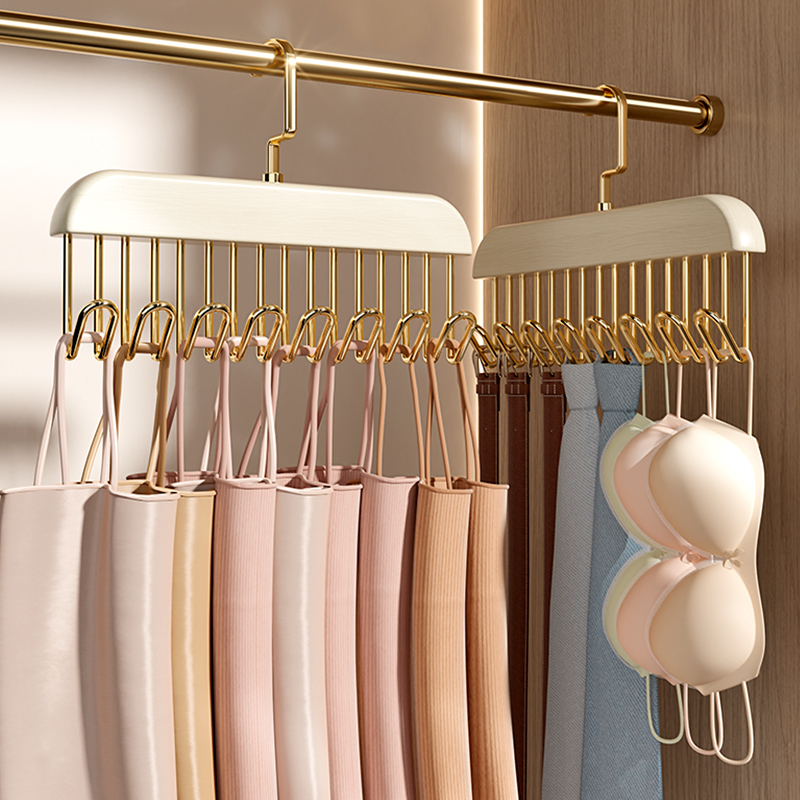 【9.9抢❗️多功能实木挂钩衣架】专业收纳师推荐,一个顶8个,更省衣柜空间,360度可旋转挂钩,随意调整,想怎么摆就怎么摆,家用胸罩内裤丝袜整理收纳盒晾晒L