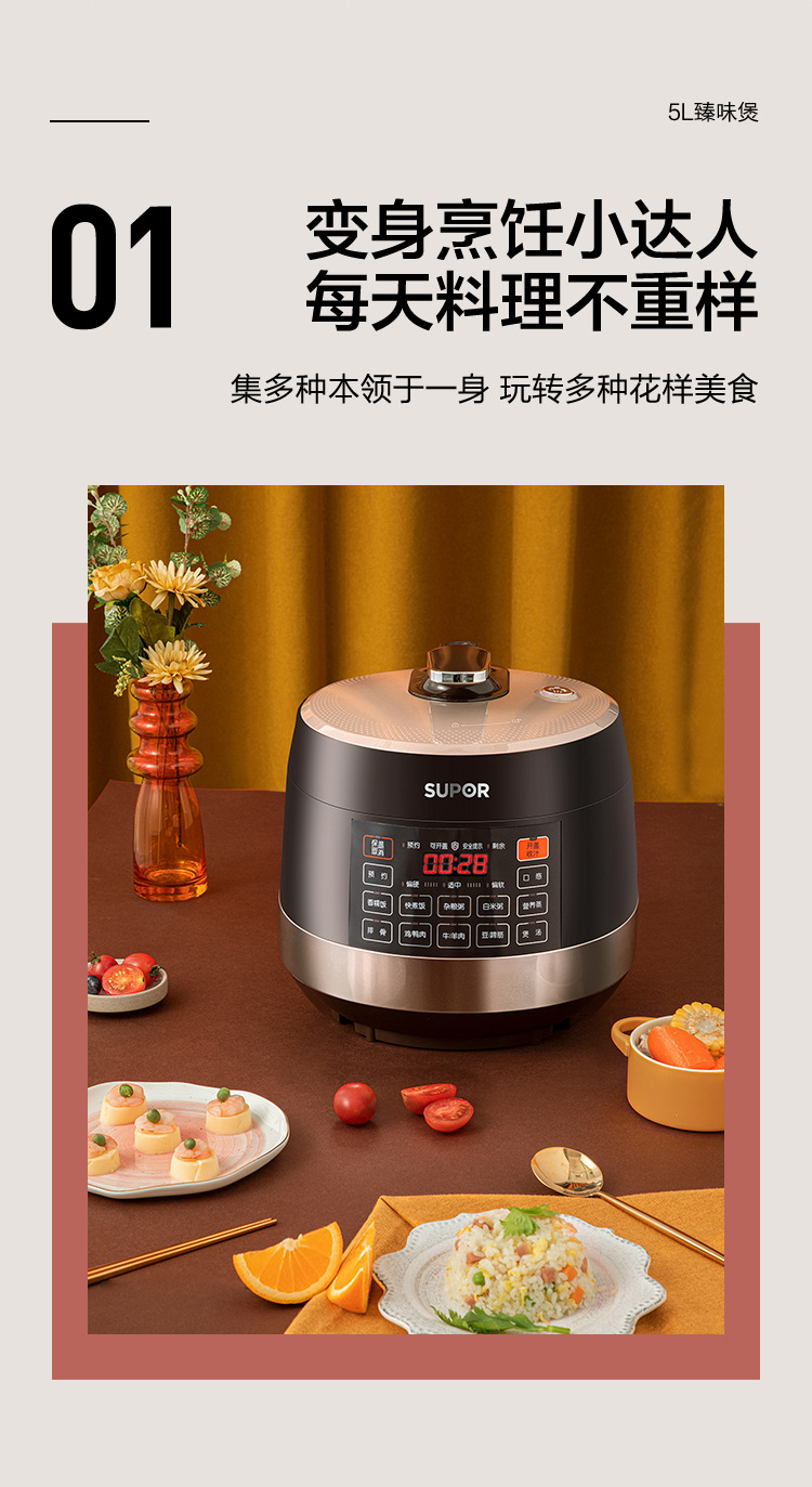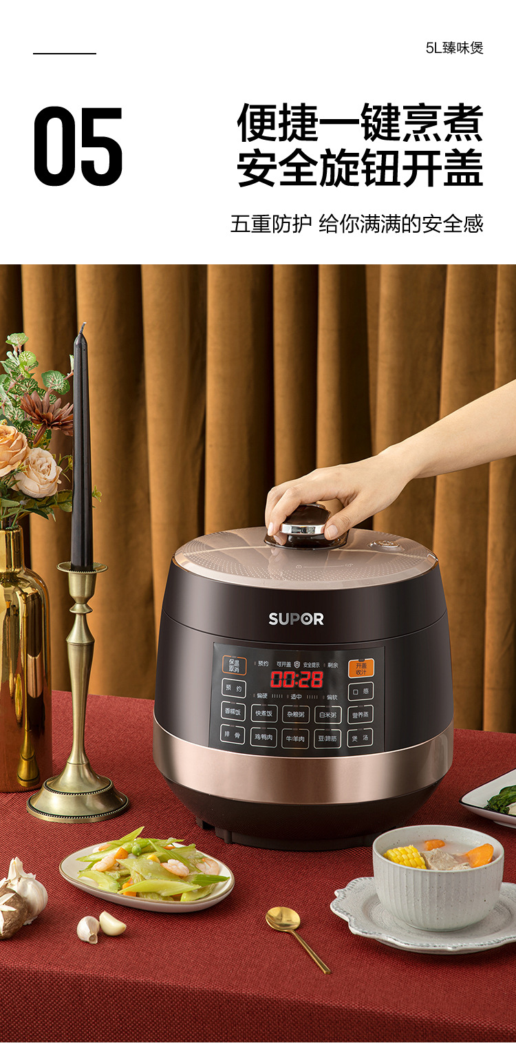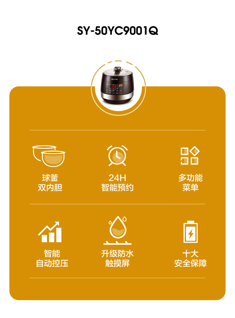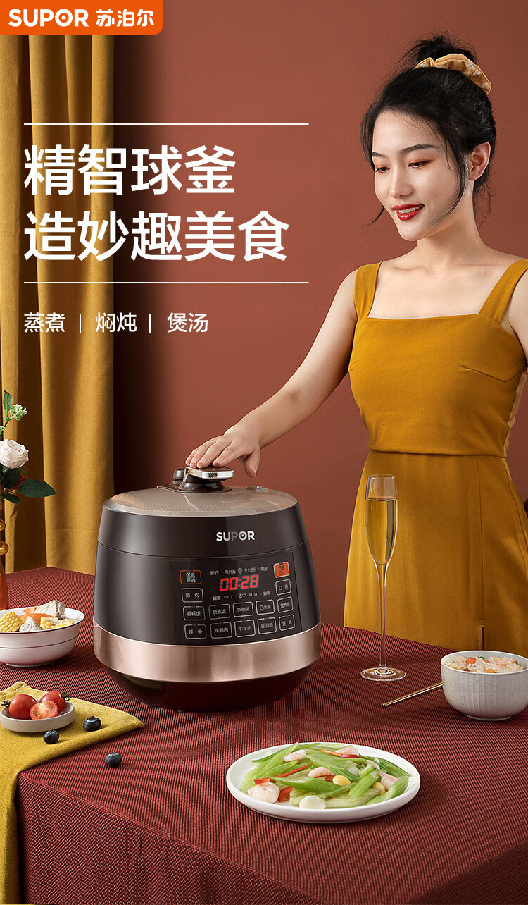 SUPOR/苏泊尔 电压力锅5L触控保温双球釜内胆电饭煲高压锅 SY-50YC9001Q