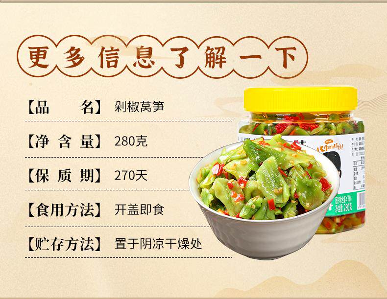 味婆娘剁椒莴笋280g瓶装即食家常下饭菜开味咸菜拌饭拌面拌馒头