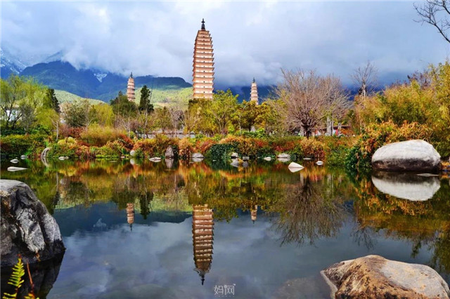 南诏野史与徐霞客的到访似乎将苍山脚下的著名5A级历史名胜崇圣寺三塔渲染得更有佛国遗风。千百年来,三塔峙立,金碧交辉,阳光静谧间,三塔与苍山倒影,将大理的前半生用一种近乎诗意的方式表达了出来,散不去的相思,峰回路转,你还是洱海畔美的佳人。