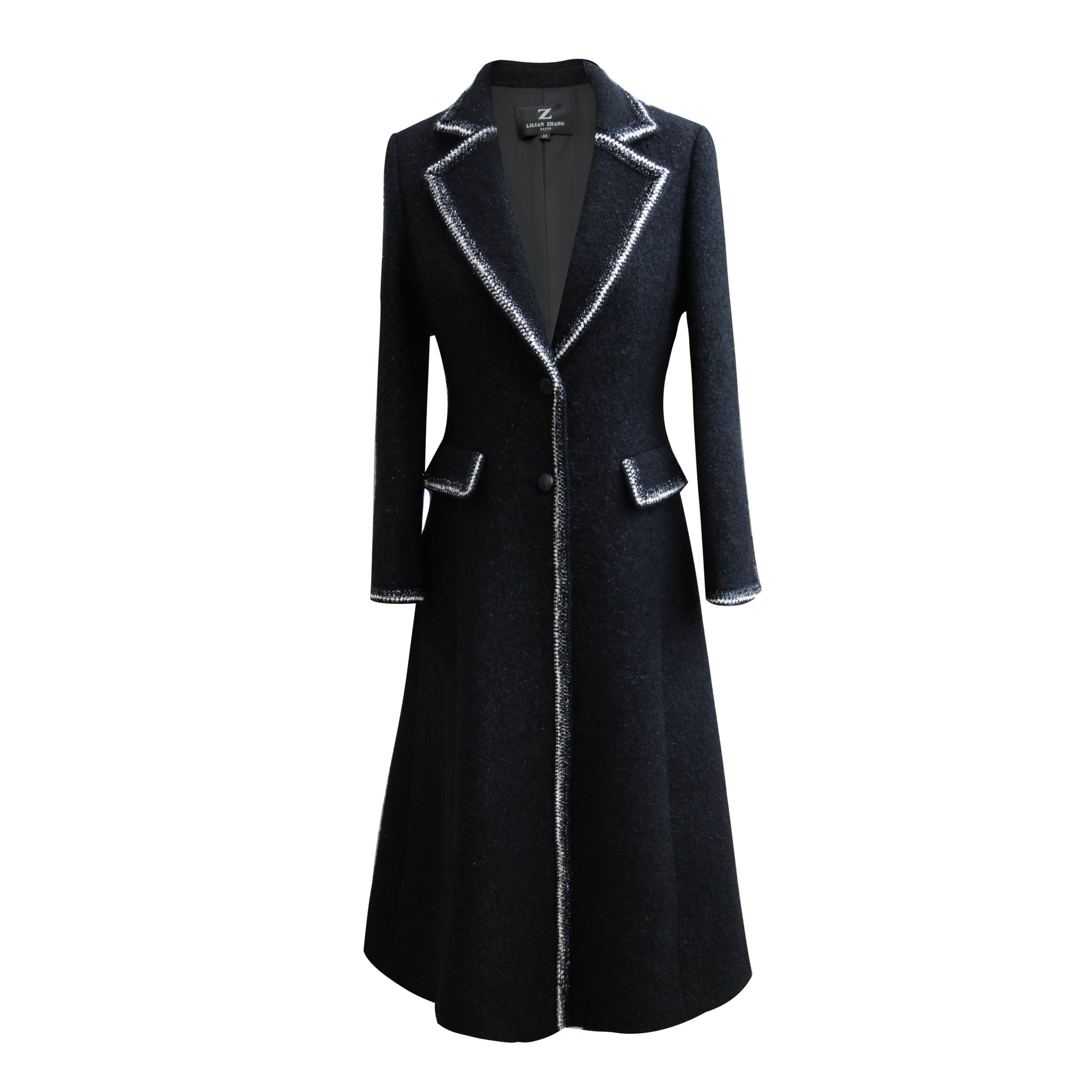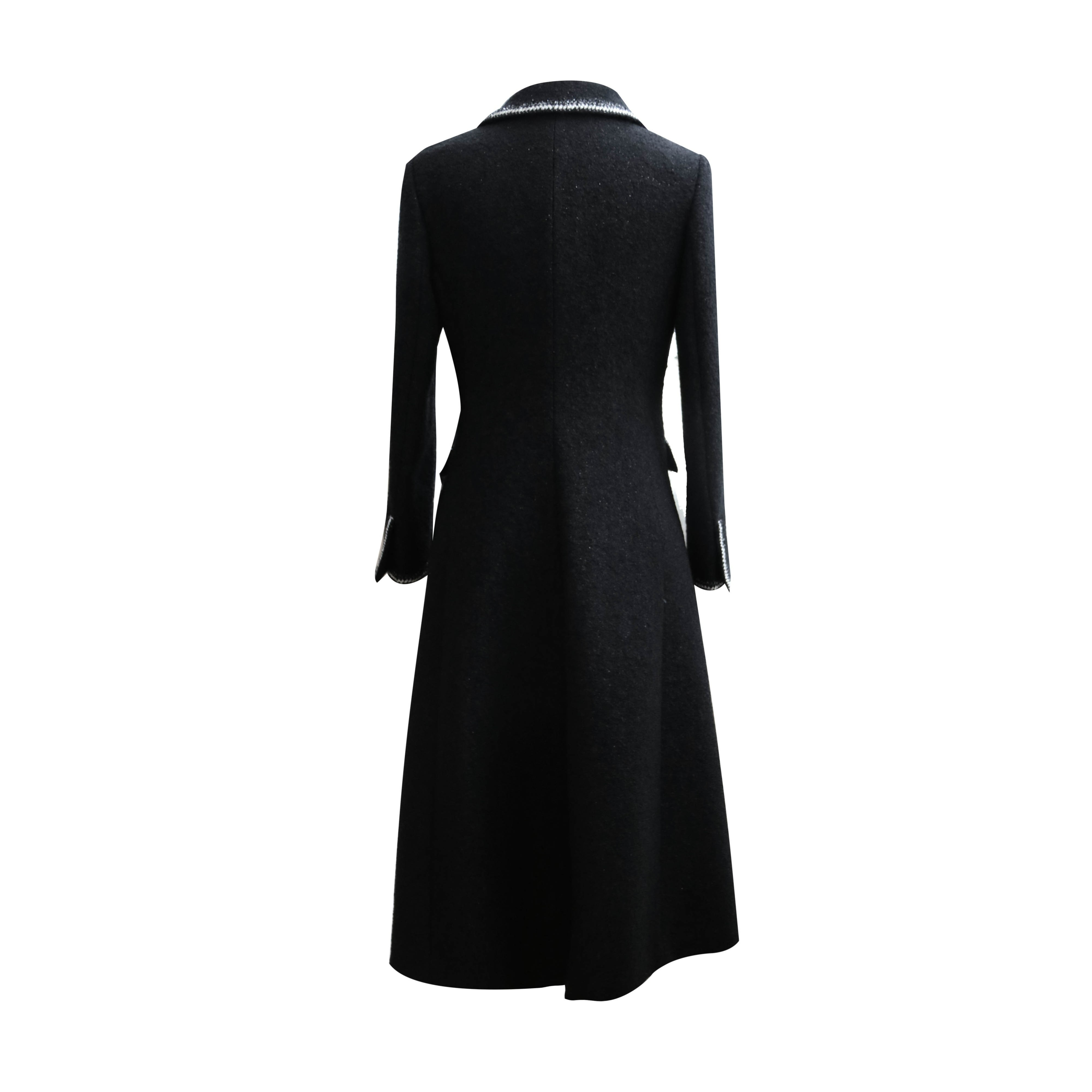 镶边星闪 - 复古A摆长款大衣 - 奢华气质翻领中长款外套 2106009