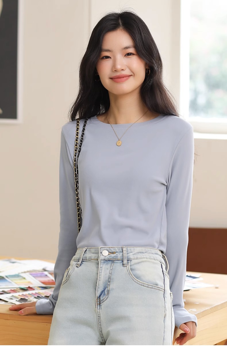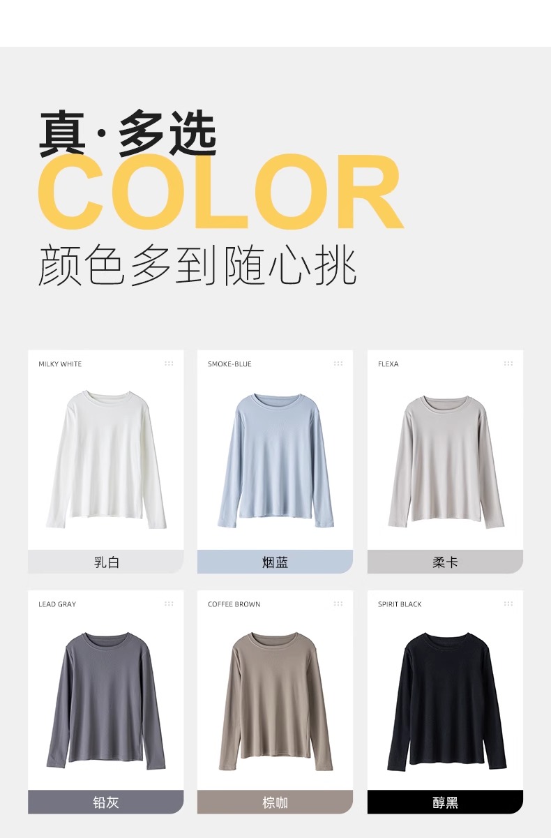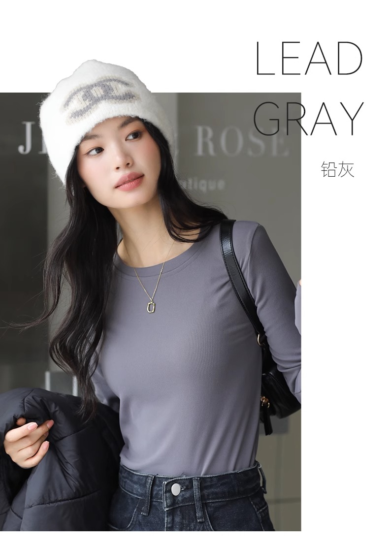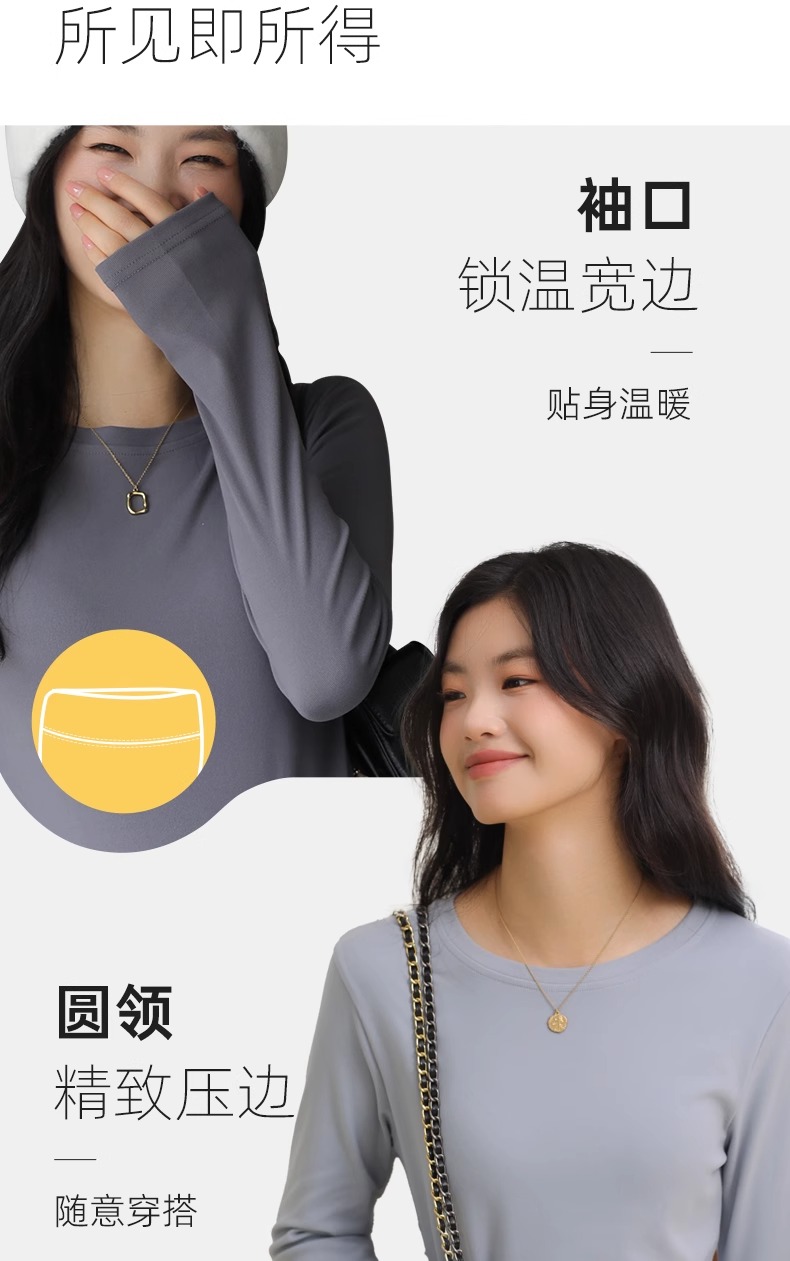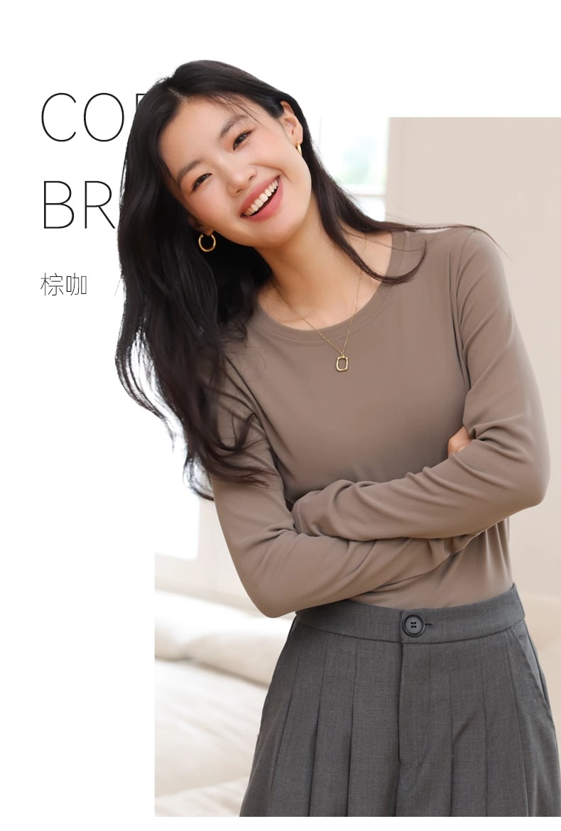 【2024秋冬】膨体绒圆领打底衫 修身亲肤柔软长袖T恤内搭