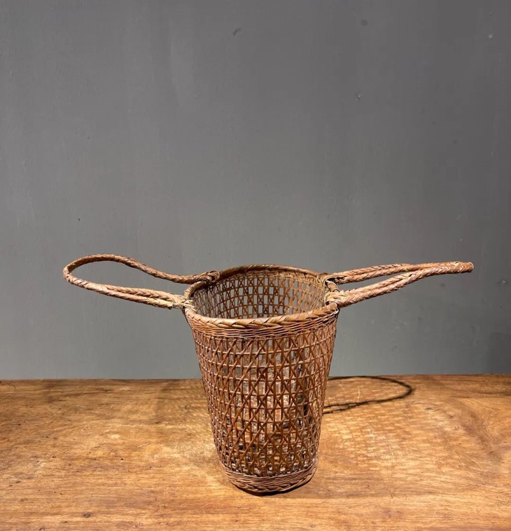 此竹编双提环菜篮,整体设计简约、格调清新脱俗,材质与作工皆气质典雅古朴,尽显古代手工编竹及市井文化的凤采,如今可以表现主人之优雅品味。