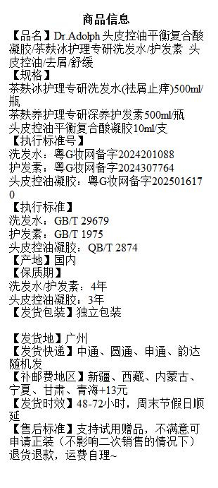 Dr.Adolph 头皮平衡复合酸凝胶/茶麸冰护理洗发水/护发素