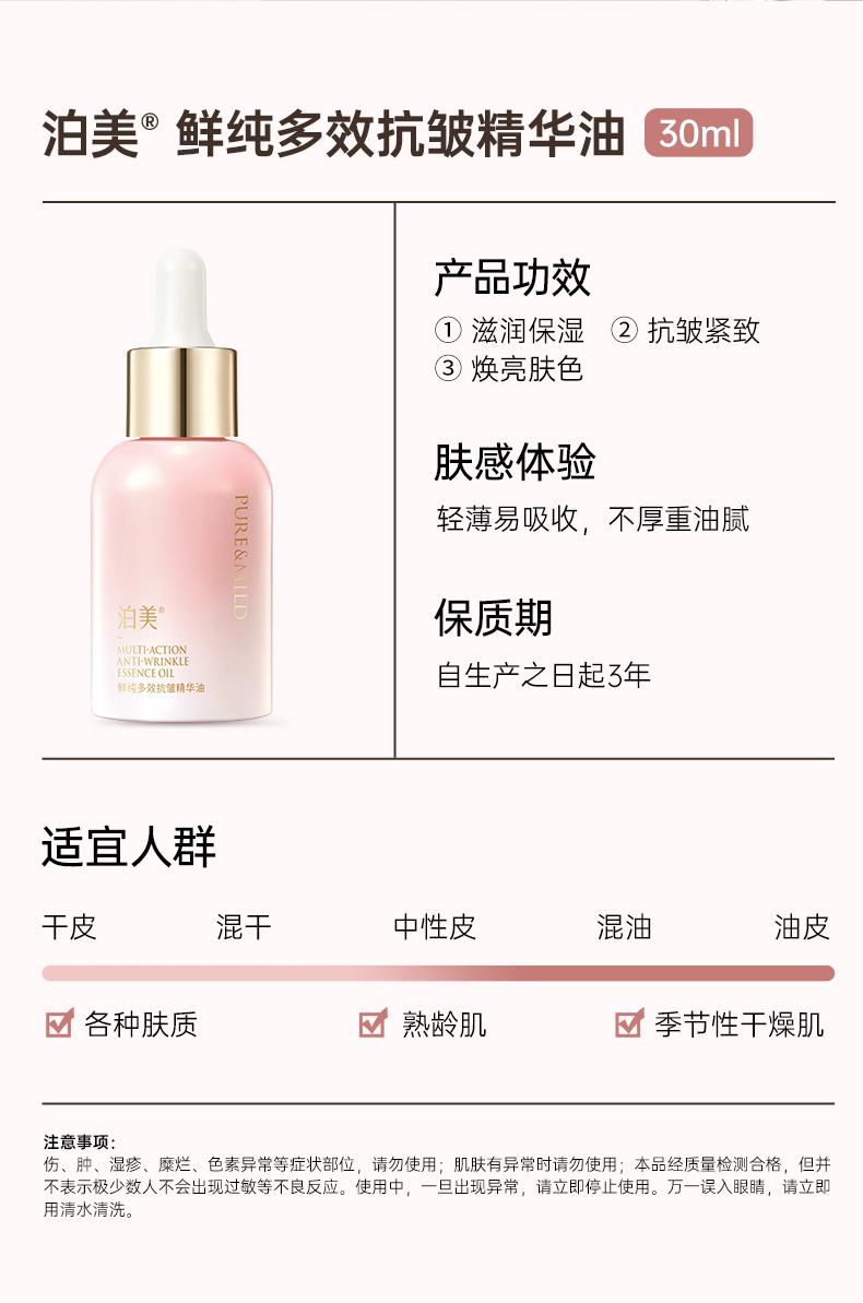 【官方授权】泊美鲜纯多效抗皱精华油30ml