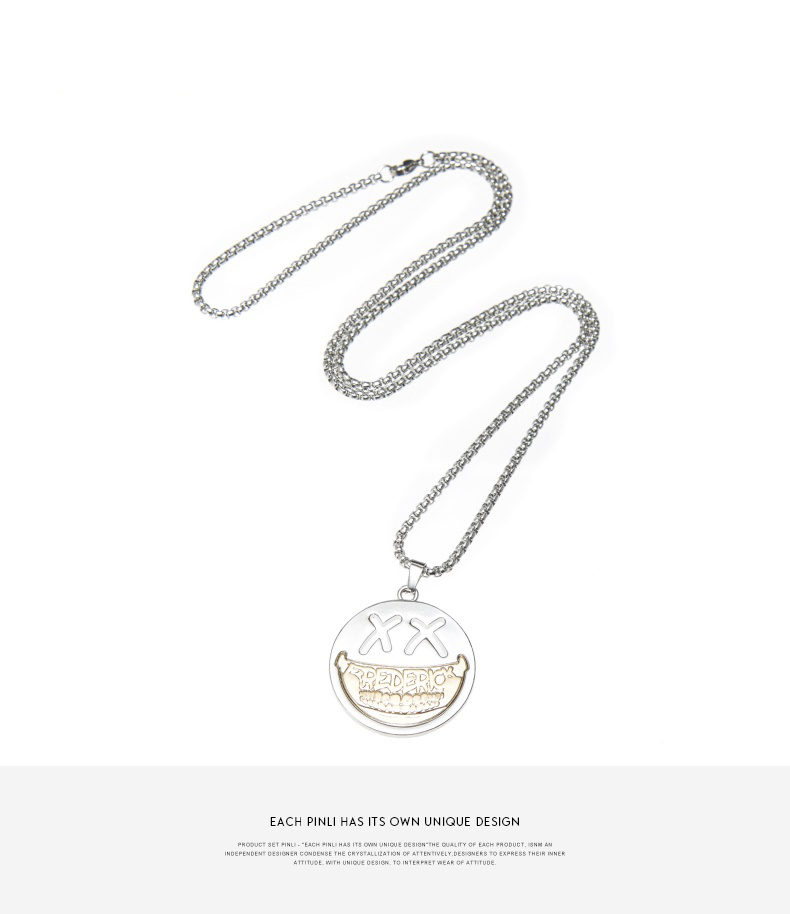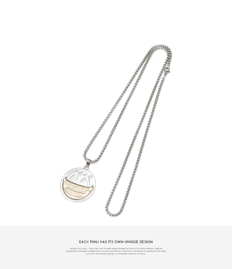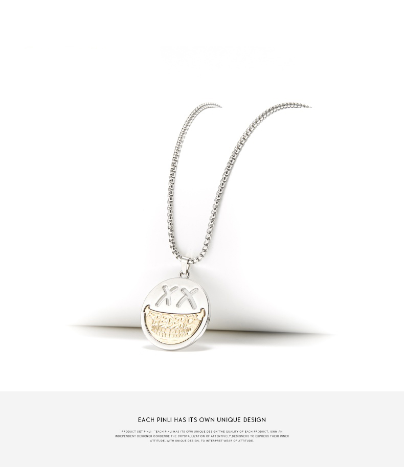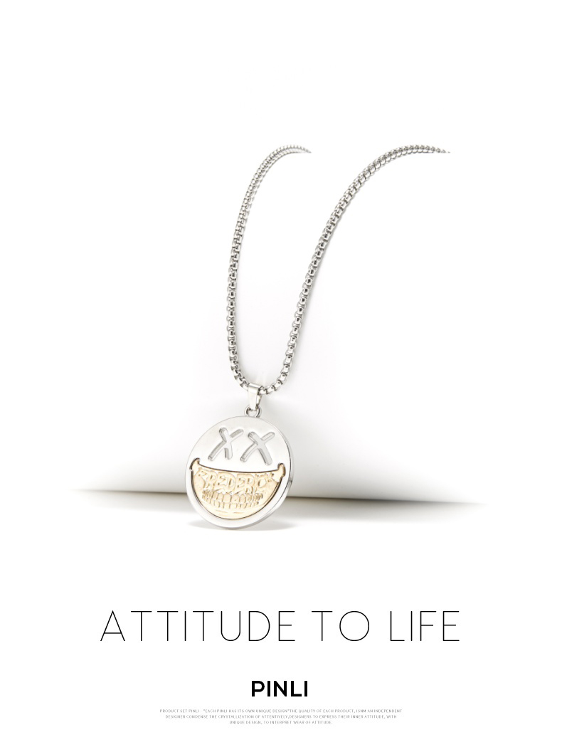 PINLI品立夏季男士配饰潮流笑脸吊坠项链饰品首饰D222128346