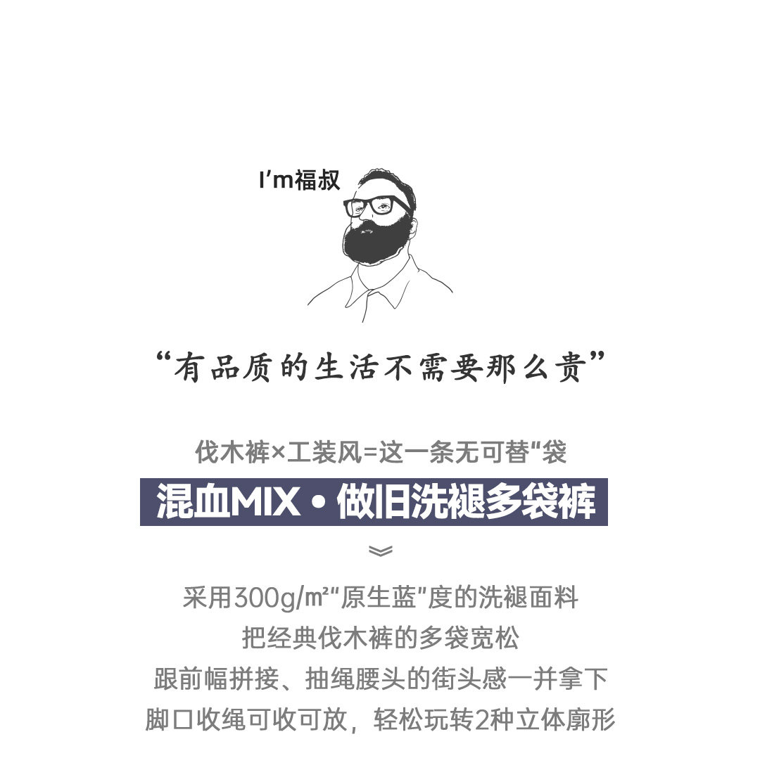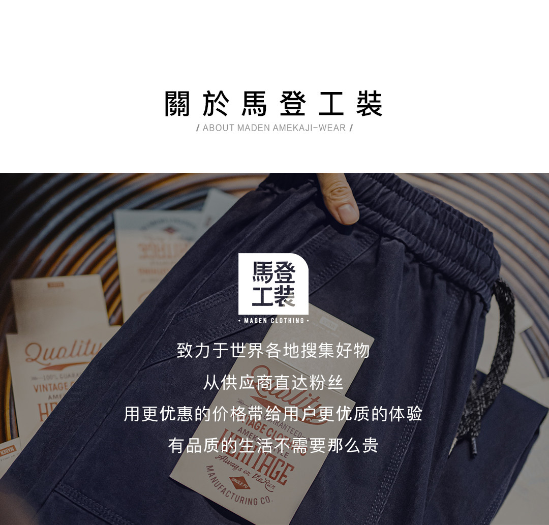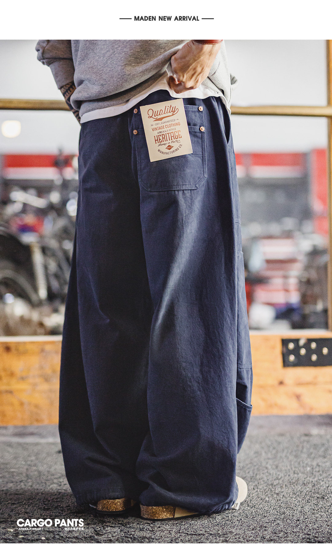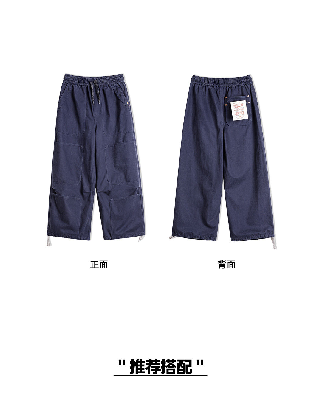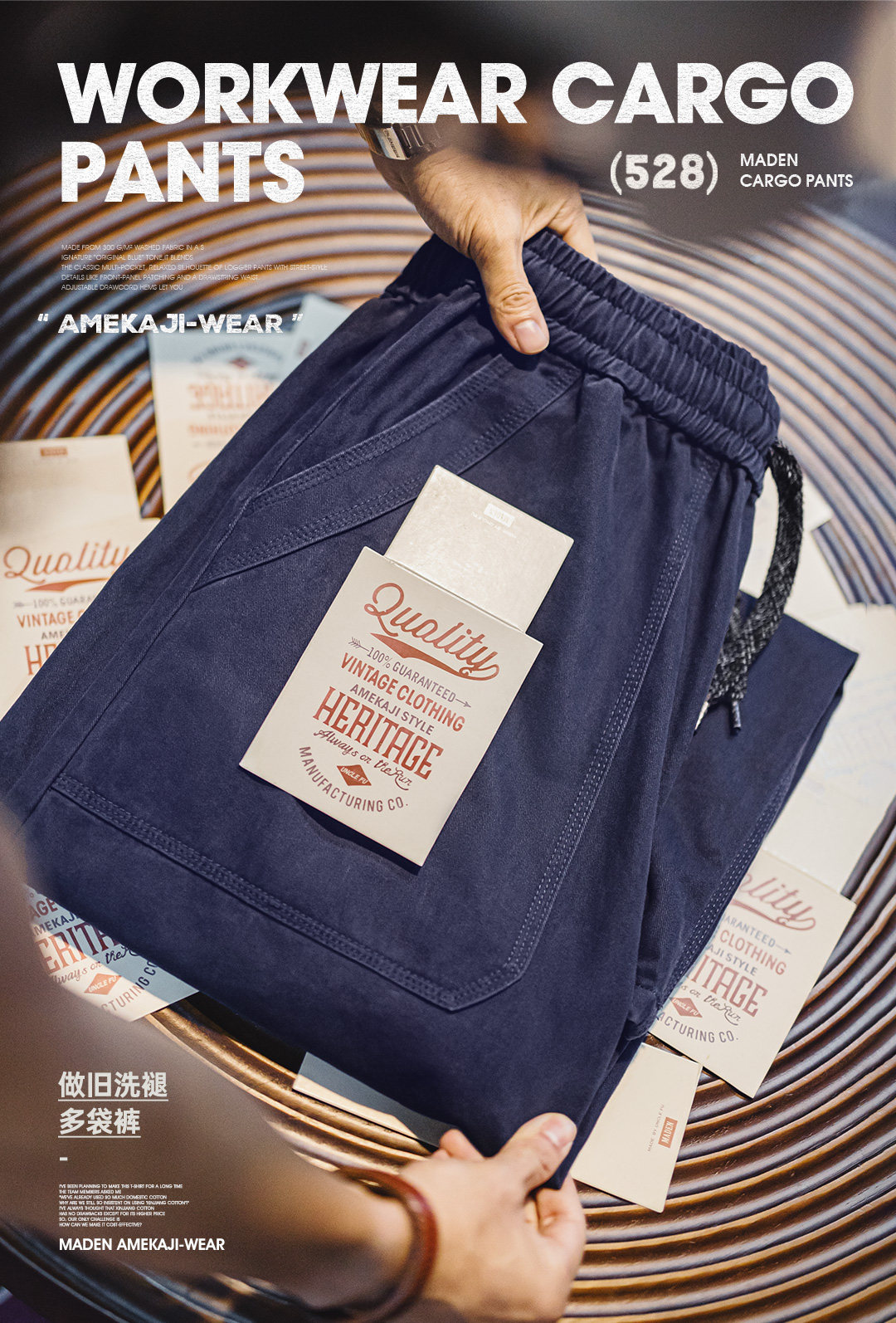 马登工装美式复古水洗多口袋工装伐木裤纯棉阔腿束脚休闲裤子男春