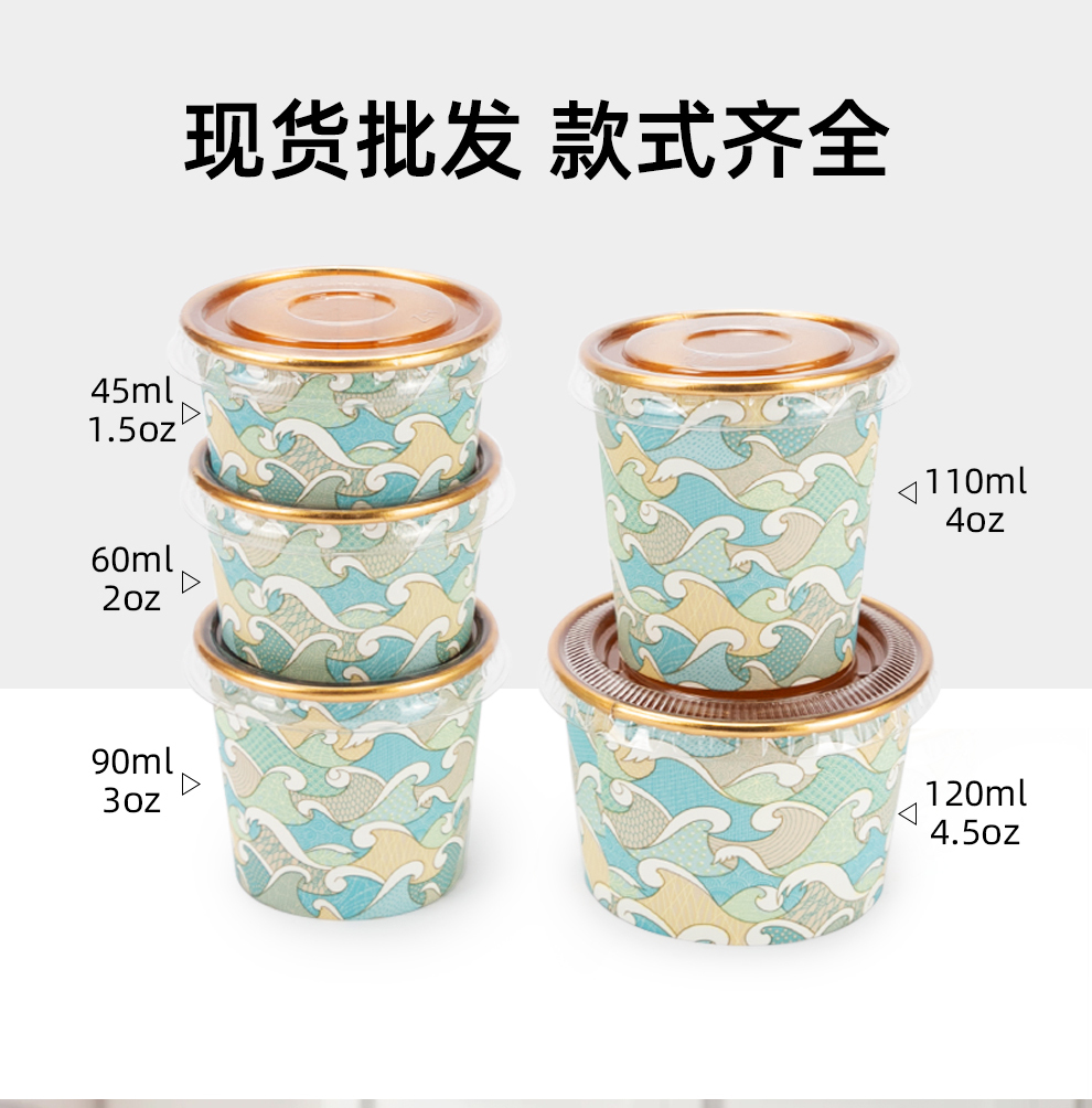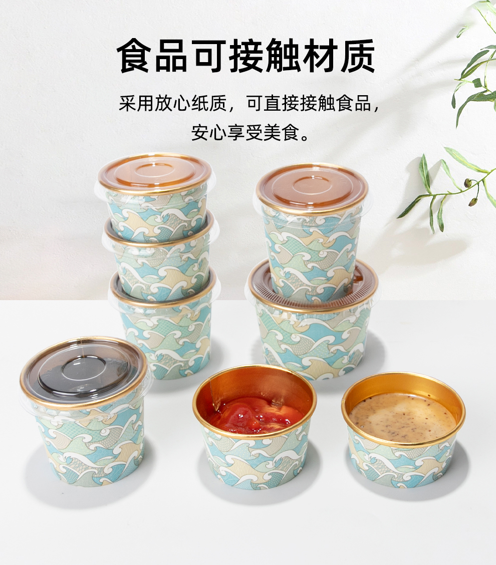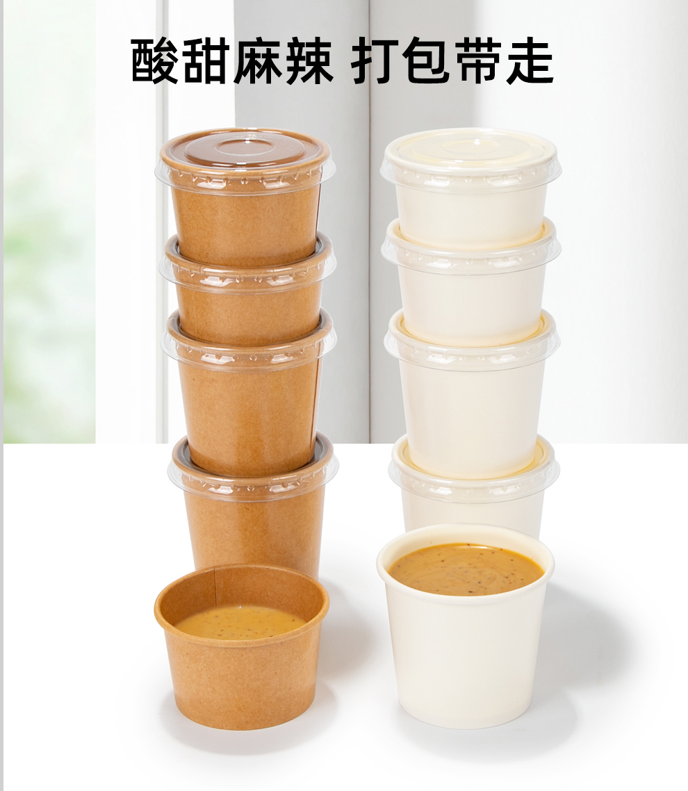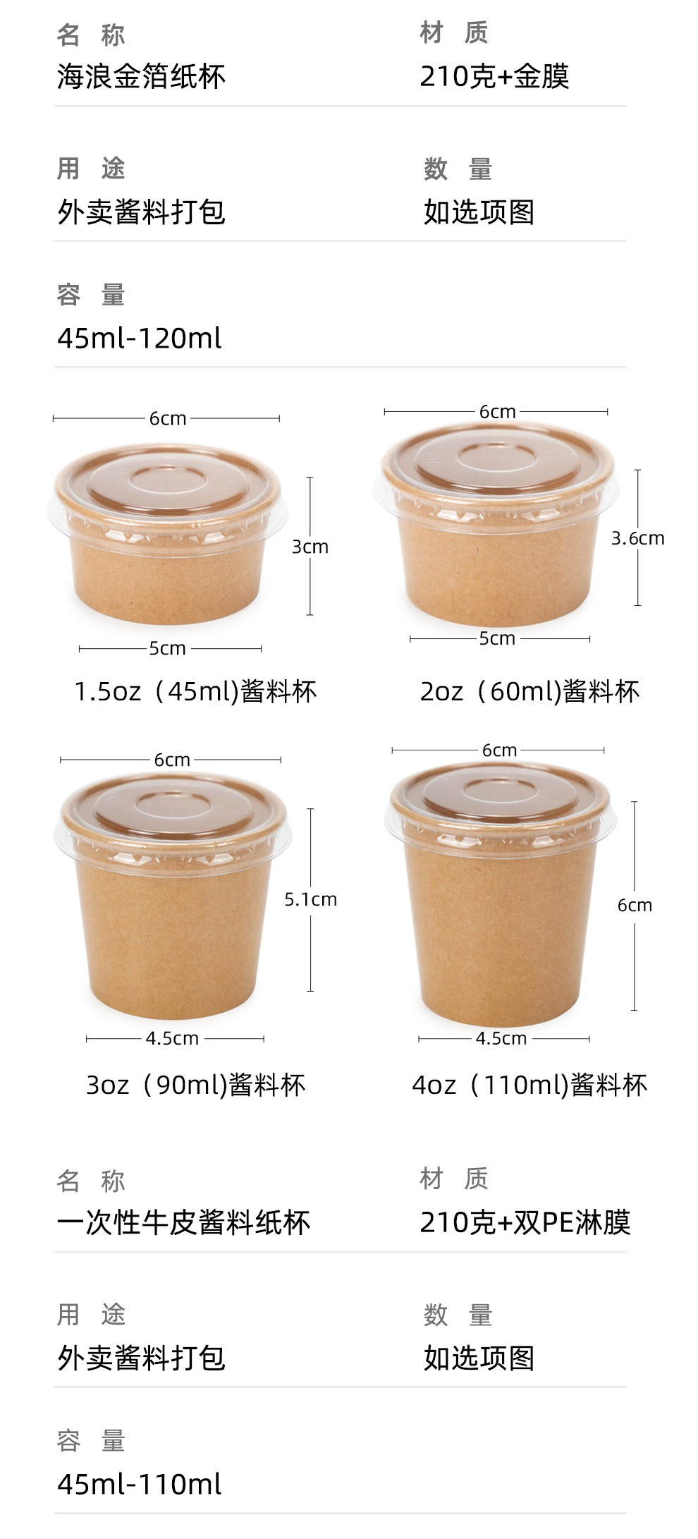 喇叭花一次性圆形纸浆酱料杯调料盒辣椒酱油醋沾汁打包盒试吃带盖