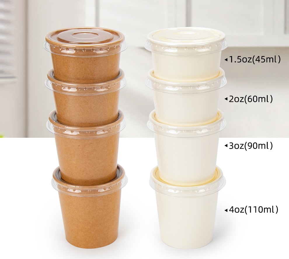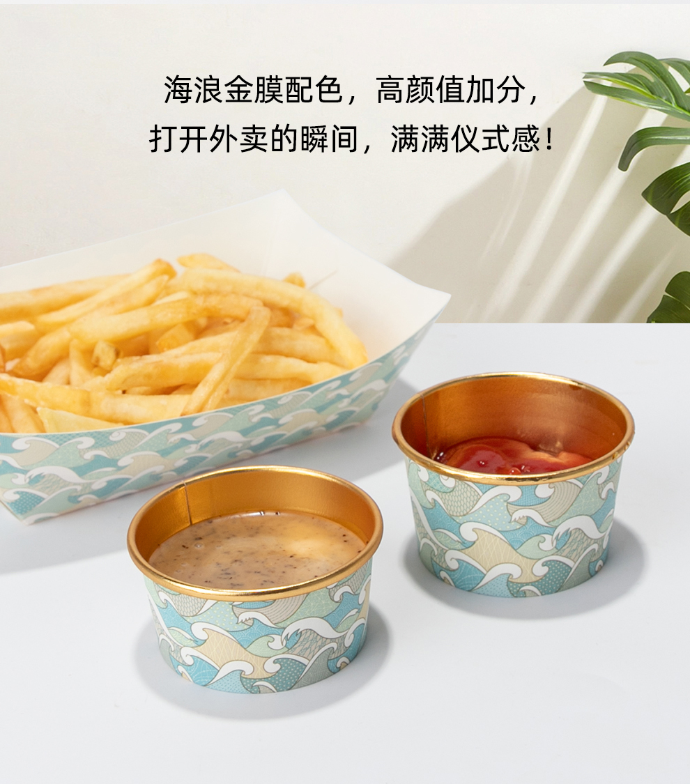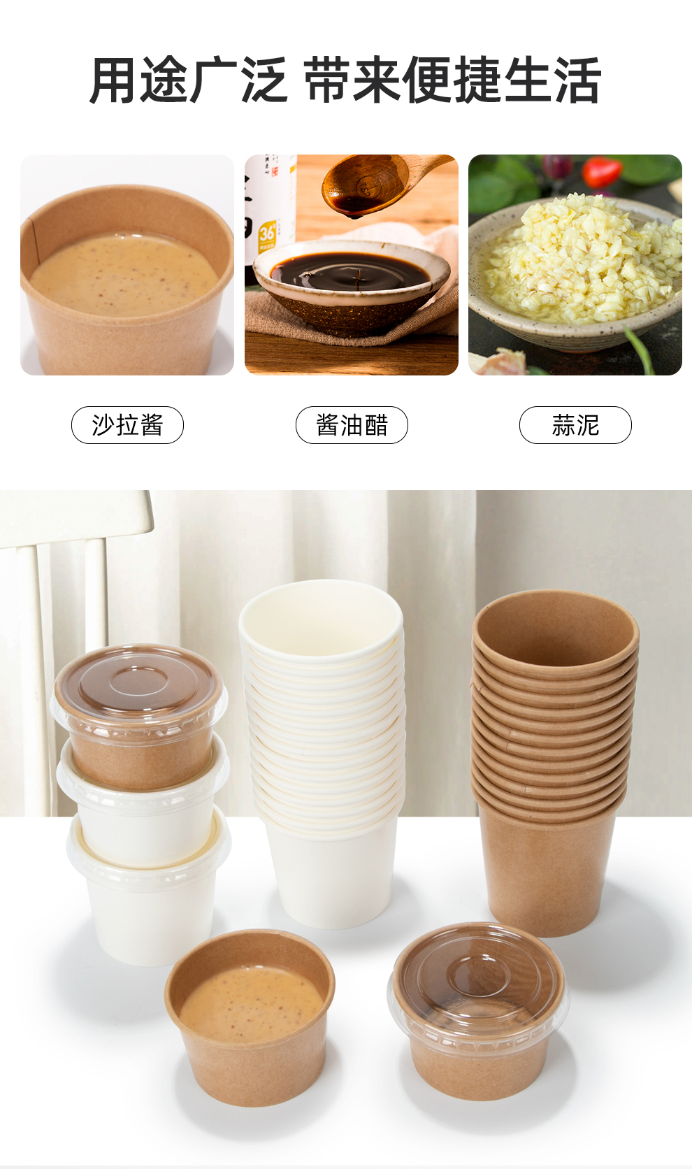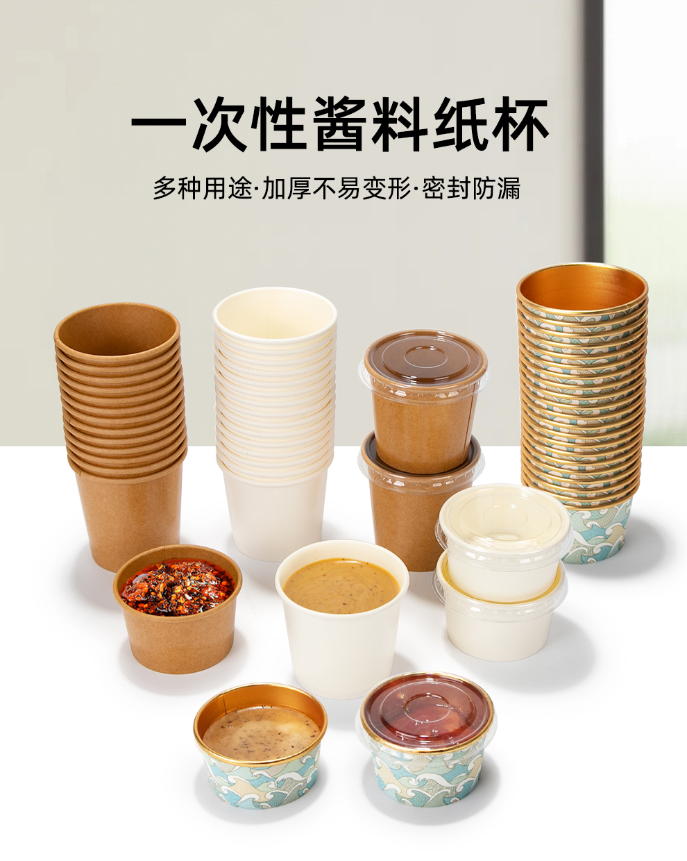 喇叭花一次性圆形纸浆酱料杯调料盒辣椒酱油醋沾汁打包盒试吃带盖