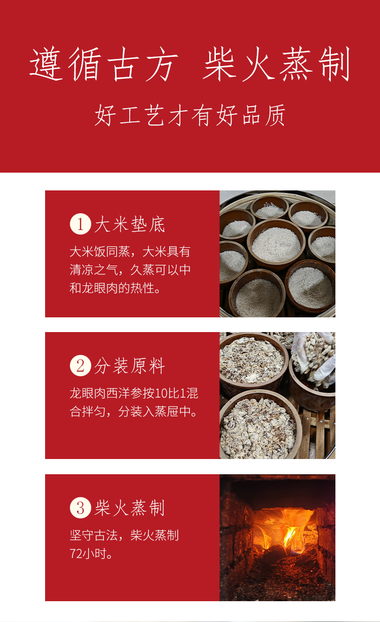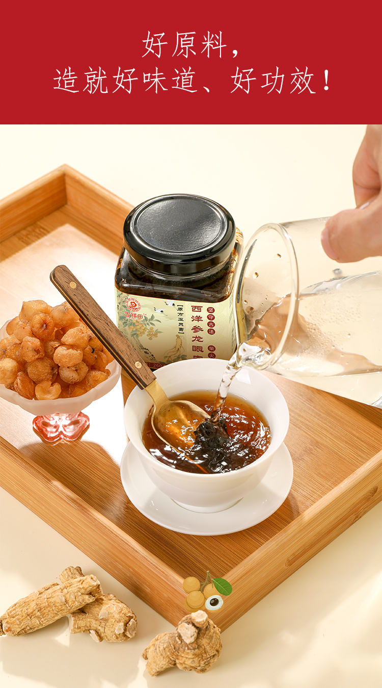 龙眼肉和西洋参原料,都由天悦名坊亲自采购,工厂只负责加工生产。
