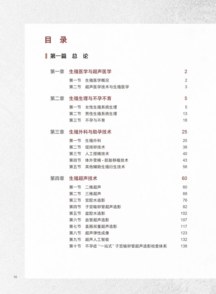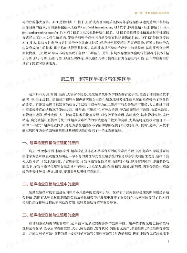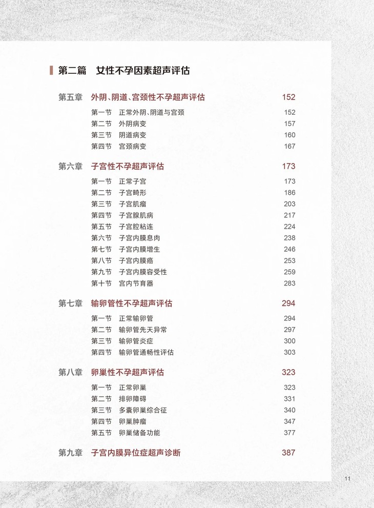 ❷. 内容编排上,从男女生殖生理入手,到各生殖外科与助孕技术的介绍,再到超声技术在男女不孕不育原因的排查、辅助生殖过程的超声监测、助孕后妊娠期超声评估以及各项超声介入技术的应用,由基础到纵深,由临床到超声,周到全面,逻辑缜密。