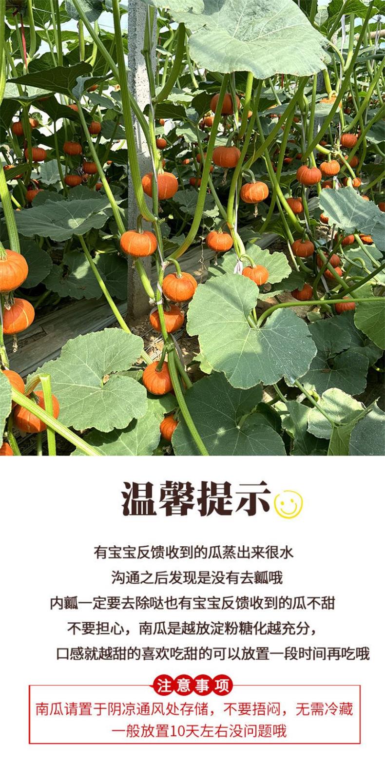 老熟粉面,粉糯香甜,蒸的时候去囊,喜欢吃粉糯甜的可以放置在通风处,南瓜适合存放,10天没问题,南瓜是越放越甜
