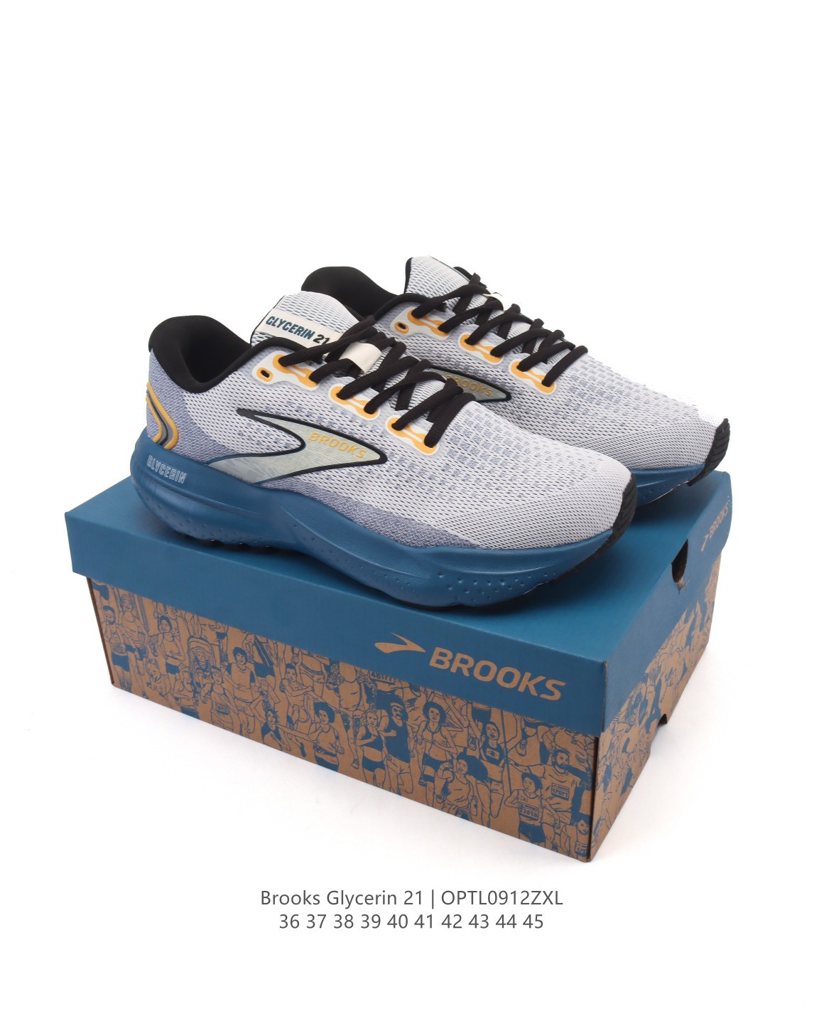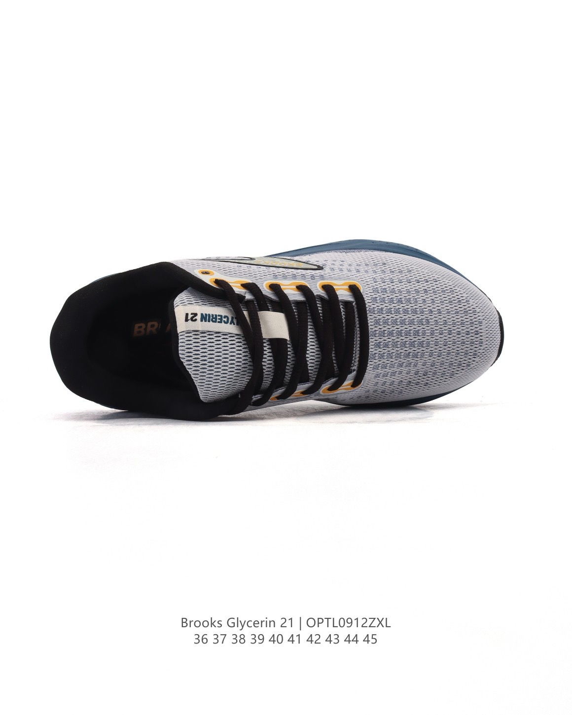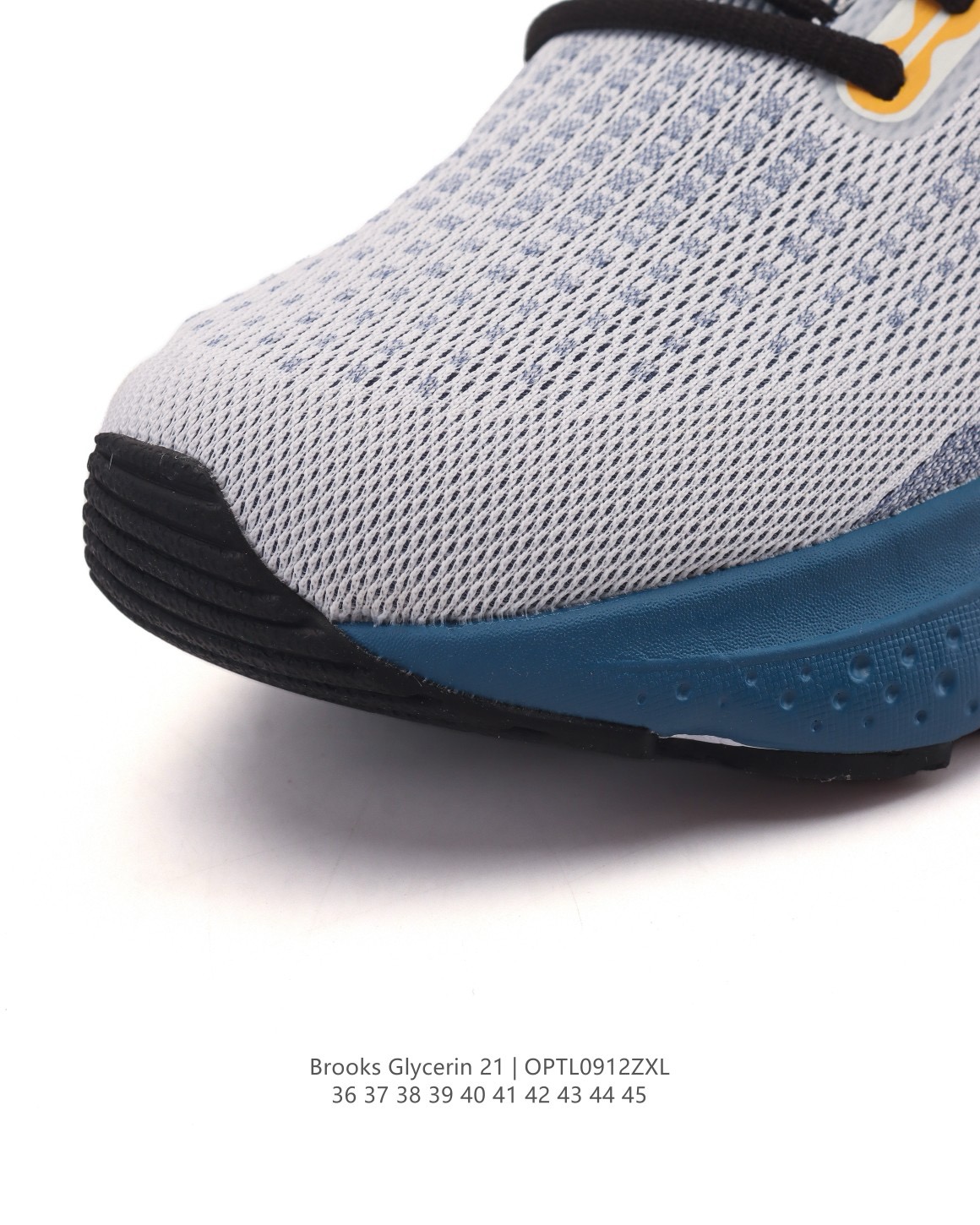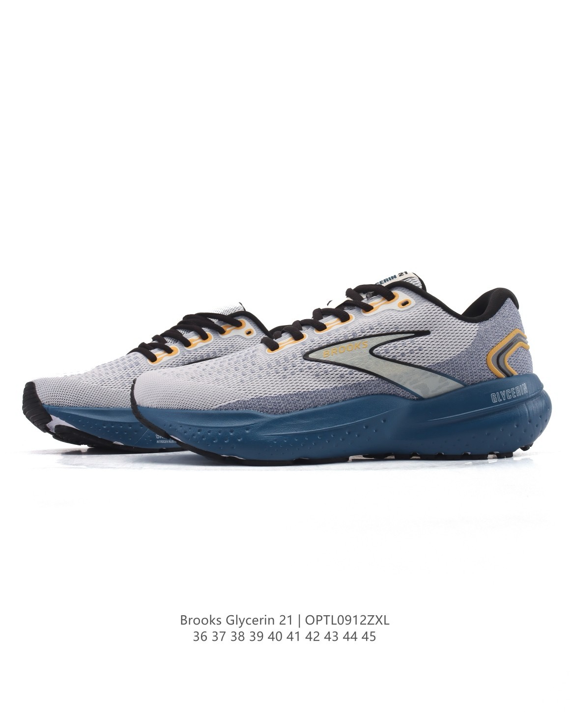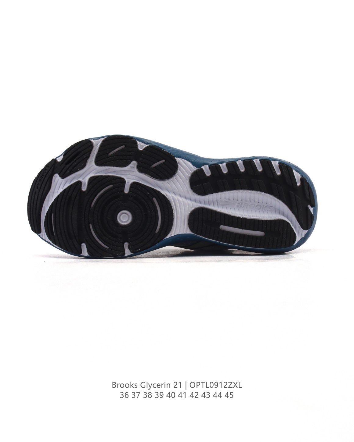BROOKS 布鲁克斯 男女子专业缓震跑步鞋Glycerin甘油21运动厚底增高老爹鞋。特别适合大体重和低足弓跑者。相比前一代,21GT的中底略显柔软,跑感稳定,但缺乏高性能中底的活力和弹性,适合后掌跑法。足弓支撑良好,跑步过程中没有明显的不适感,整体表现传统踏实,适合稳定吸收冲击力。